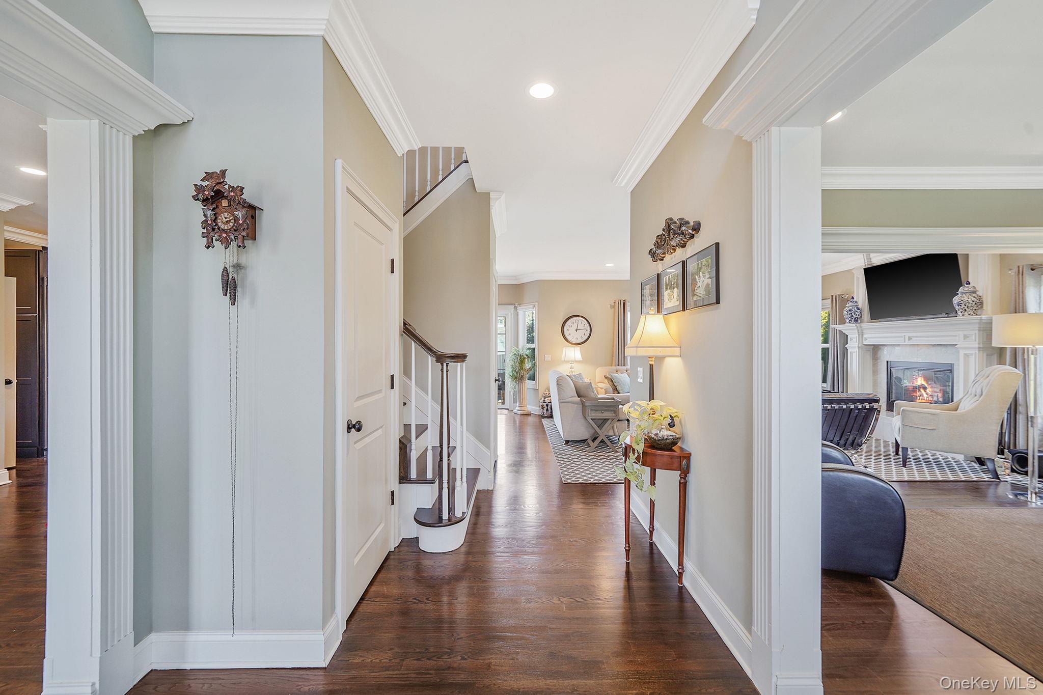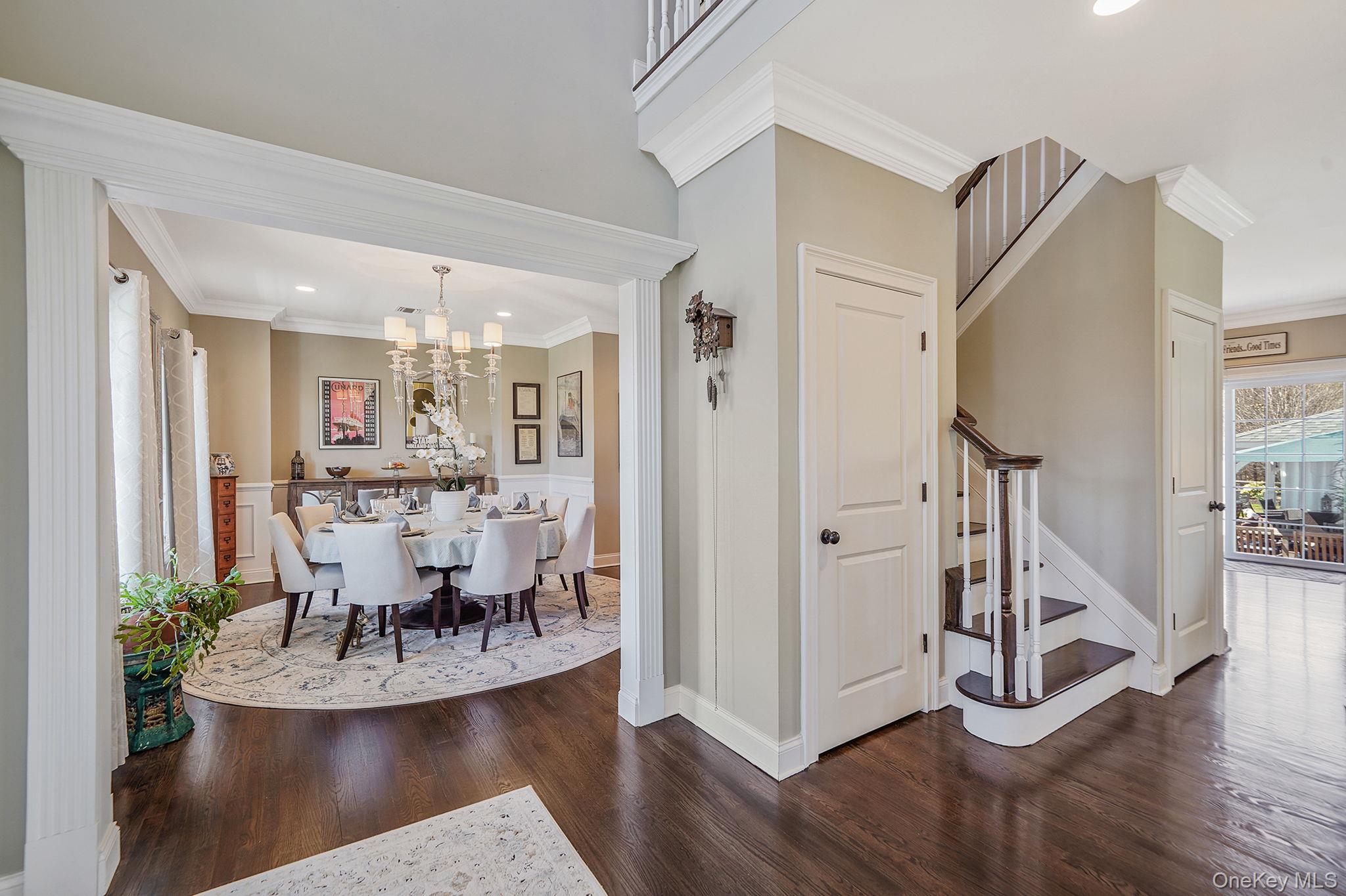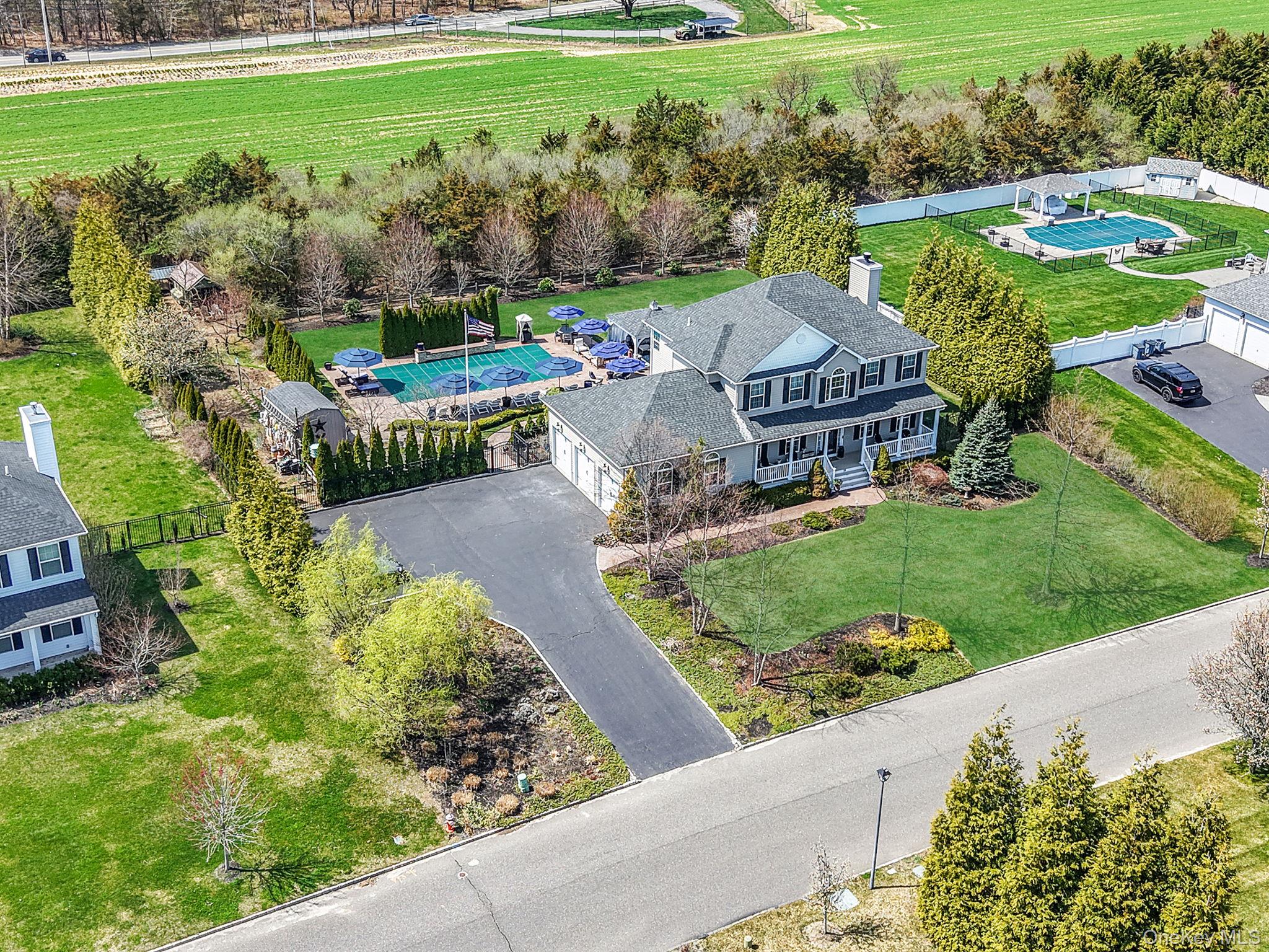 Location! Location! Welcome to this Stunning picture perfect Sun-Filled 4 Bedroom, 2.5 Bath Colonial nestled in the heart of the desirable Birchwood Community in Wading River. This stunning custom-built Jamesport Model offers exceptional craftsmanship, upscale finishes, and a spacious open floor plan designed for both luxurious everyday living and effortless entertaining. From the moment you arrive, you are greeted by beautifully landscaped grounds, striking curb appeal, and an impressive 3-car garage with lift, accommodating up to 4 cars. Step inside to discover hardwood floors, custom doors and moldings, soaring ceilings, elegant custom chandeliers, and hi-hat lighting throughout, all enhancing the home's bright and sophisticated ambiance. The heart of the home is the gourmet eat-in kitchen, thoughtfully designed for the culinary enthusiast and entertainer alike. This spectacular space features quartz countertops, a massive 10-foot center island with built-in microwave, Stainless steel farmhouse sink, pot filler, Viking gas cooking with oven and range, three ovens, two dishwashers, stainless steel appliances, wine cooler, garbage compactor, and a spacious pantry. Sliders from the kitchen lead directly to the backyard, seamlessly blending indoor and outdoor living. The inviting living area showcases a beautiful wood-burning fireplace with a gorgeous cased mantel, creating a warm and elegant focal point within the home's expansive open-concept layout. Generously sized bedrooms provide comfort and flexibility, including a spacious primary suite complete with a walk-in closet. The beautifully updated bathrooms offer modern style and refined finishes throughout. Additional interior highlights include a full unfinished basement offering endless potential, as well as hardwired security features for added peace of mind. Step outside to your own private backyard retreat, where resort-style living awaits. The fully fenced yard is surrounded by mature evergreen privacy trees and features an 18x36 heated in-ground saltwater pool with two waterfalls, a paver patio, pergola, shed, and abundant space for outdoor entertaining or peaceful relaxation, with its very own vegetable garden. Perfectly located, this extraordinary home combines luxury, comfort, and exceptional amenities in one remarkable package. Don't miss this rare opportunity to own a truly one-of-a-kind property in Wading River. This home won't last!