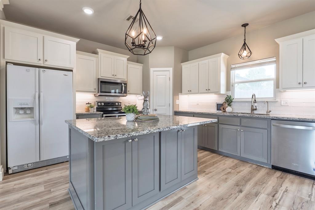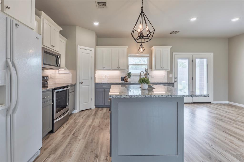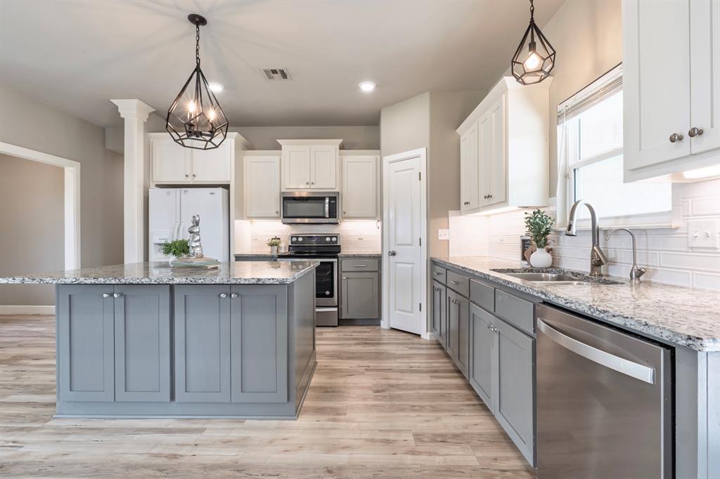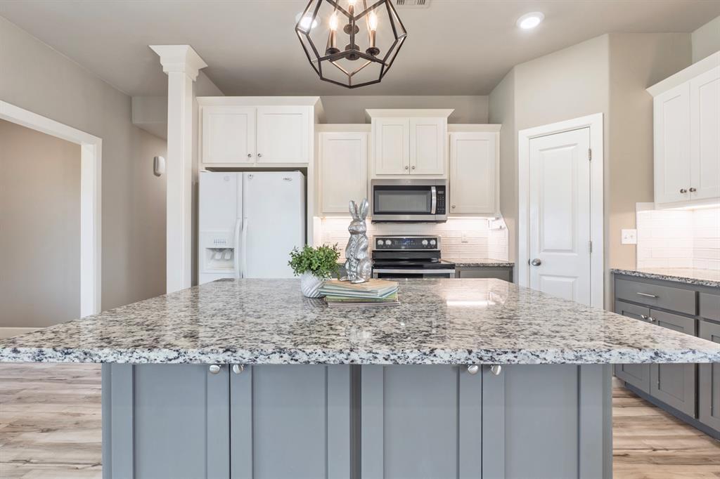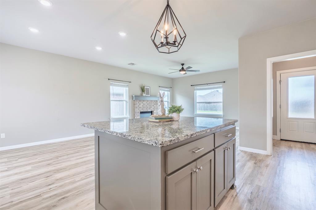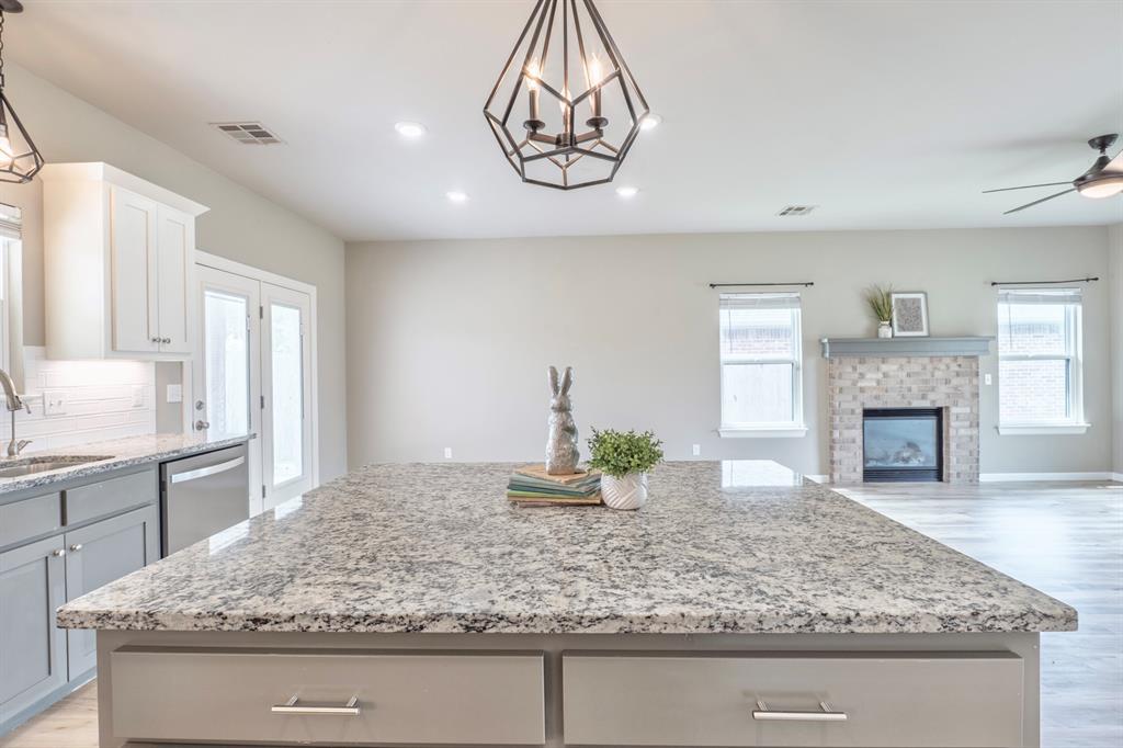 Welcome to The Timbers - where modern style meets everyday comfort. This beautifully designed home features clean architectural lines, soaring ceilings, and an inviting entry that flows seamlessly into the spacious living area, complete with a cozy gas fireplace. The open-concept layout is perfect for both entertaining and daily living, highlighted by a large kitchen island that overlooks the living space. The private primary suite offers a relaxing retreat with a tiled walk-in shower, dual vanities, and a generous walk-in closet. Step outside to enjoy the covered back patio and fully privacy-fenced yard - ideal for gatherings, celebrations, or quiet evenings at home. Blending traditional charm with modern design, this home delivers the best of both worlds in a sought-after Shawnee location. Welcome home.