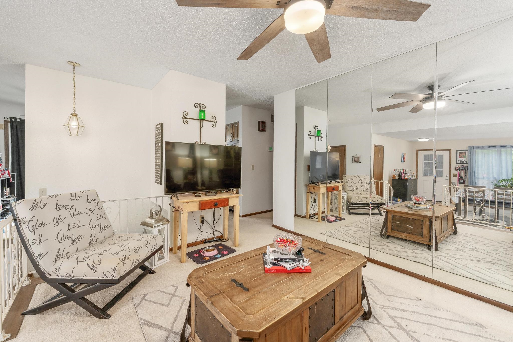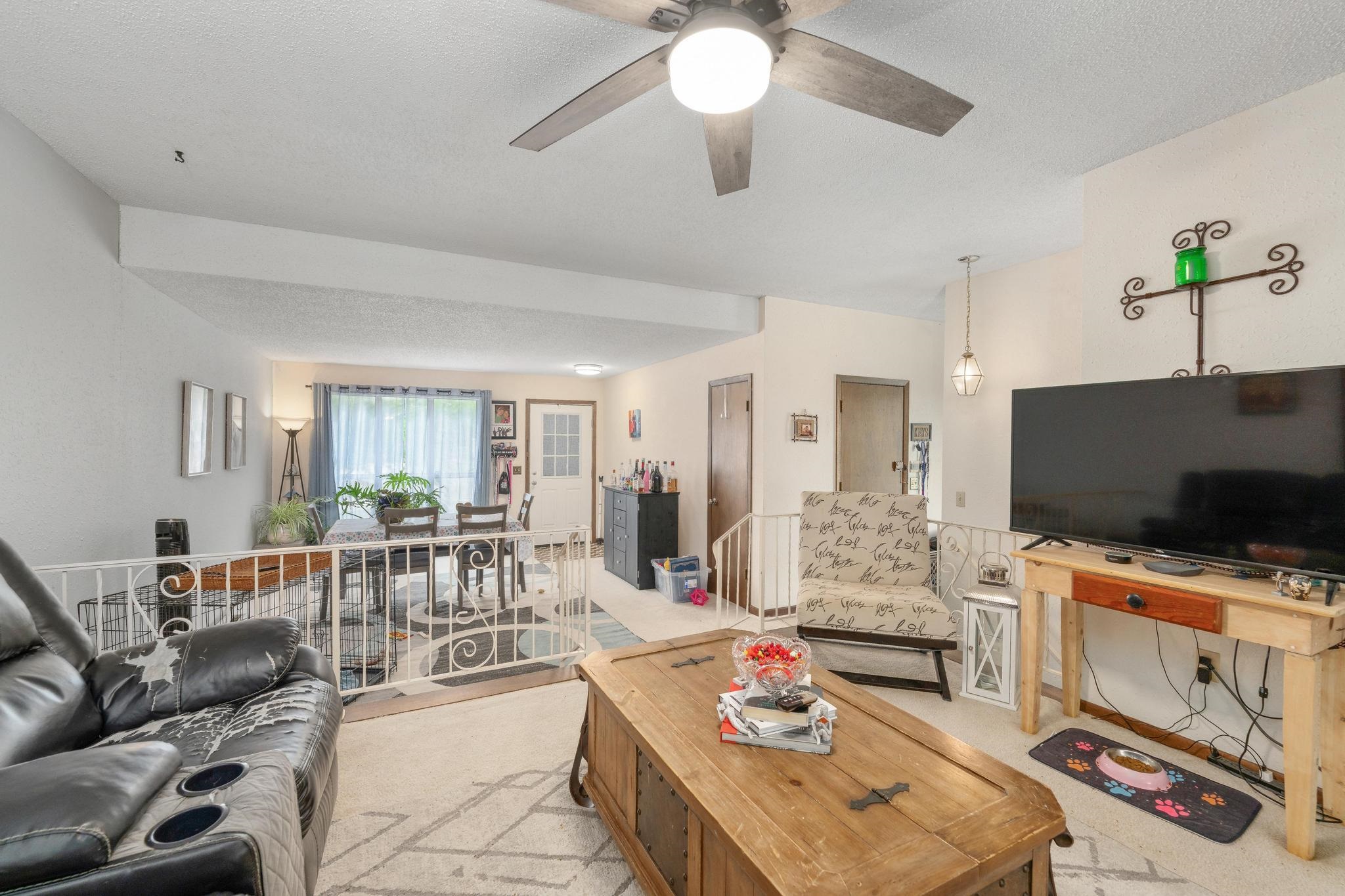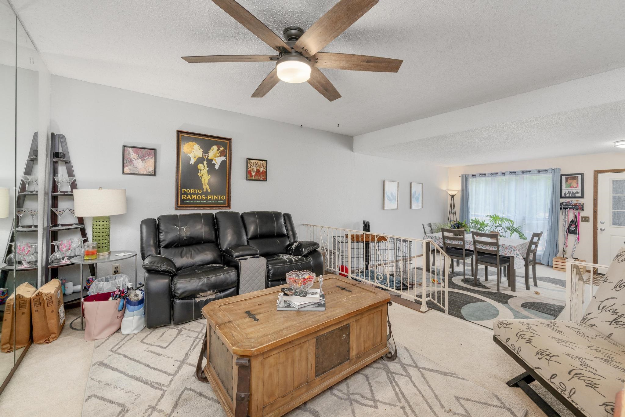 Welcome to this well-maintained 3-bedroom, 2-bathroom twin home ideally located near Webb Road and Harry Street in east Wichita. Situated on a spacious lot with mature shade trees, this property offers great outdoor appeal with an attached two-car garage, a front patio, and a back patio that has been regraded and repoured to improve drainage. Recent updates include a new AC Unit in March 2025. Inside, the home features a unique two-tiered living room filled with natural light from a large window and accented by a charming chandelier. The kitchen offers ample cabinet space and comes with all kitchen appliances. The primary bedroom includes a ceiling fan and dual closets, along with a private bathroom featuring a single vanity and a tub/shower combination. An additional main floor bedroom offers flexibility and convenience. The finished basement expands your living space with a large family or recreation room complete with a wood-burning fireplace, an additional bedroom, a full bathroom with a walk-in shower, and an unfinished laundry area, washer and dryer remain. The home is currently used as a rental, with tenants in place who have signed a 60-day agreement to vacate if desired by the new owner, offering flexibility for both investors and owner-occupants. Whether you're looking for a move-in ready home or a solid investment opportunity, this property delivers. Conveniently located near shopping, dining, and major roadways, this is a great opportunity in east Wichita.