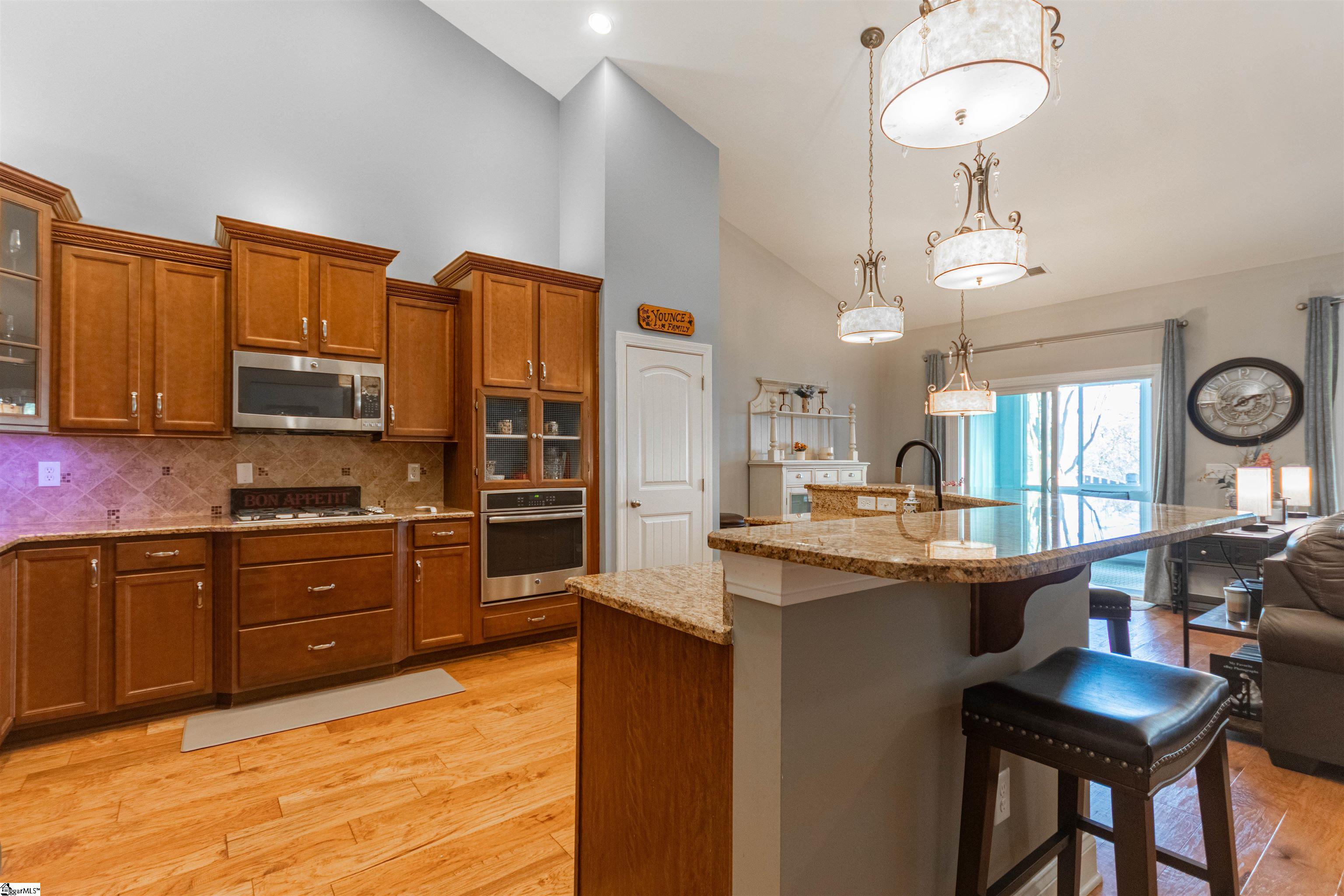 This beautiful Craftsman-style home is located in the desirable Cove at Butler Springs subdivision and features a thoughtfully designed open floor plan filled with charm and functionality. The heart of the home is the gourmet kitchen, complete with granite countertops, stainless steel appliances, a vaulted ceiling, ample cabinetry with pull-out trays, over- and under-cabinet lighting, and generous workspace - flowing seamlessly into the main living areas, making it ideal for everyday living and entertaining. The living room is warm and inviting with a gas log fireplace, complemented by high ceilings, hardwood floors throughout the main level, and wide walkways across the main living spaces. There are three bedrooms and two full bathrooms on the main level, including the primary suite. One of the secondary bedrooms features French doors, making it ideal for use as a home office or den. The large primary suite offers a peaceful retreat with bump-out double windows overlooking the backyard, a walk-in closet, and an en suite bath with dual sink vanity, garden tub, separate shower, and linen closet. Tile flooring is featured in the bathrooms and laundry room. Upstairs, you'll find the fourth bedroom, a full bathroom, a large bonus room, and an additional storage closet - providing flexible space for guests, recreation, or multi-generational living. Outdoor living is equally inviting with a fenced backyard, a property line that extends beyond the fence, and a spacious sunroom - perfect for relaxing or hosting gatherings year-round. If the character and layout of the home don't win you over, the location certainly will, just minutes from downtown Greenville, the Swamp Rabbit Trail, shopping, restaurants, parks, and more. A nearby pedestrian path leads directly to Butler Springs Park, featuring a walking trail, baseball fields, tennis courts, and a playground - ideal for outdoor recreation and community connection.