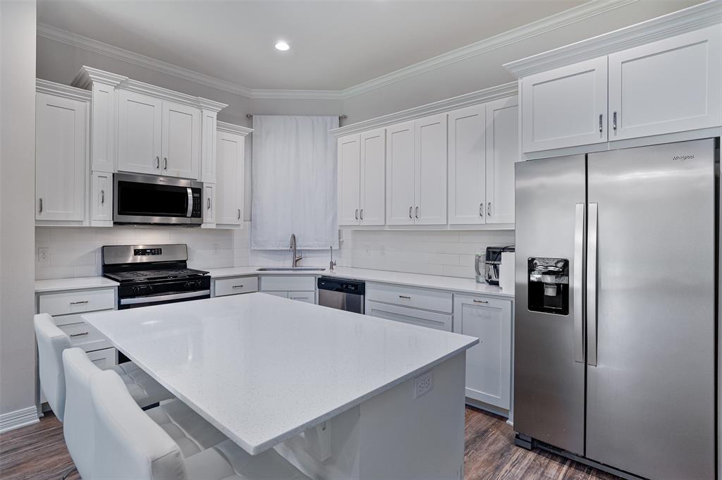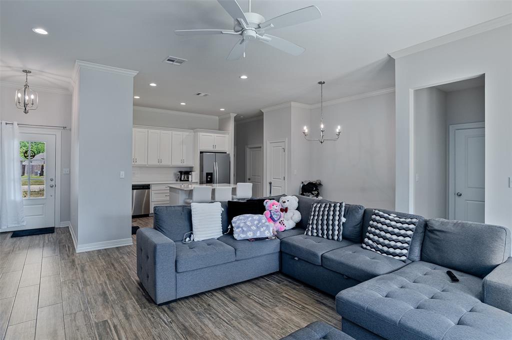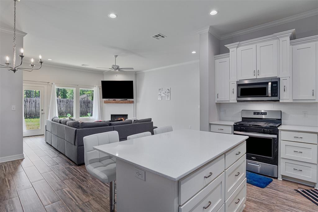 Welcome to this beautifully maintained home located in the desirable gated community of Belle Maison. This stunning 4-bedroom, 2-bath home features a bright open concept floor plan with recessed lighting and luxury vinyl plank flooring, designed for both comfortable everyday living and effortless entertaining. The kitchen is equipped with granite countertops, a large island, stainless steel appliances, a gas range, a pantry, and ample cabinet space. The remote primary suite offers a relaxing retreat with a garden tub, separate shower, and a walk-in closet. All appliances remain, including the washer and dryer, making this home truly move-in ready. Enjoy the covered patio out back, along with the convenience of a two-car garage that includes a Tesla wall charger. Conveniently located with easy access to shopping, dining, and more.