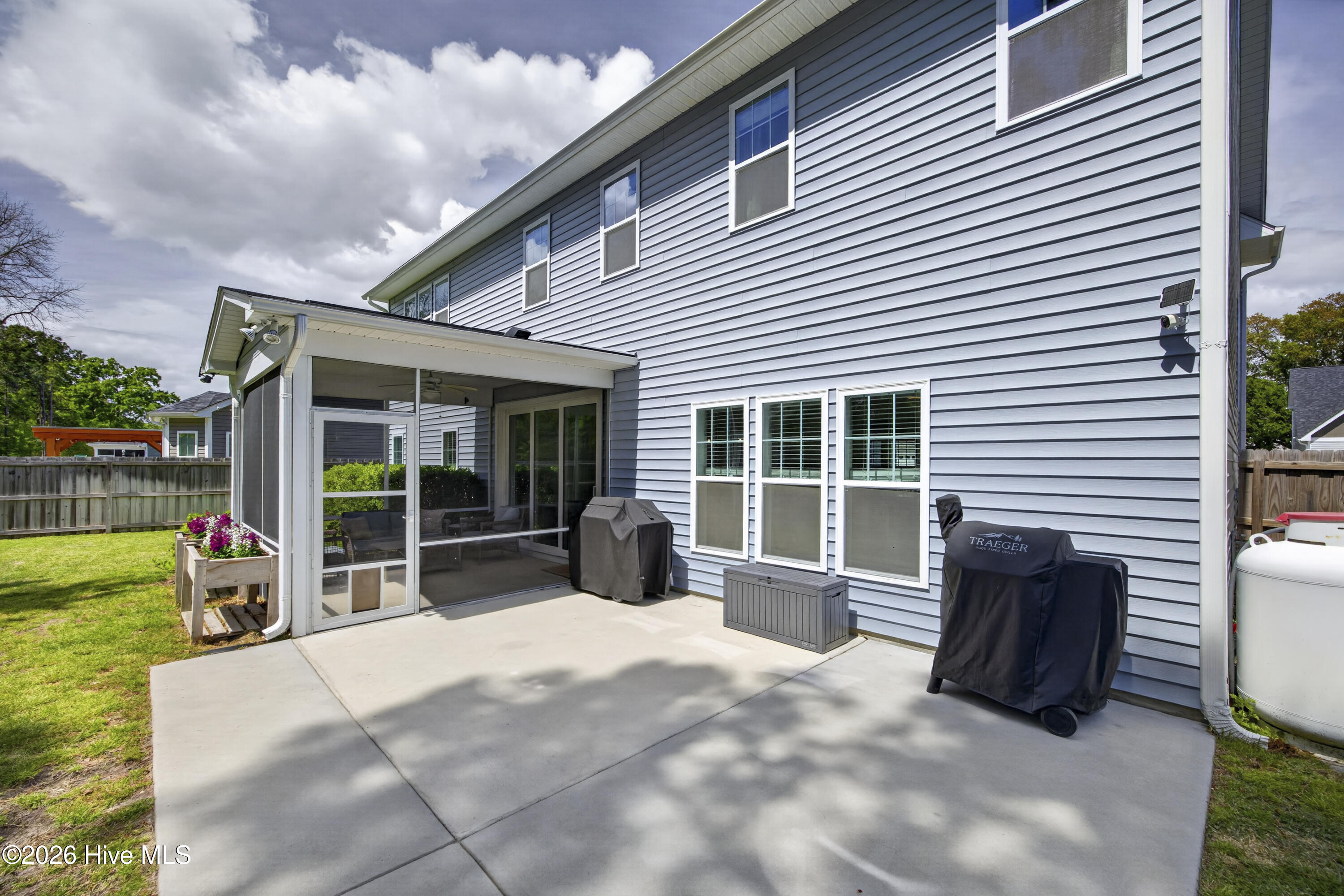 Don't miss your opportunity to own this exceptionally spacious and beautifully designed home in the highly sought-after Hampstead area, located within the top-rated Topsail School District. Blending elegance, comfort, and functionality, this 5-bedroom, 4-bath home offers the perfect layout for modern living. Step inside to discover generous living spaces, including a dedicated home office and an oversized bonus room--ideal for a media room, playroom, or additional living area. Need even more space? The unfinished attic presents an excellent opportunity for future expansion, while the garage offers flexibility for a home gym, workshop, or hobby space. The heart of the home features a stunning kitchen designed for both everyday living and entertaining, complete with a large island, stainless steel appliances, a built in oven, gas stove and pantry. The open-concept layout flows seamlessly into the living area and out to a screened-in porch, overlooking a private backyard--perfect for enjoying indoor-outdoor living year-round. Upstairs, you'll find four spacious bedrooms, a convenient second-floor laundry room, and the impressive bonus space. The primary suite is a true retreat, featuring soaring ceilings, a walk-in shower, dual vanities, and an expansive walk-in closet. This spacious, fully fenced backyard offers the perfect blend of relaxation and functionality, featuring a large patio ideal for entertaining, a covered and screened-in porch for year-round enjoyment, mature trees providing shade and privacy, and a charming fire pit area--plus a storage shed for added convenience Eliminate electric bills and boost long-term savings with fully paid-off solar panels already installed and ready to perform from day one. Ideally located just a short walk from the community clubhouse and pool, this home offers both privacy and access to great amenities. Whether you're relaxing at home or enjoying the neighborhood features, this 3,390-square-foot residence delivers the lifestyle you've been looking for. A rare opportunity in one of Hampstead's most desirable communities--schedule your private showing today!