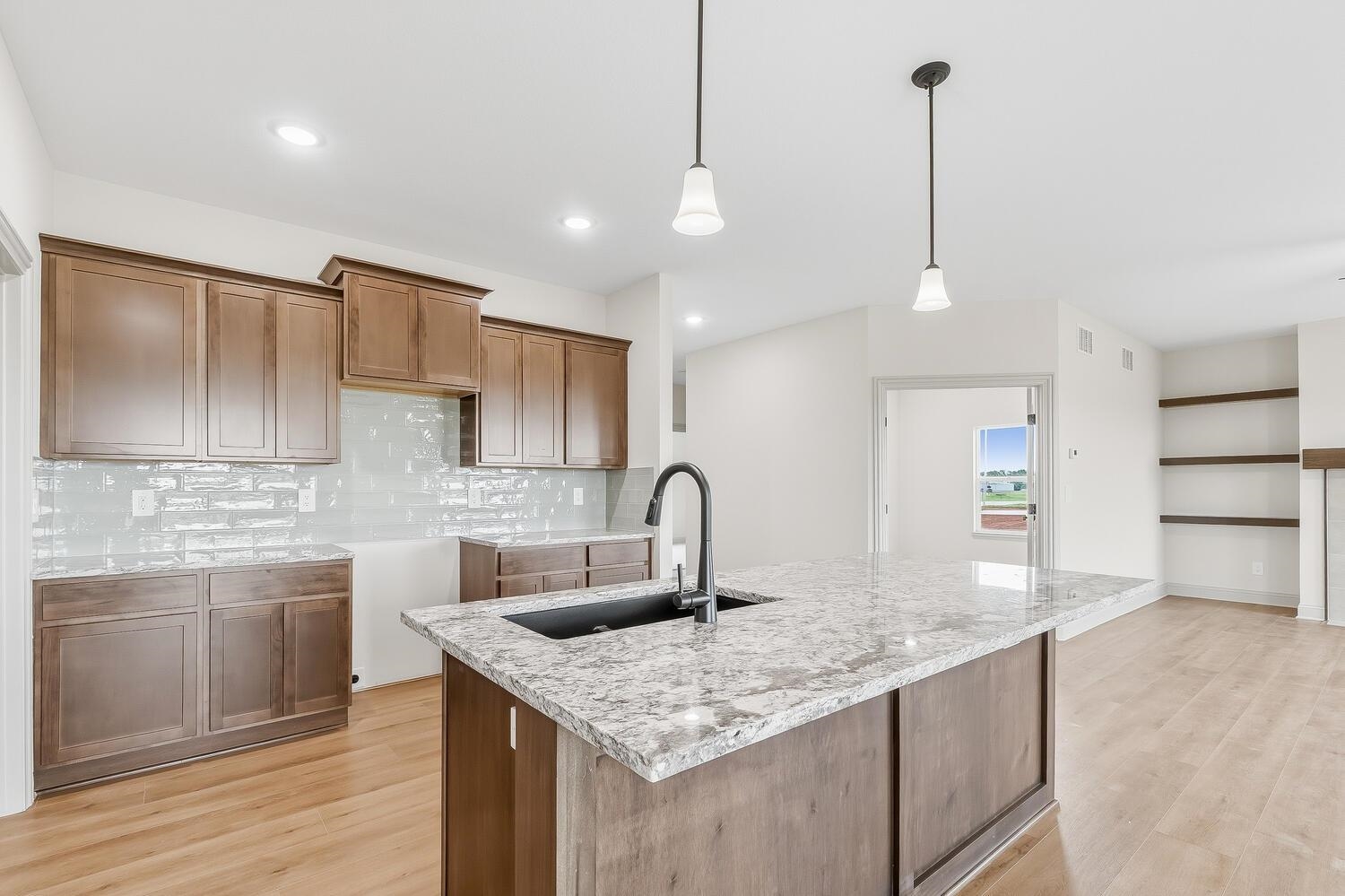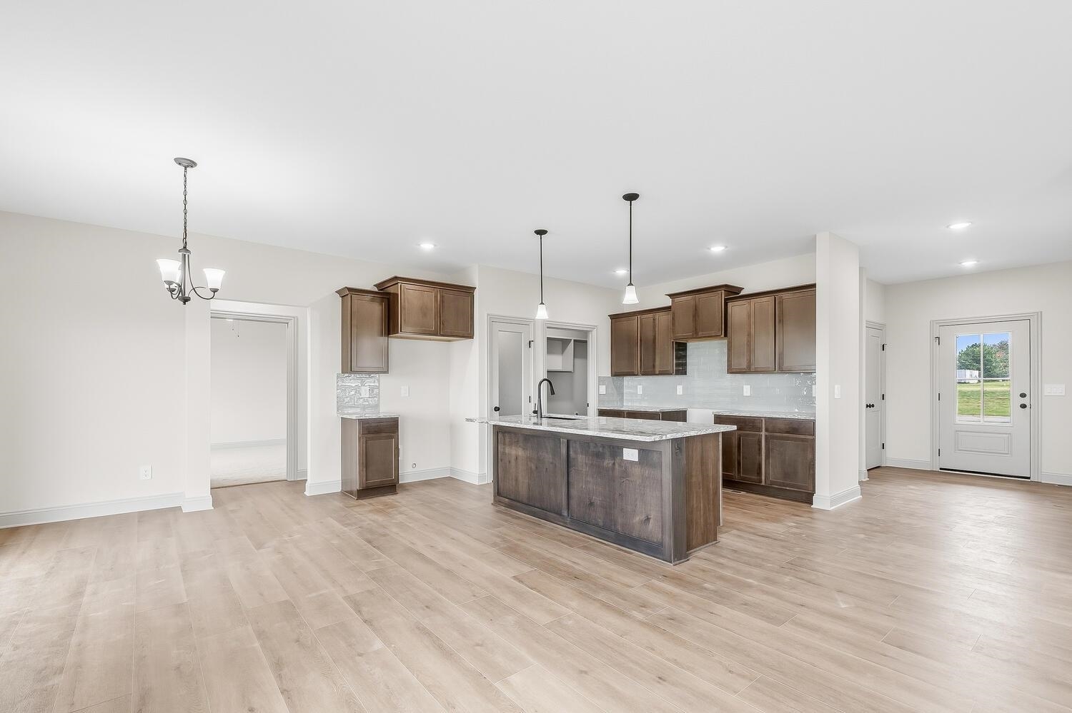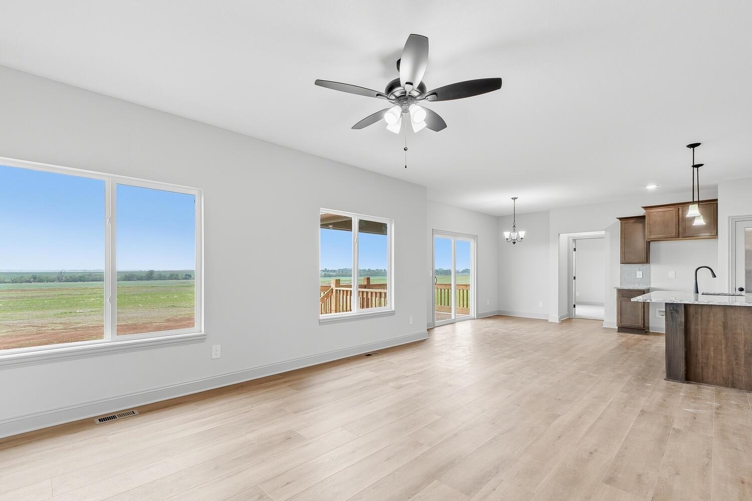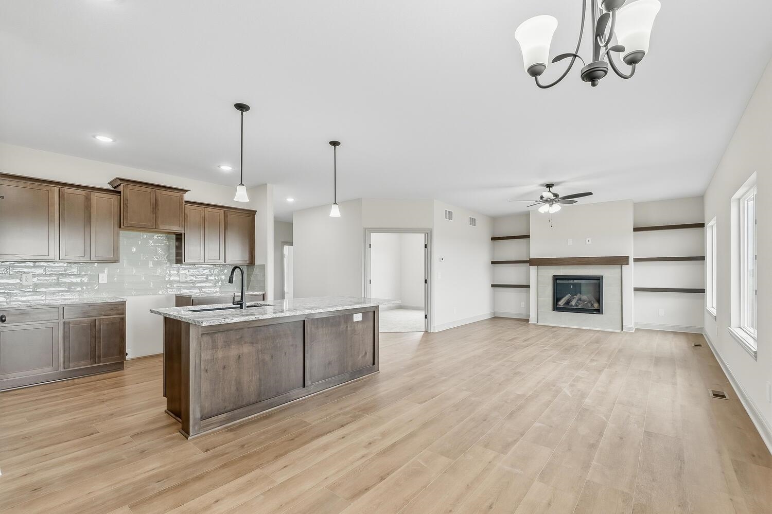 You Must See this Gorgeous Trinity Open Floor Plan By Don Klausmeyer Const! This 3 bed, 2 bath, 3 car garage home includes LOTS of Upgrades! Solid surface countertops in the Kitchen, Luxury Vinyl Plank Floors in the Main living area, 5' Tile Walk-In Shower in Master Bath, Main Floor Laundry Connected to Master Closet, Beautiful Hard Wood and Tile Gas Fireplace in the Living room, upgraded Trim, Walk-In Panty, 14' Covered Deck, View-Out Basement with Room to add 3 more Bedrooms, 3rd Bath and Family room w/Wet Bar! All this and More on a 2.1 Acre Lot with No Specials and No HOA!!