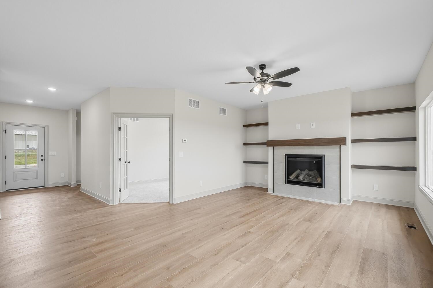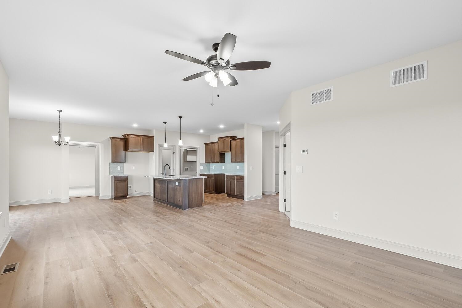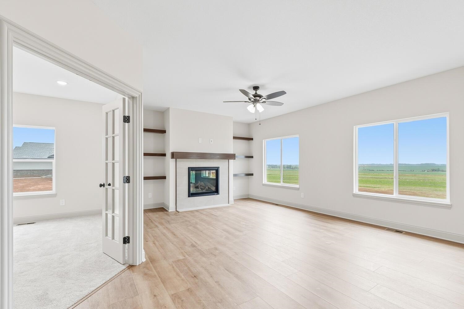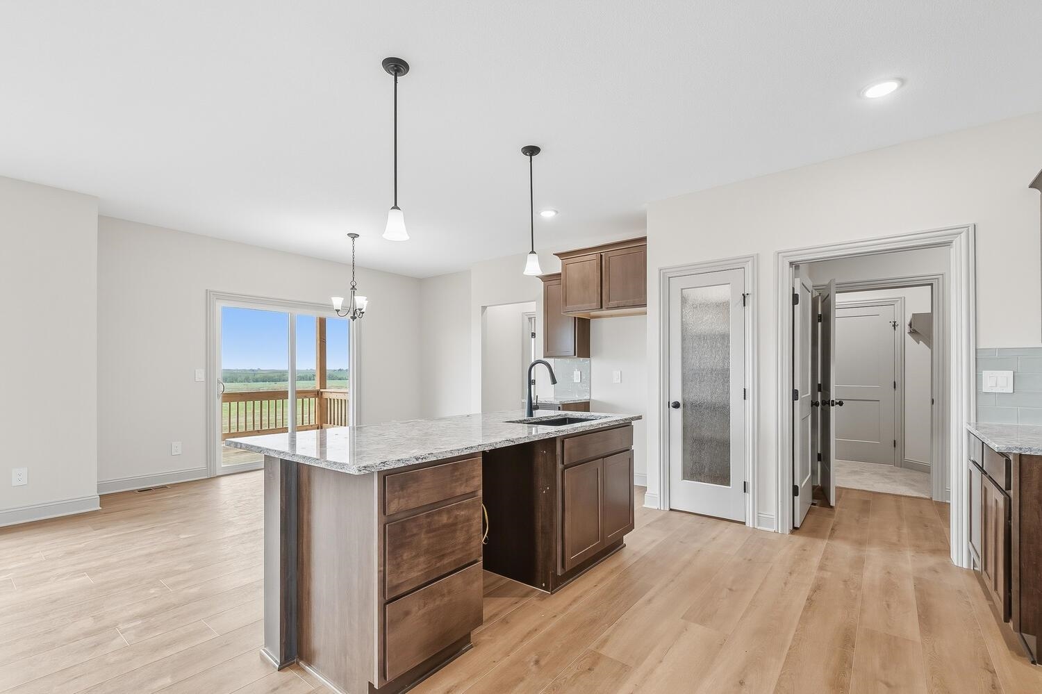 You Must See this Gorgeous Trinity Open Floor Plan By Don Klausmeyer Const! This 3 bed, 2 bath, 3 car garage home includes LOTS of Upgrades! Solid surface countertops in the Kitchen, Luxury Vinyl Plank Floors in the Main living area, 5' Tile Walk-In Shower in Master Bath, Main Floor Laundry Connected to Master Closet, Beautiful Hard Wood and Tile Gas Fireplace in the Living room, upgraded Trim, Walk-In Panty, 14' Covered Deck, View-Out Basement with Room to add 3 more Bedrooms, 3rd Bath and Family room w/Wet Bar! All this and More on a 2.1 Acre Lot with No Specials and No HOA!!