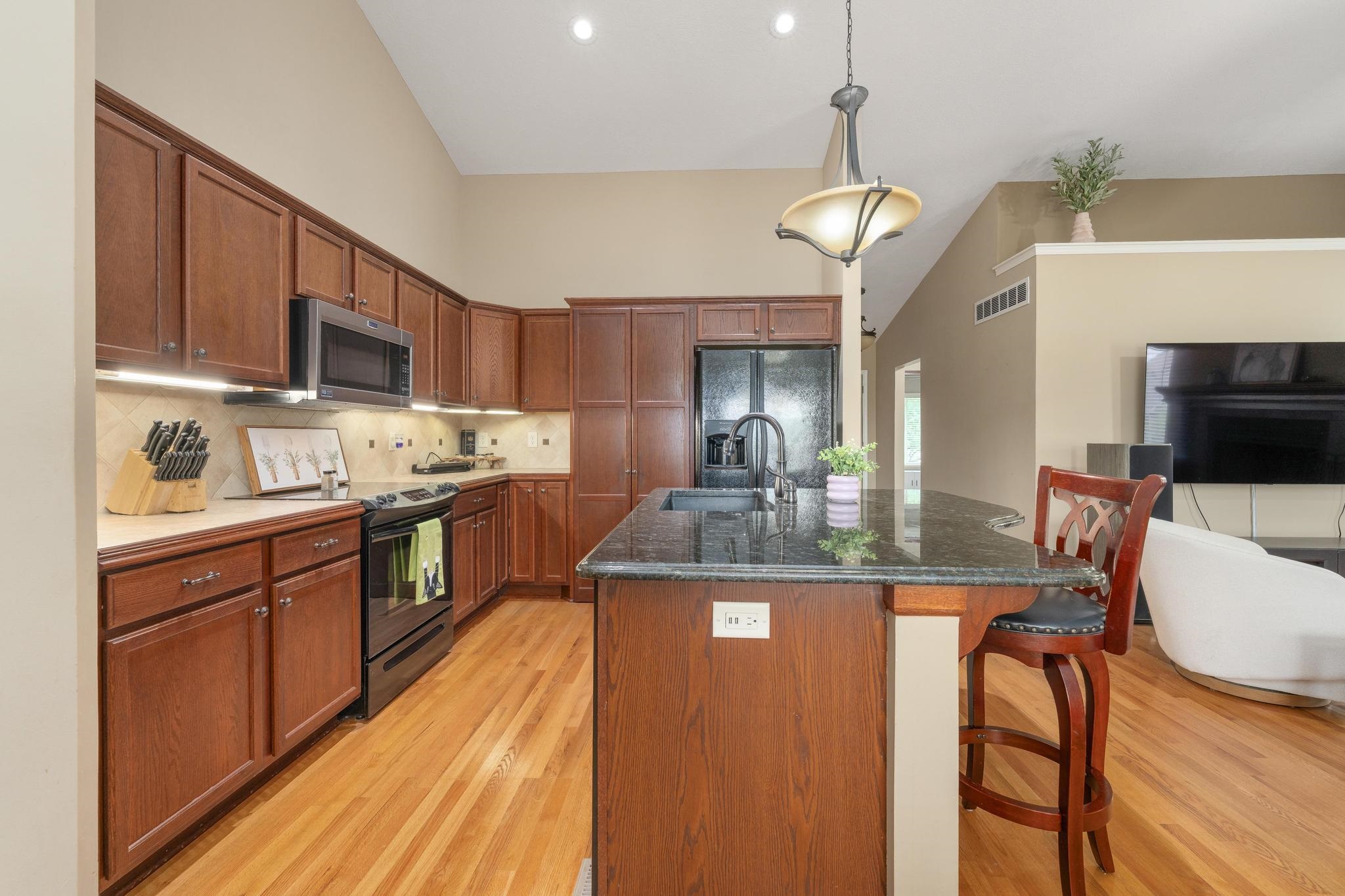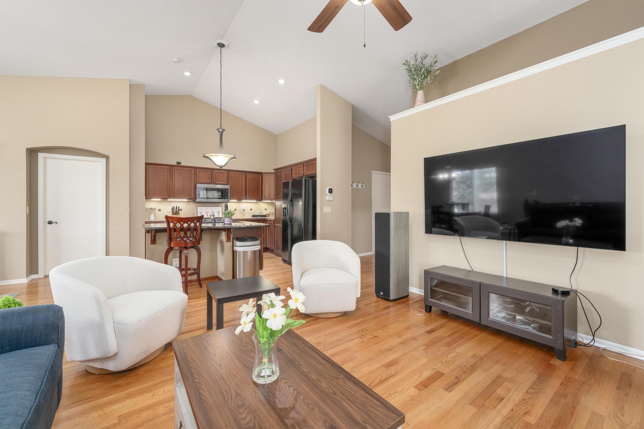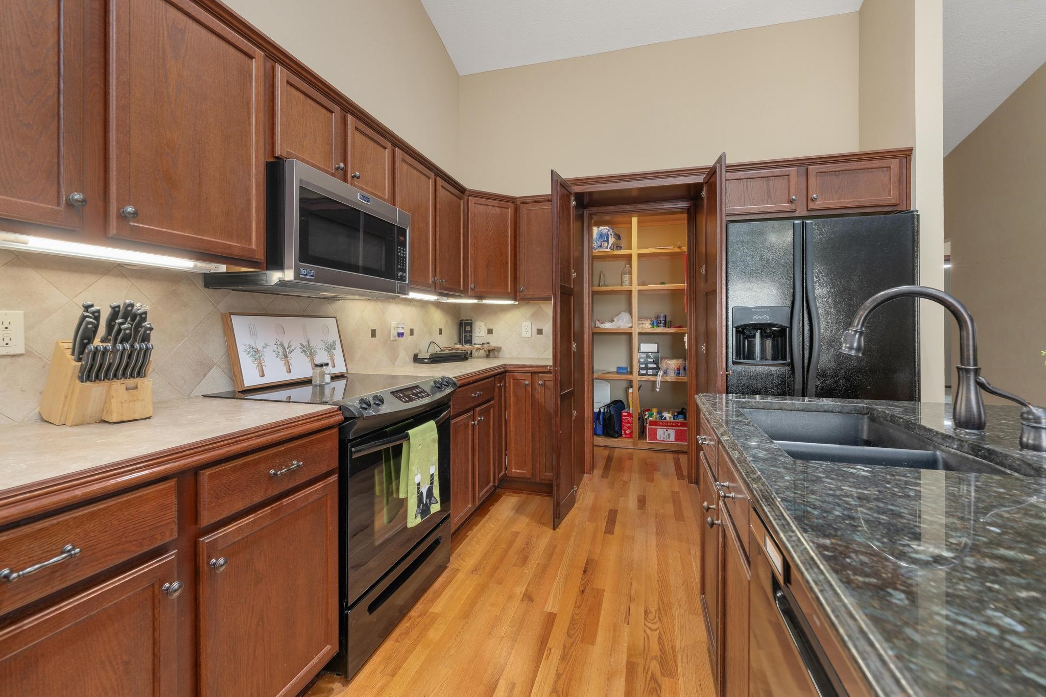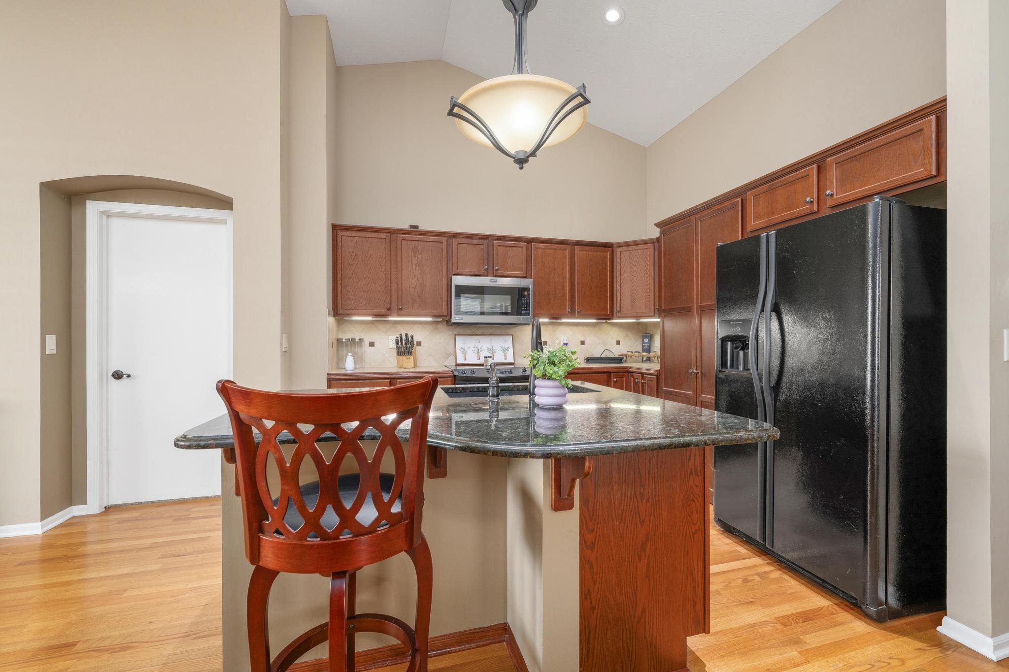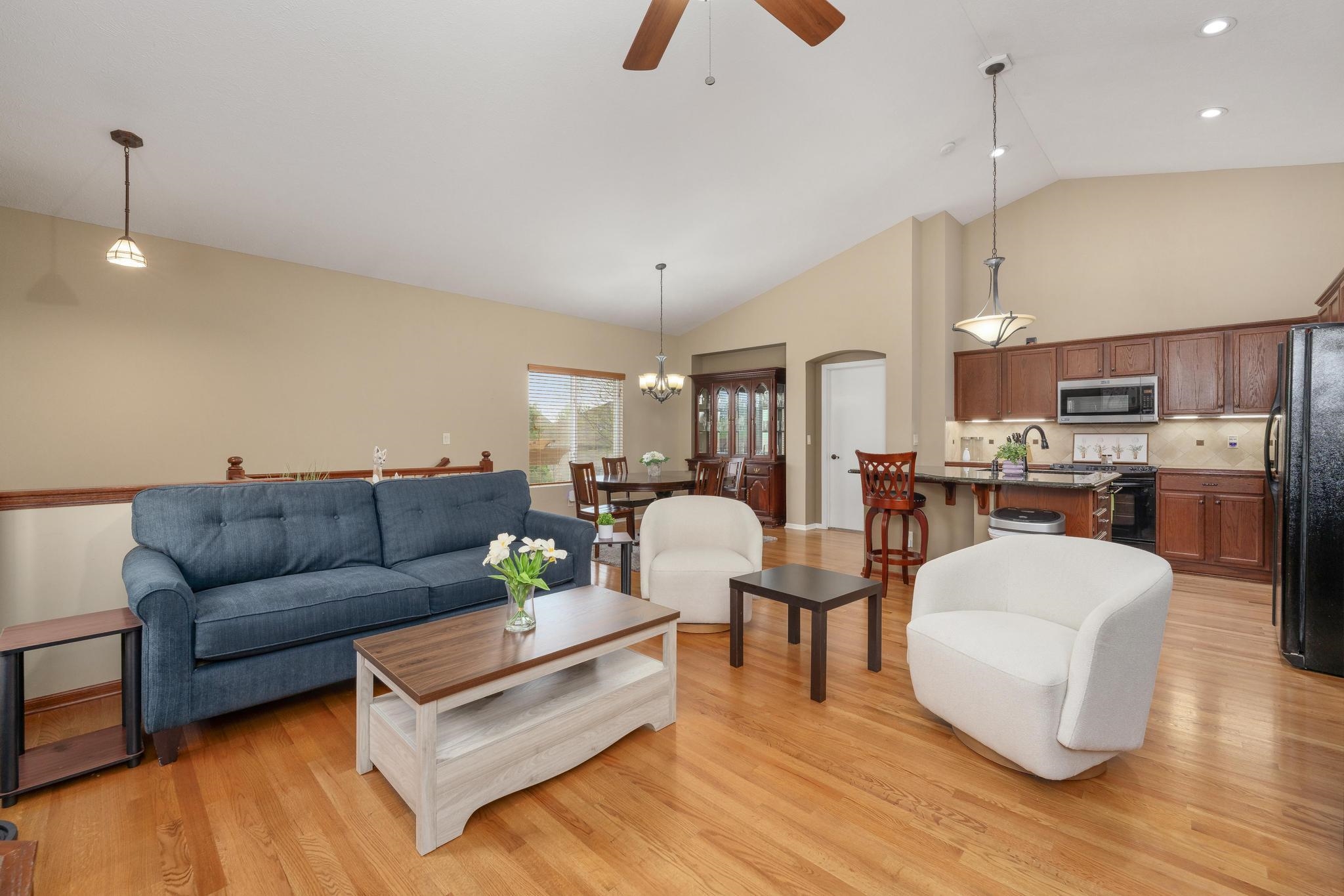 Prepare to rediscover your weekends. This spacious 4-bedroom, 3-bath home offers the luxury of low-maintenance living in the mature Ridge Port neighborhood, in the Maize school district, all without sacrificing living space. The HOA dues are idealistic for relaxation, covering lawn care, trash service, sprinkler system operation (on its own separate water meter - talk about efficiency!), and even snow removal. Better yet? There are no added special taxes to spoil the fun. Step inside the main floor and immediately appreciate the open-concept, split-bedroom floor plan, which includes two bedrooms, two full bathrooms, and a separate, fully equipped laundry room. Vaulted ceilings and gleaming hardwood floors span the common kitchen, living, and dining areas, providing style and efficiency - a perfect complement to the newly installed roof. The kitchen is a chef's dream and a hoarder's delight, featuring all appliances, ample storage, a convenient quartz countertop island, and that all-important hidden pantry - because who doesn't love a place to hide the airfryer? The primary suite is your private retreat, boasting a spacious bathroom with double sinks, a walk-in closet large enough for two wardrobes (or one very ambitious one), a stand-up shower, and a skylight window. A few steps take you down to the brand-new pergola - the ideal spot to host or simply admire the beautifully landscaped, fenced backyard, a true oasis nestled in this quaint section of Ridge Port. Descend further to find the vast, fully finished basement, featuring a recreation room built for fun, two additional spacious bedrooms, and a full bathroom. With just over 2,500 total square feet, this west side gem proves you never have to choose between convenience and elbow room.