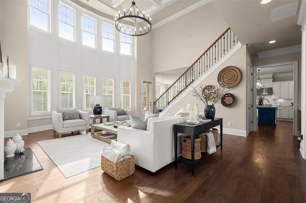 Cul-de-sac. Level yard. Private backyard. 3 car garage. Walkable to Downtown Crabapple. A rare opportunity to own a refined residence in one of Alpharetta's most sought-after communities. This 6 bedroom, 5.5 bath four-sides brick home offers what today's buyers are looking for...a level front and backyard, a private setting, and a truly walkable lifestyle. Set along tree-lined streets with sidewalks on both sides, the neighborhood is as inviting as it is connected. Enhancing that walkable lifestyle, a discreet neighborhood gate offers a rare and effortless connection to the surrounding area, opening to sidewalks in every direction...enjoy an easy walk to Downtown Crabapple, with Downtown Alpharetta just a short ride away, offering an exceptional mix of dining, shopping, and live music, along with the option to walk to a Friday night game at Milton High School. A covered front porch and grand double entry doors welcome you into a light-filled interior with soaring ceilings and beautiful hardwood floors throughout. A private office with glass French doors offers a flexible space for work or study. The two-story great room features a gas fireplace flanked by custom built-ins and a wall of windows that fills the home with natural light, with an open catwalk above. The space flows seamlessly into a generously sized dining room, ideal for gathering and entertaining. The kitchen is beautifully appointed with quartz countertops, white cabinetry, stainless steel appliances, and an oversized island with seating. An inviting breakfast area opens to a keeping room with a stone fireplace. A large walk-in pantry and expansive butler's pantry add both function and additional entertaining space. The main level includes an oversized guest suite with a full bath, along with a convenient powder room. Upstairs, a loft offers a perfect reading nook or flex space. The oversized primary suite features a sitting area and a spacious bath with double vanities, a soaking tub, an oversized shower, and a custom walk-in closet. Two secondary bedrooms offer private en suite baths, while two additional bedrooms are thoughtfully served by a well-appointed shared bath. A centrally located laundry room and abundant storage enhance everyday living. Outdoor living stands out with an expansive natural flagstone patio featuring custom-laid stonework, set within a private, level backyard with space to add a pool if desired. Complete with a three-car side-entry garage, this home offers a rare blend of lifestyle, function, and amazing location.