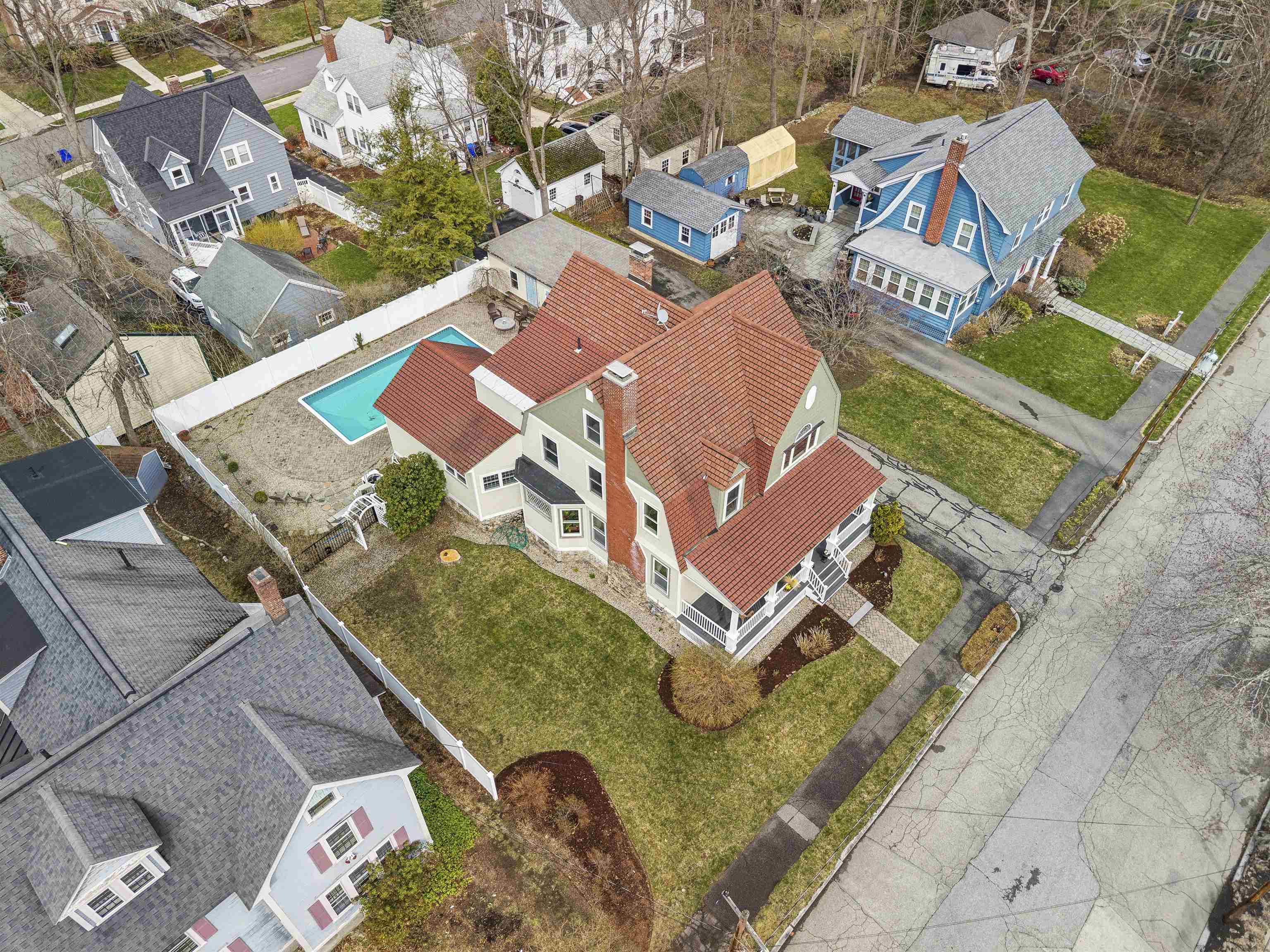 Open House this Sunday from 10-1. Nestled on the coveted, tree-lined Chestnut Street in Manchester's North End, this 1890 Grand Victorian is a masterpiece of historic elegance and modern luxury. Boasting over 4,000 finished square feet, this turn-key estate has been relentlessly updated. Step off the covered front porch into a grand foyer anchored by an impressive staircase leading to the second level. The sweeping main floor, defined by soaring high ceilings and rich natural light, is designed for entertaining. Settle into the bespoke library with floor-to-ceiling bookshelves, or host snowy New England gatherings around the formal living room's stunning stone wood-burning fireplace. A magnificent formal dining room comfortably seats ten and flows through stained-glass double doors into an updated family room with vaulted ceilings, overlooking the backyard. The heart of the home is the chef's kitchen, showcasing a unique copper ceiling, granite counters, and newly updated appliances including a 2025 refrigerator and dishwasher. Upstairs, the private quarters feature newer windows, doors, and trim. The 2nd level offers 4 generous bedrooms, an upgraded laundry room, and a spa inspired full bath with 2 separate vanities and custom tile. The versatile third floor serves as a sprawling primary retreat, or guest suite. Custom blackout honeycomb shades provide ultimate privacy throughout the living spaces. Outside, your private resort awaits with a heated in-ground pool, featuring a newer pump and sand filter, alongside an extended length detached two-car garage. Absolute peace of mind is guaranteed by massive recent capital improvements: exterior LP Smart Siding with Blueskin insulation, new boiler and water heater, a 2024 chimney rebuild, and generator-ready wiring. Climate is effortlessly controlled by a smart thermostat. Properties of this caliber, this scale, and this condition, simply do not come to market often. Select photos have been staged or enhanced.