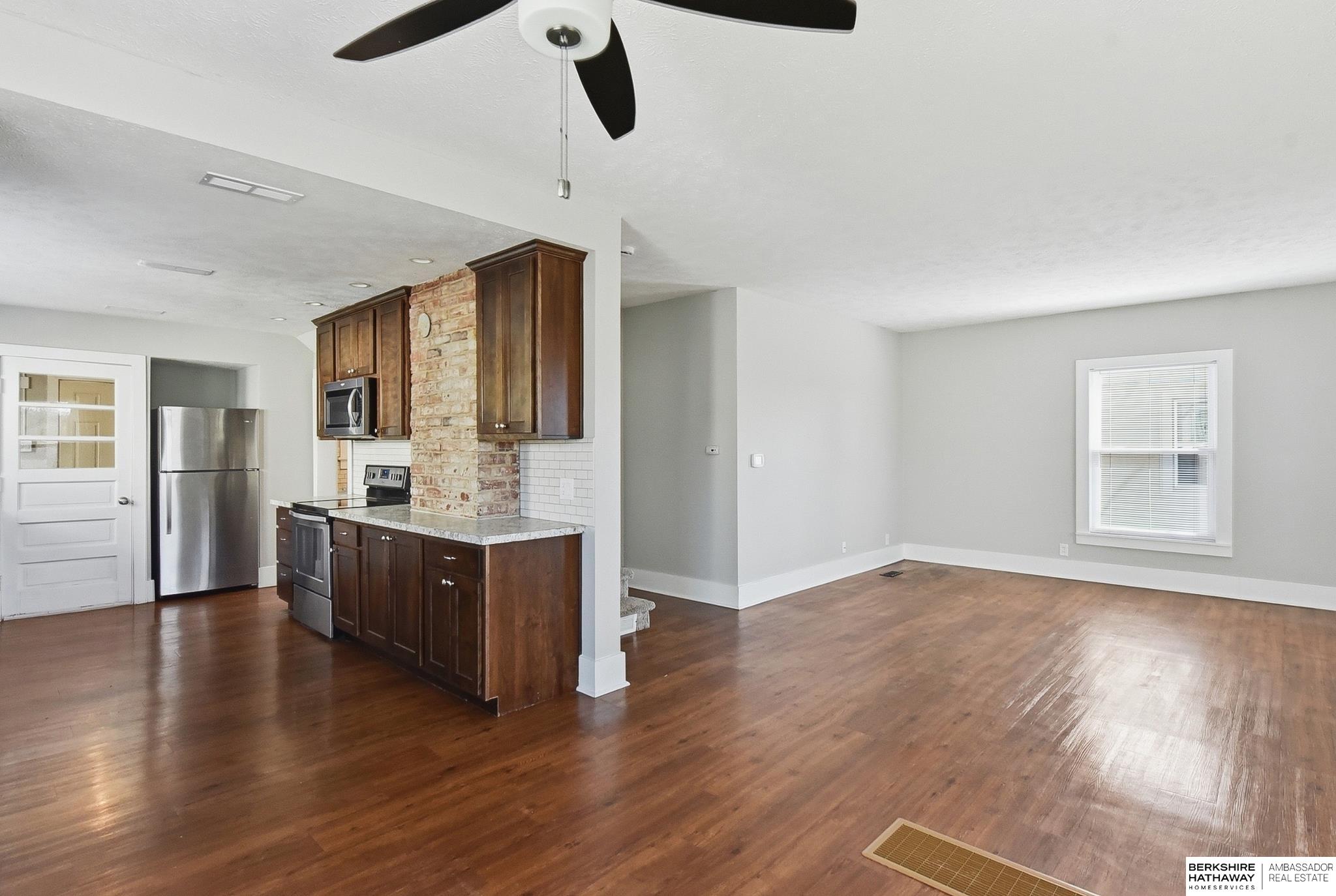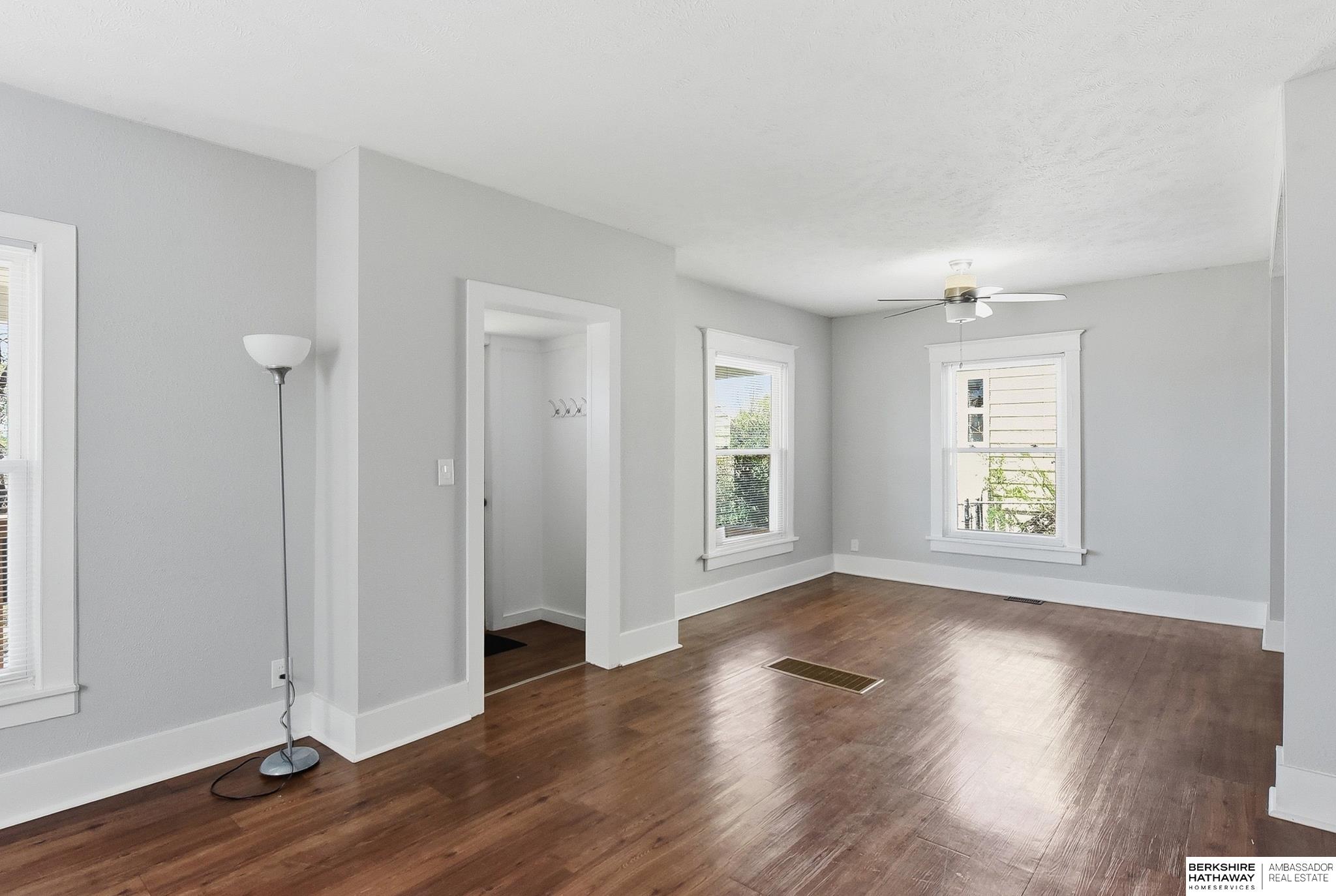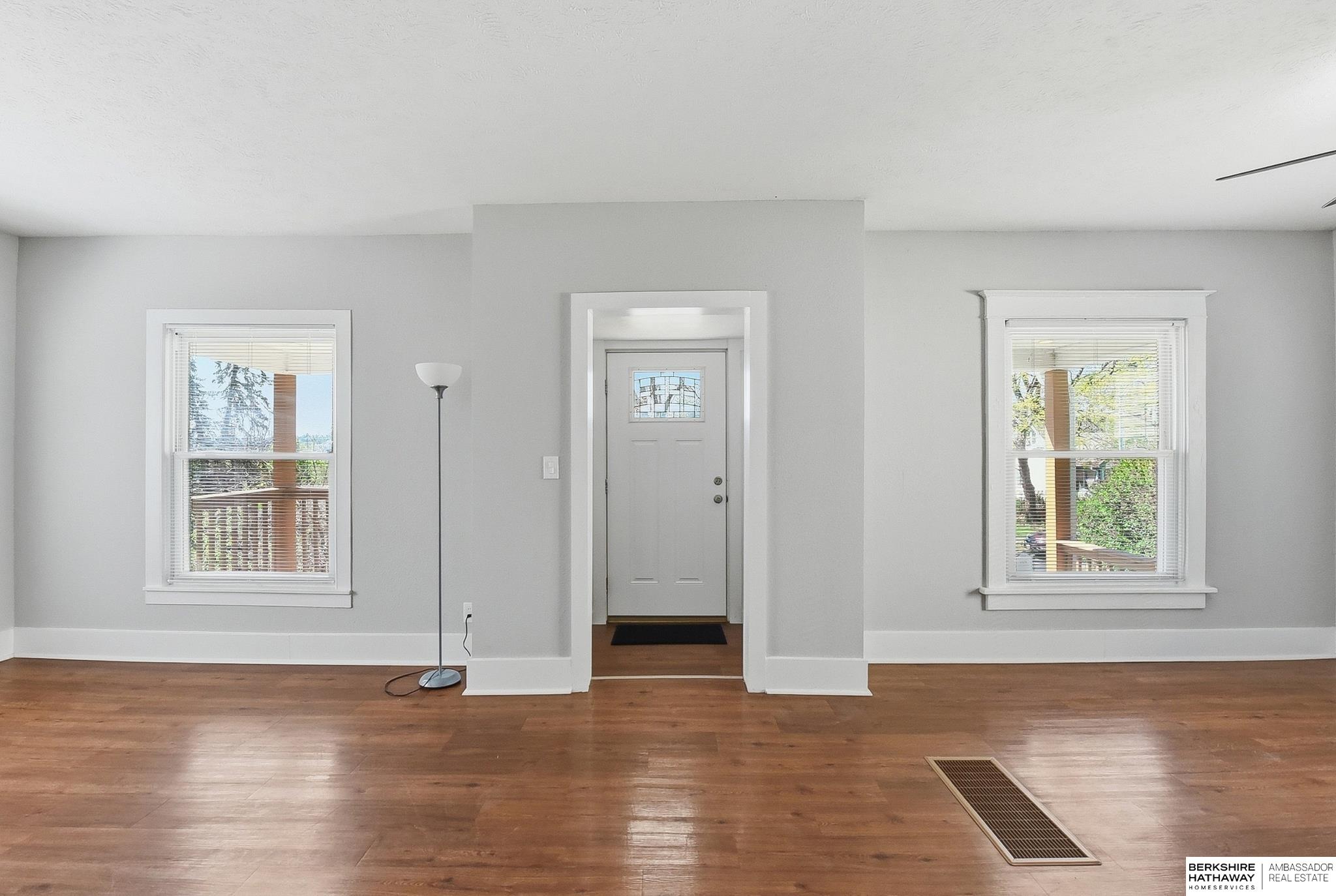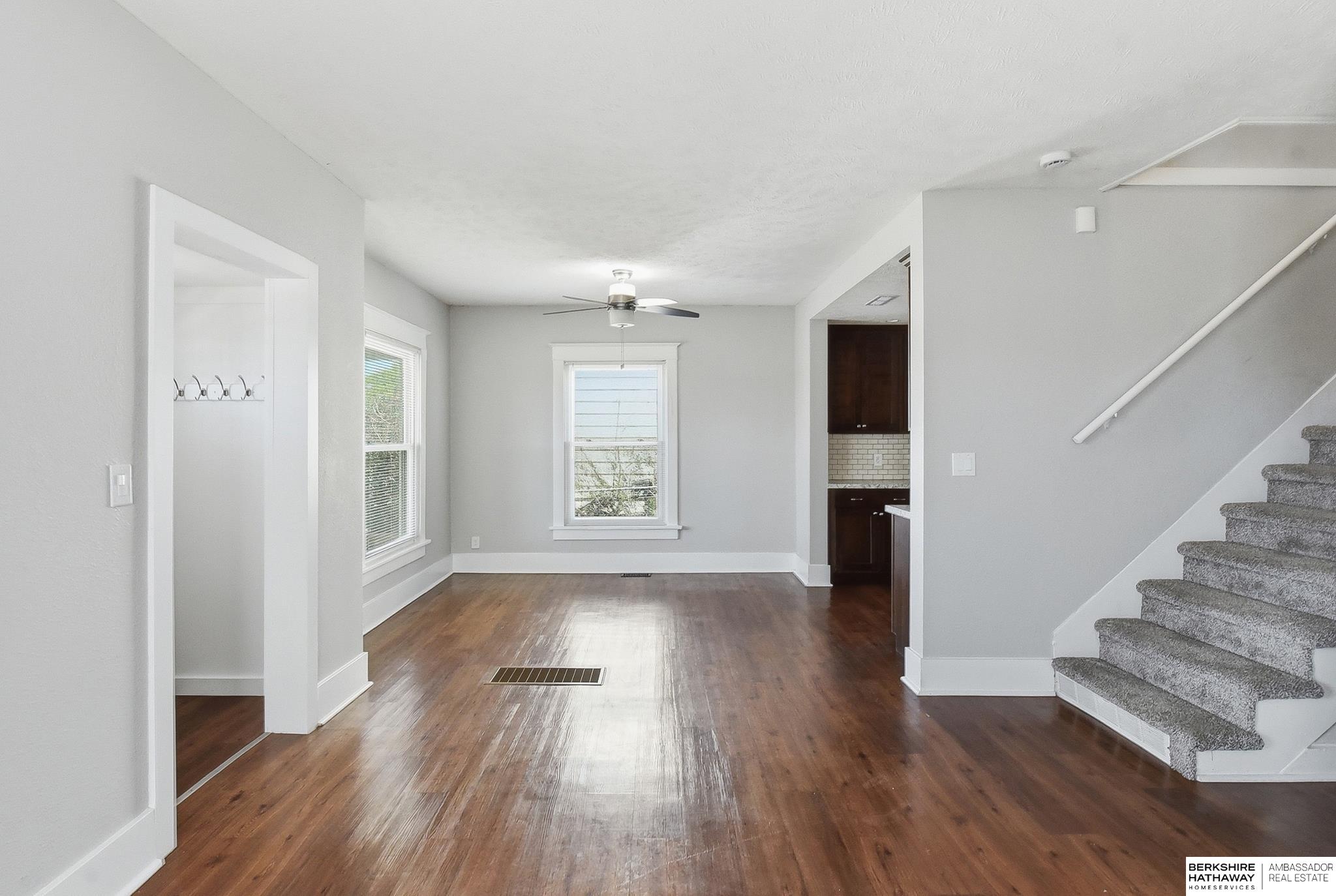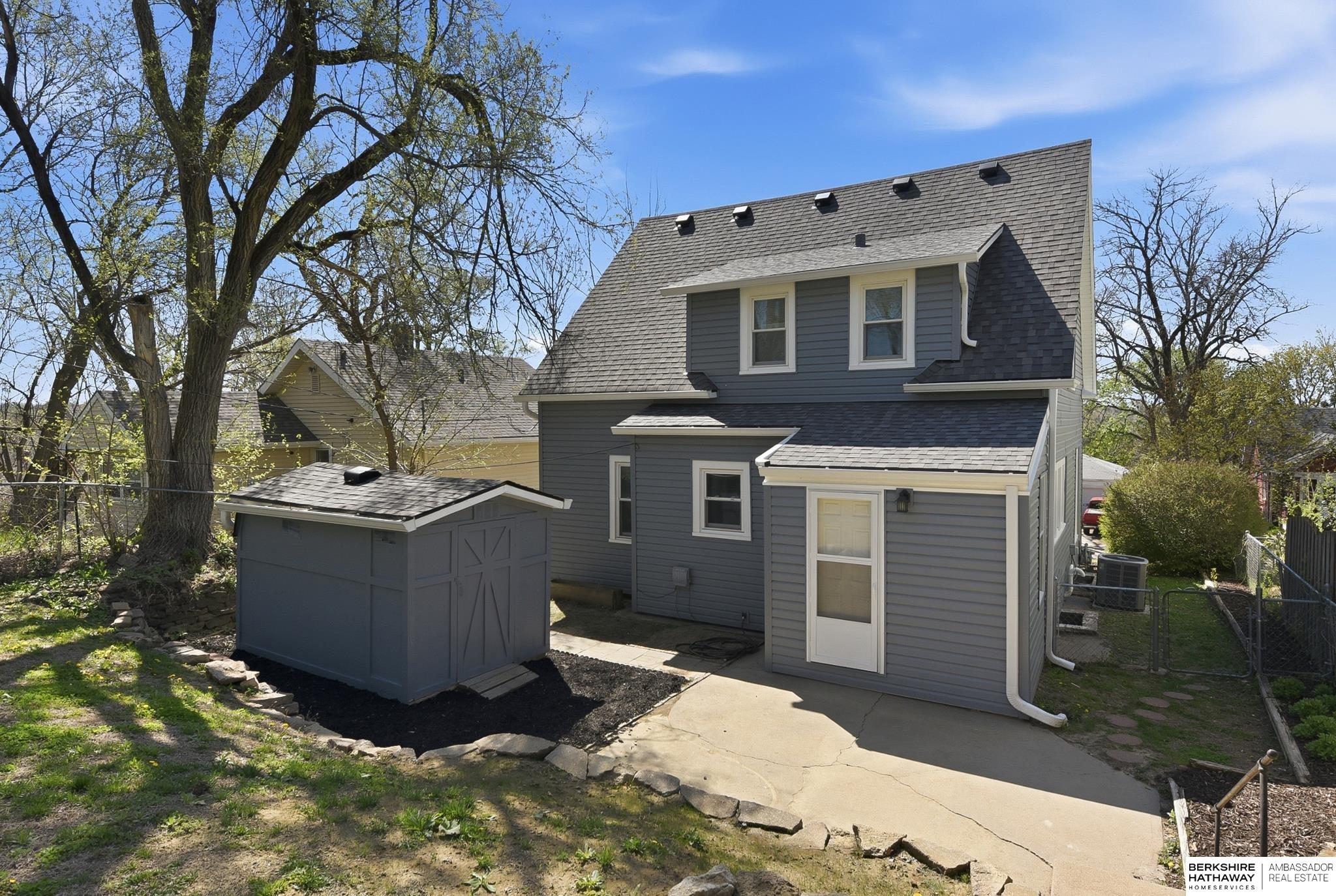 Charming and well-maintained home in a convenient central Omaha location! This property offers an updated open floor plan, with high ceilings and abundant natural light throughout, creating a bright and inviting atmosphere. The home features a functional layout with comfortable living spaces and a well-appointed kitchen. Recent updates include a new Class 4 roof (2024) and new maintenance-free vinyl siding (2024), providing peace of mind and long-term value. The home backs directly to Belle Ryan Elementary School with the ability to walk out your back gate for convenient access. The backyard includes a nice patio, offers privacy, and features a storage shed-perfect for relaxing or entertaining. Located near parks, shopping, and easy interstate access, this home combines comfort, value, and location.