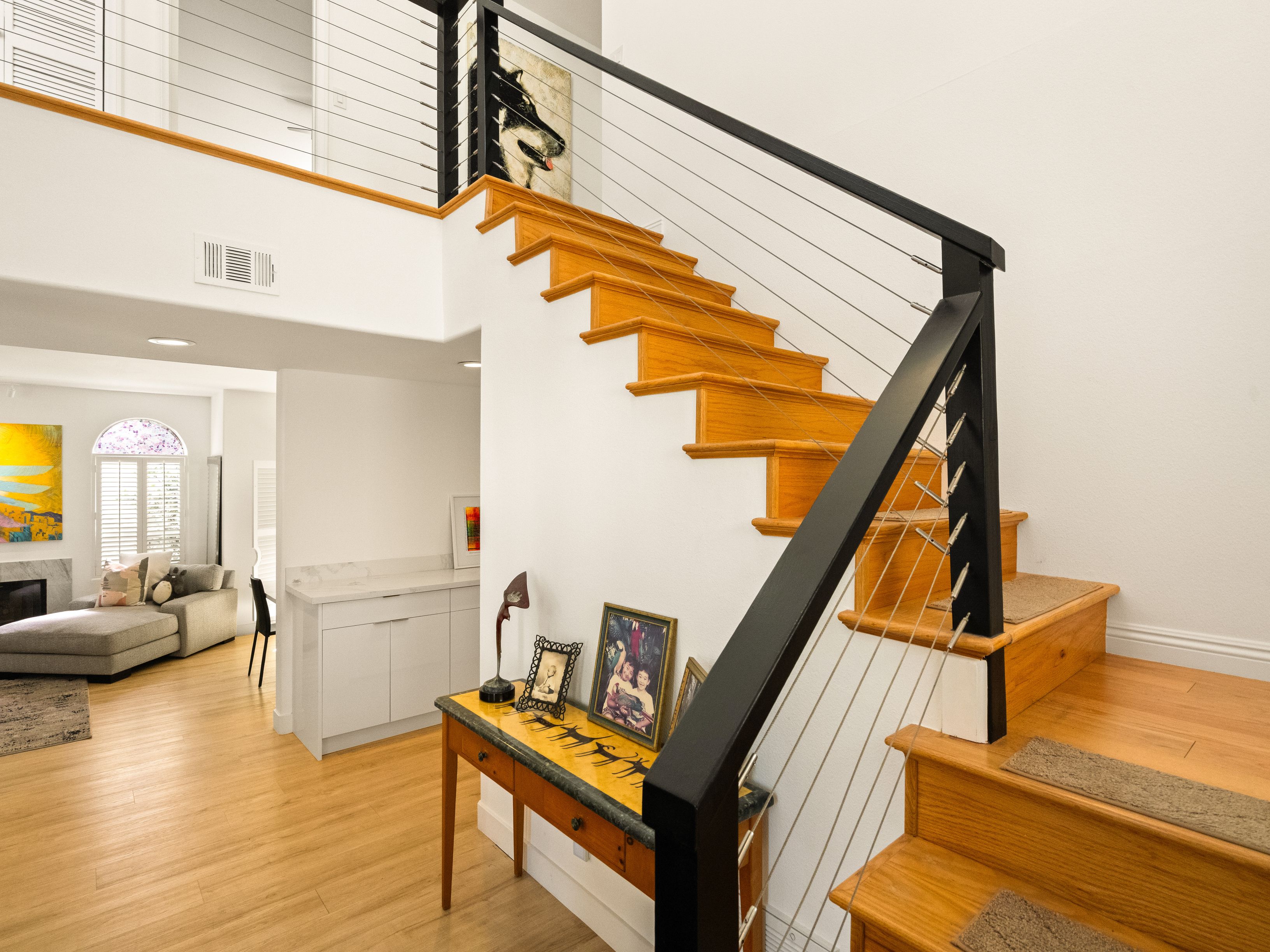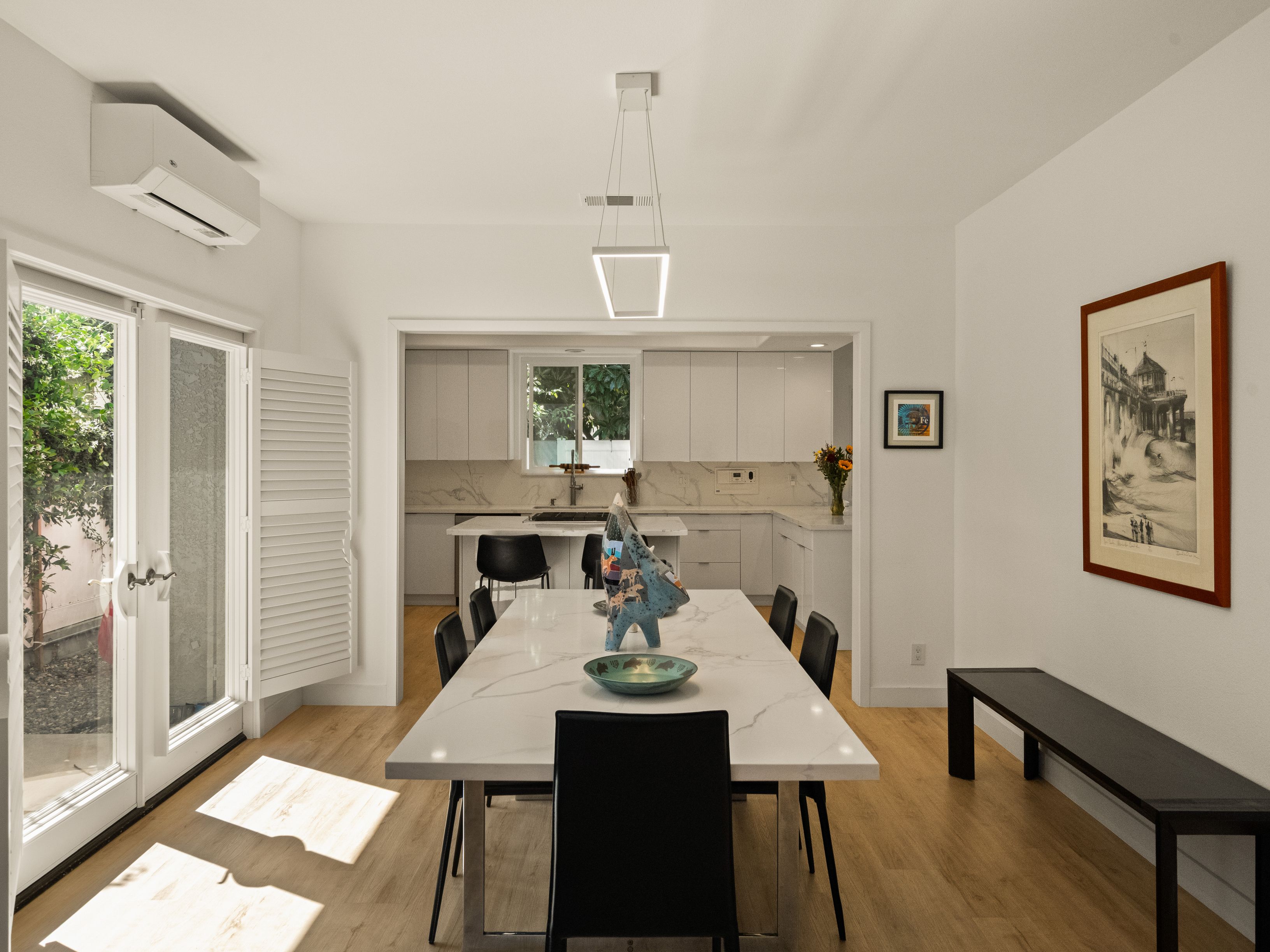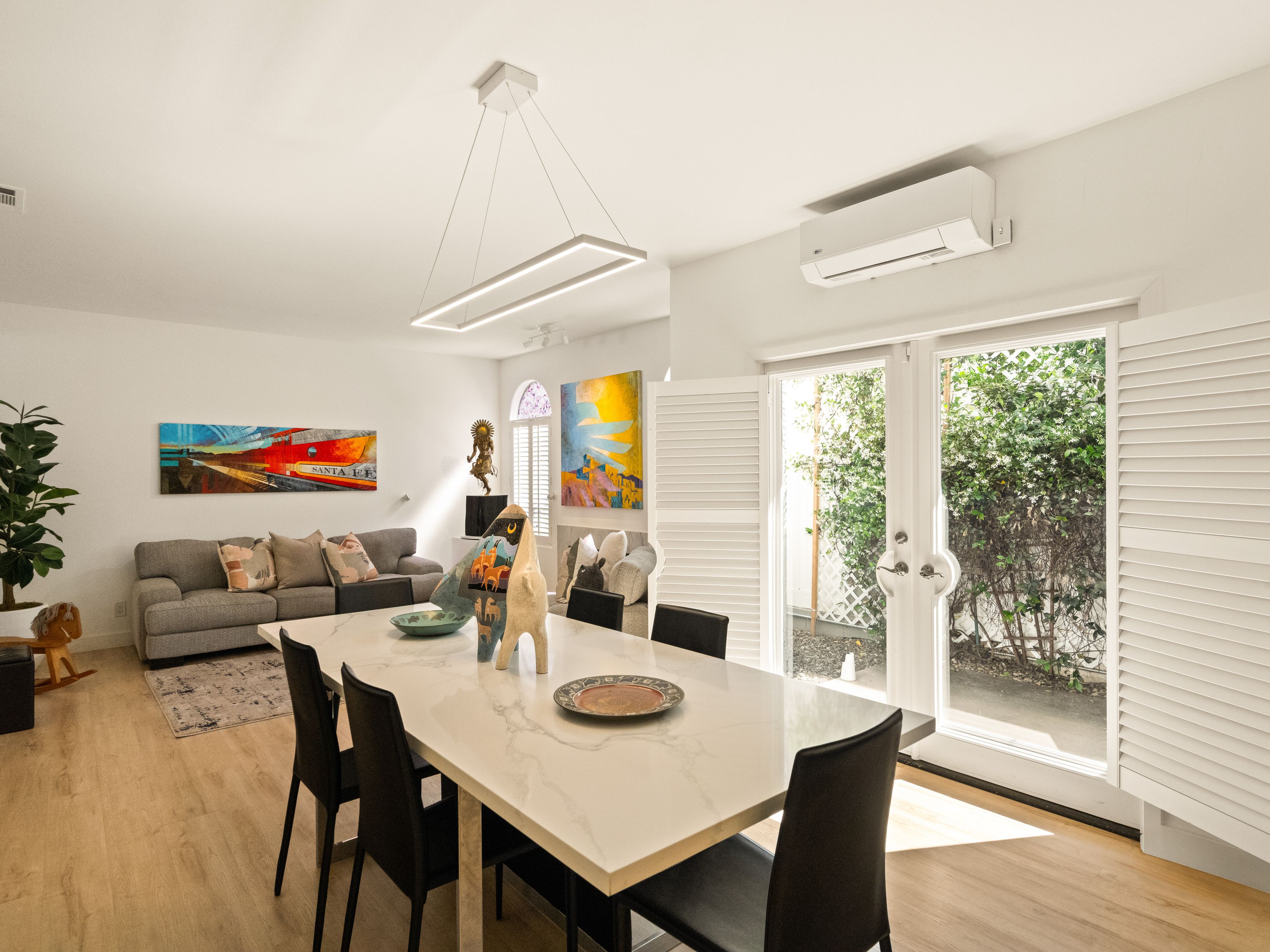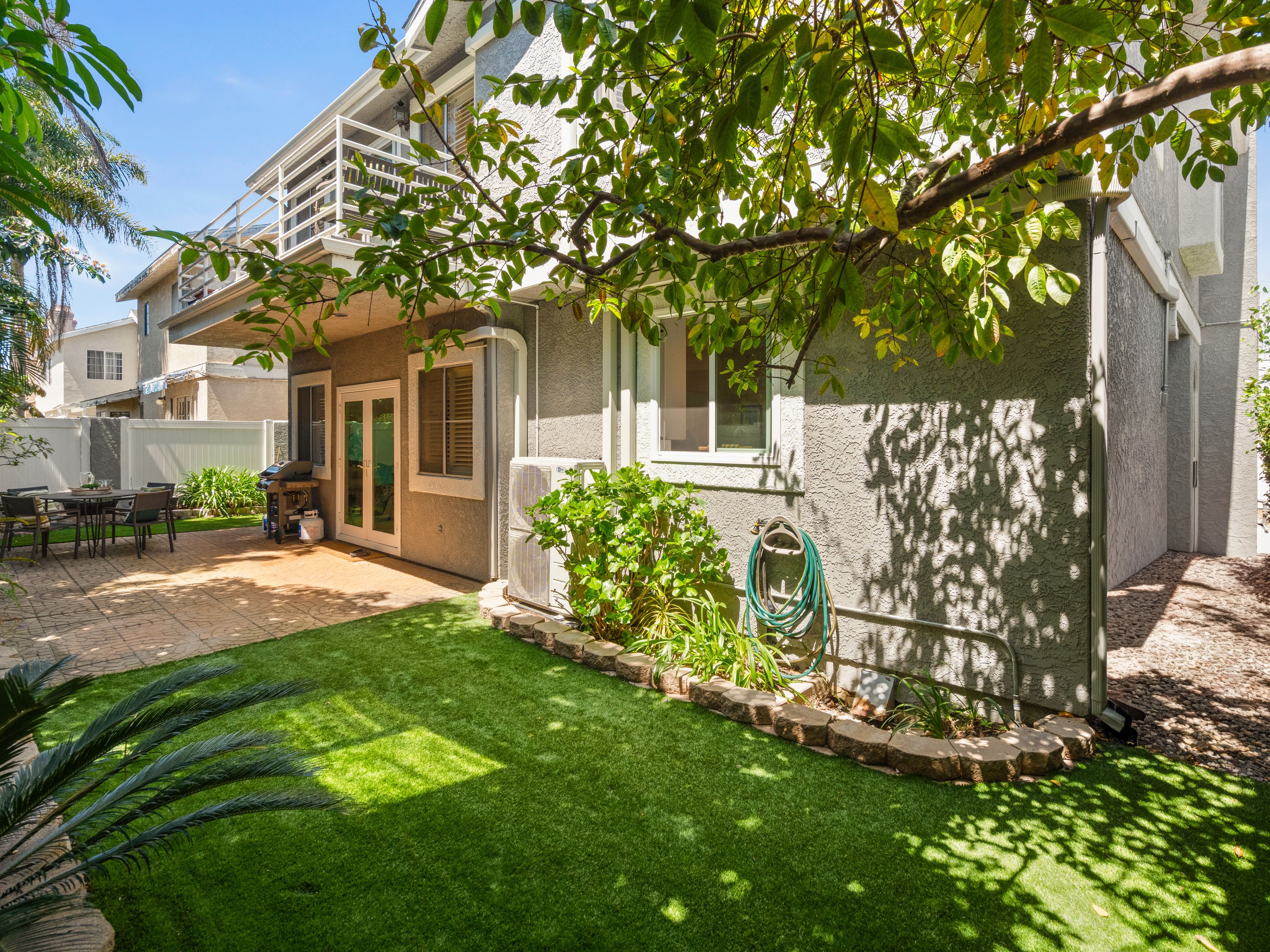 Large spacious rooms, modern upgrades, clean lines, and great light characterize this special townhome in North Redondo. The 2-story formal entry is appointed with a modern railing and large walls perfect for artwork. A formal living room with fireplace, and a family room, offer two very usable living spaces as they both conveniently open to the hub of the home: the kitchen. This sleek, modern kitchen was redone three years ago along with numerous other features. It's designed for those who enjoy to cook and entertain. A large island hosts a gas range with a down-draft exhaust which efficiently vents to the exterior. There's an electric wall oven, dishwasher, ample cabinetry, and quartz counters. A peninsula offers additional bar seating. The dining room has plenty of space for a large dining table for big gatherings; no elbows bumping here. French doors from both the dining area and family room lead to the lush backyard. A patio, grassy area, and foliage create a lush, private backyard oasis. Upstairs are three generously sized bedrooms. The primary suite is located in the back of the home with a large, private balcony that overlooks the backyard. The primary bathroom is light and bright just like the rest of the house. There's a frameless shower, a deep, jetted soaking tub, and large vanity with two sinks and ample cabinetry. Another large balcony is located in the front of the house. A full bathroom in the upstairs hall serves the second and third bedrooms. And a half bath is located in the downstairs hall. The attached garage offers an epoxy floor, 220V, and storage, and it represents the only shared wall with the front unit. Additional features include luxury laminate flooring downstairs, engineered wood flooring upstairs, and upstairs laundry. New A/C & Heat mini-split system runs on a heat pump; control temperature of each room individually for more efficient use. Built-in cabinetry runs the length of the downstairs hallway. Located on a quiet one-way street with ample parking. There is also a shared guest parking spot on-site. Redondo Beach school district. Easy access to the 405. Just over two miles to the Hermosa Beach Pier and beach. Close to retail shopping on 190th St and Artesia Blvd.