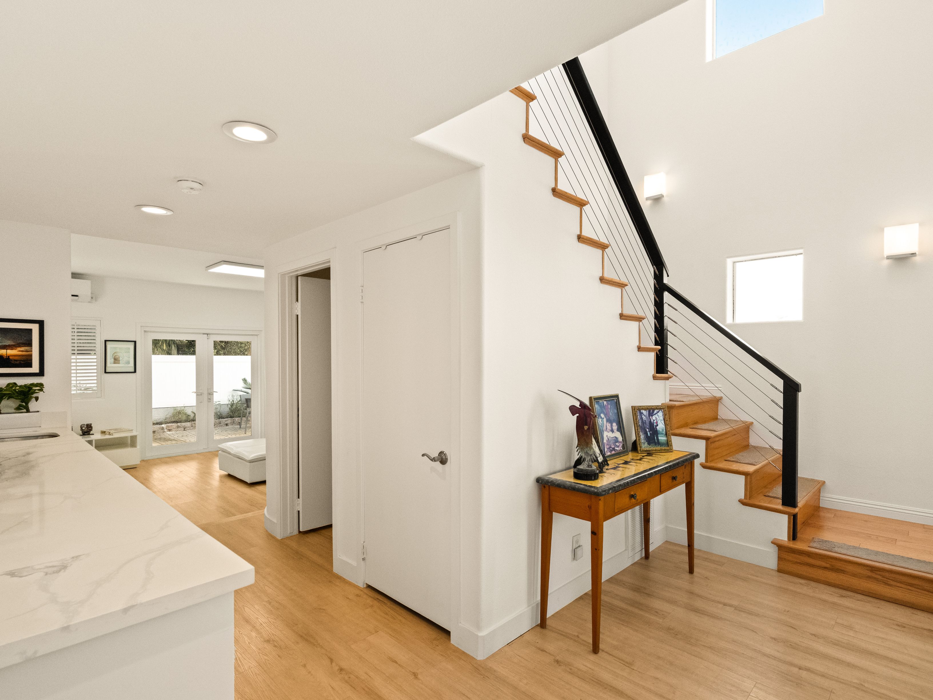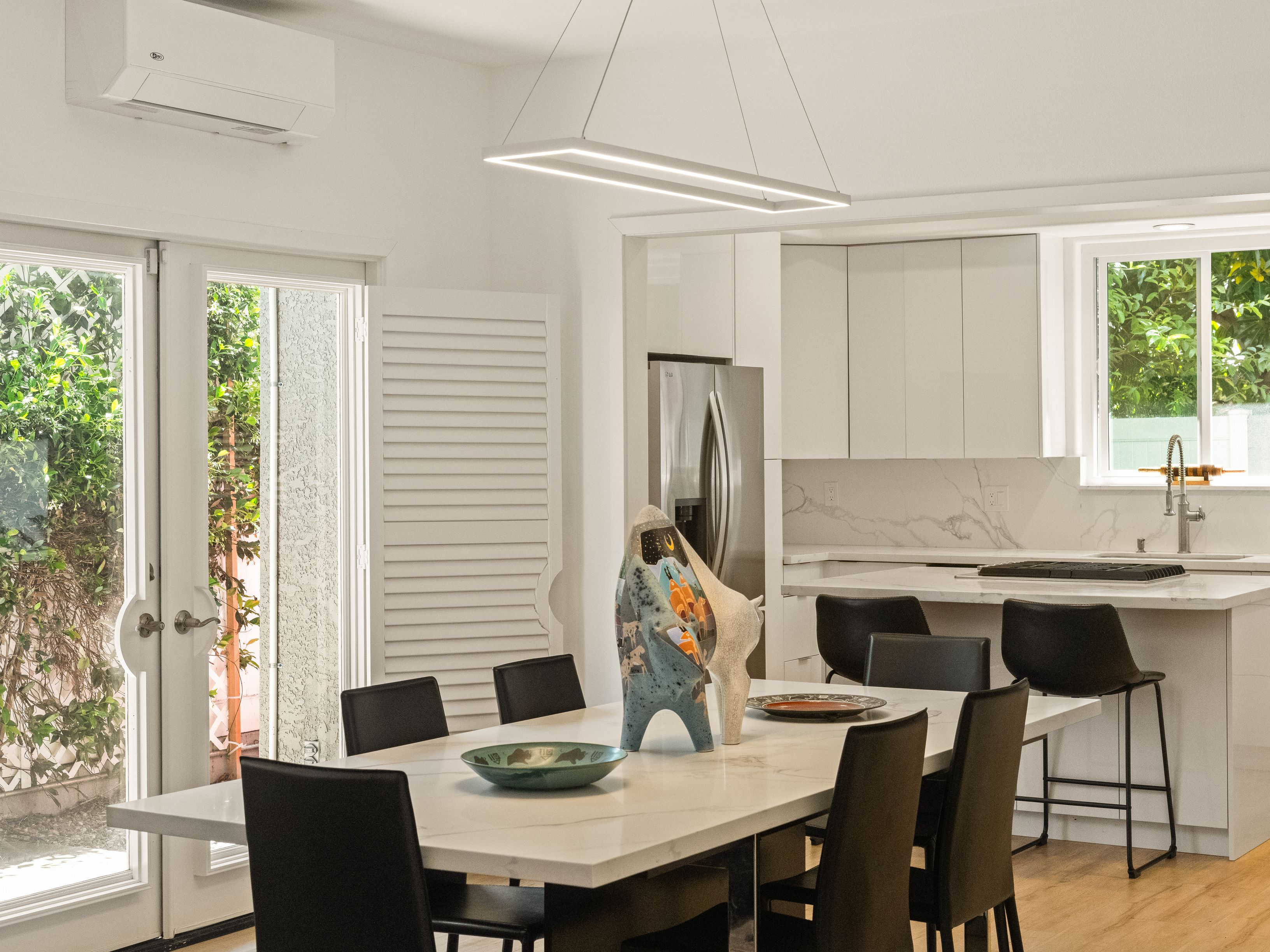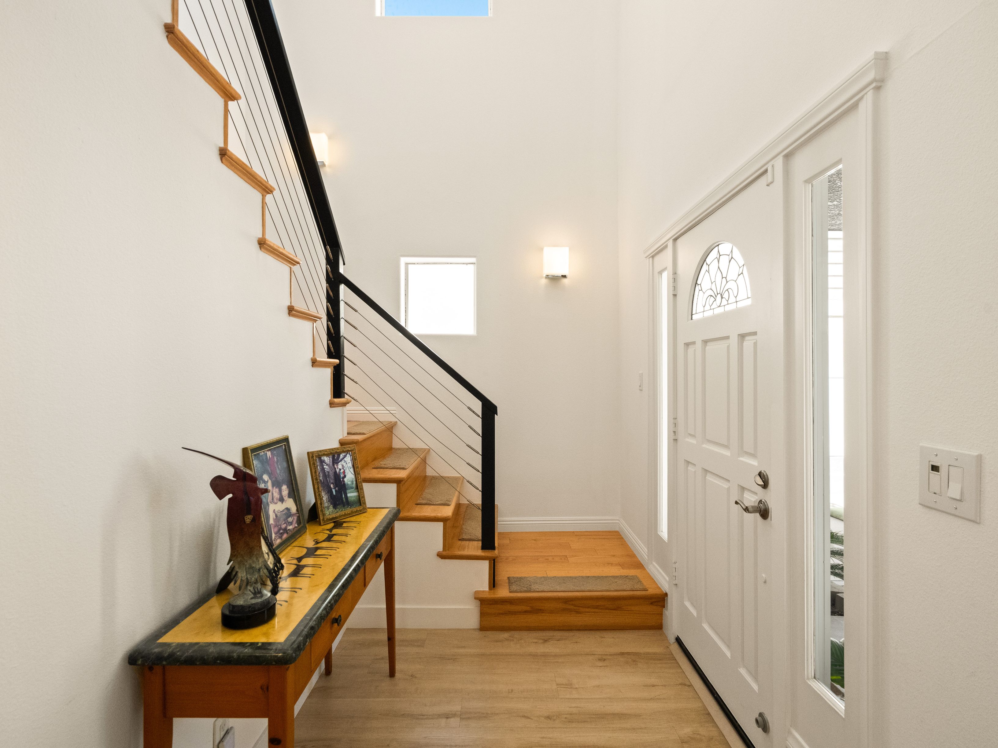 Large spacious rooms, modern upgrades, clean lines, and great light characterize this special townhome in North Redondo. The 2-story formal entry is appointed with a modern railing and large walls perfect for artwork. A formal living room with fireplace, and a family room, offer two very usable living spaces as they both conveniently open to the hub of the home: the kitchen. This sleek, modern kitchen was redone three years ago along with numerous other features. It's designed for those who enjoy to cook and entertain. A large island hosts a gas range with a down-draft exhaust which efficiently vents to the exterior. There's an electric wall oven, dishwasher, ample cabinetry, and quartz counters. A peninsula offers additional bar seating. The dining room has plenty of space for a large dining table for big gatherings; no elbows bumping here. French doors from both the dining area and family room lead to the lush backyard. A patio, grassy area, and foliage create a lush, private backyard oasis. Upstairs are three generously sized bedrooms. The primary suite is located in the back of the home with a large, private balcony that overlooks the backyard. The primary bathroom is light and bright just like the rest of the house. There's a frameless shower, a deep, jetted soaking tub, and large vanity with two sinks and ample cabinetry. Another large balcony is located in the front of the house. A full bathroom in the upstairs hall serves the second and third bedrooms. And a half bath is located in the downstairs hall. The attached garage offers an epoxy floor, 220V, and storage, and it represents the only shared wall with the front unit. Additional features include luxury laminate flooring downstairs, engineered wood flooring upstairs, and upstairs laundry. New A/C & Heat mini-split system runs on a heat pump; control temperature of each room individually for more efficient use. Built-in cabinetry runs the length of the downstairs hallway. Located on a quiet one-way street with ample parking. There is also a shared guest parking spot on-site. Redondo Beach school district. Easy access to the 405. Just over two miles to the Hermosa Beach Pier and beach. Close to retail shopping on 190th St and Artesia Blvd.