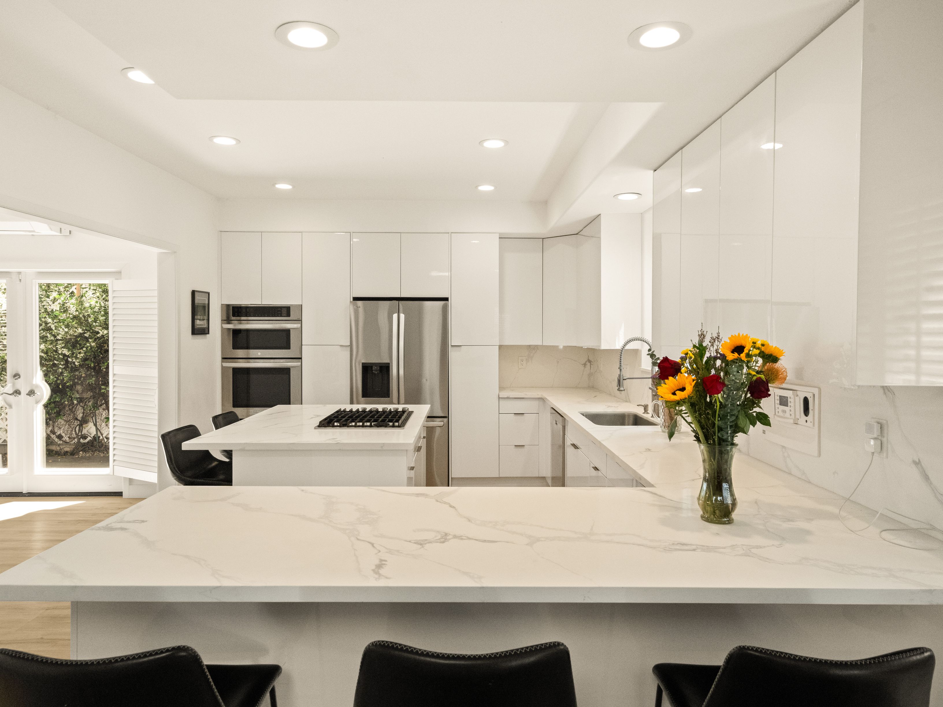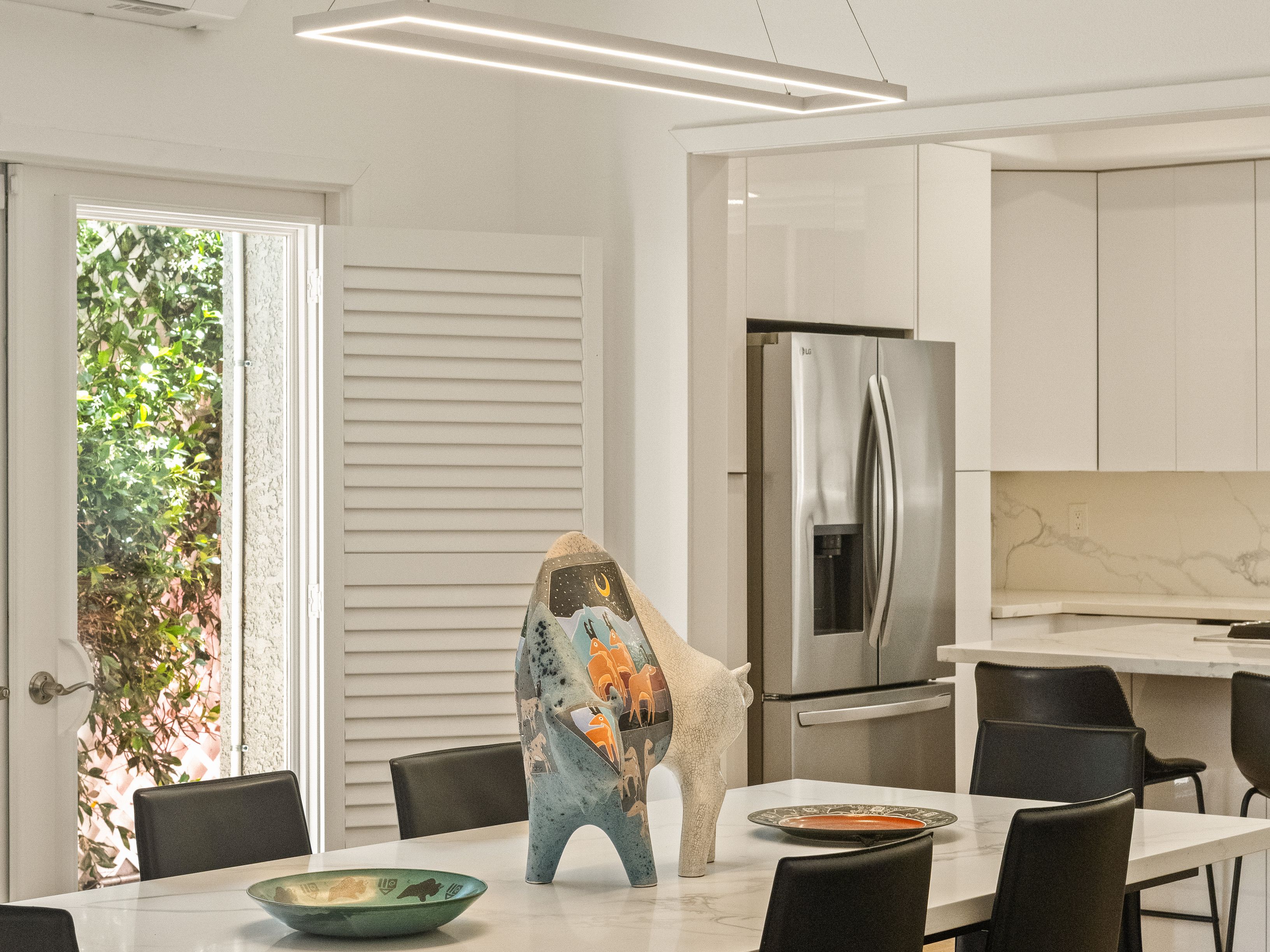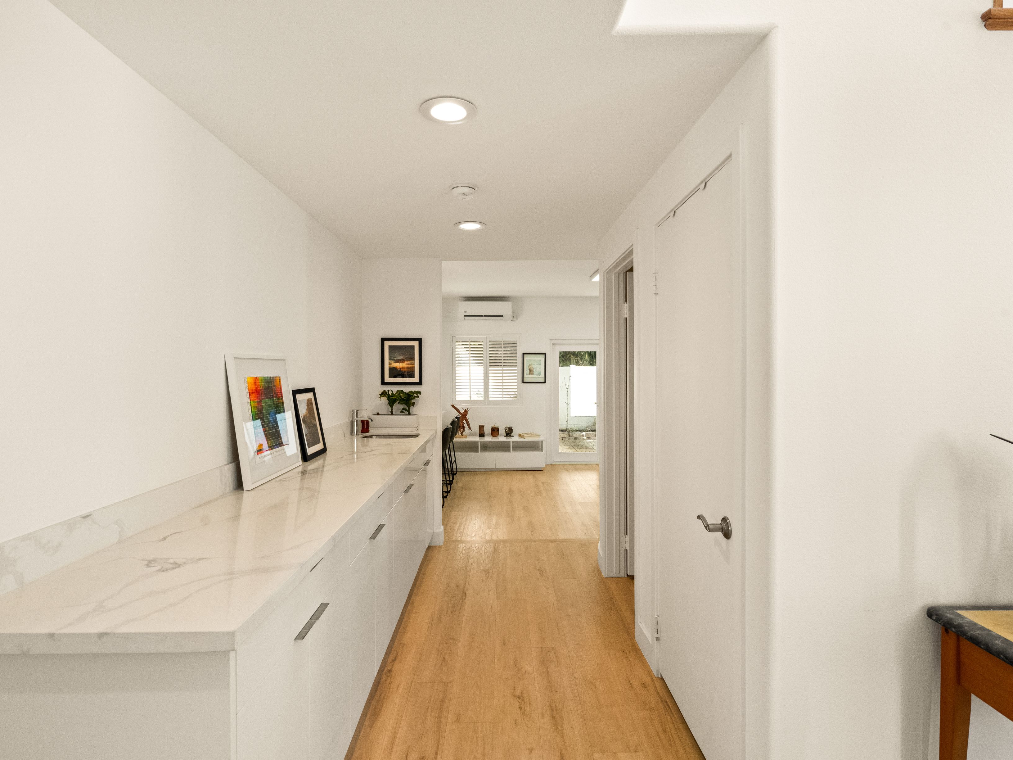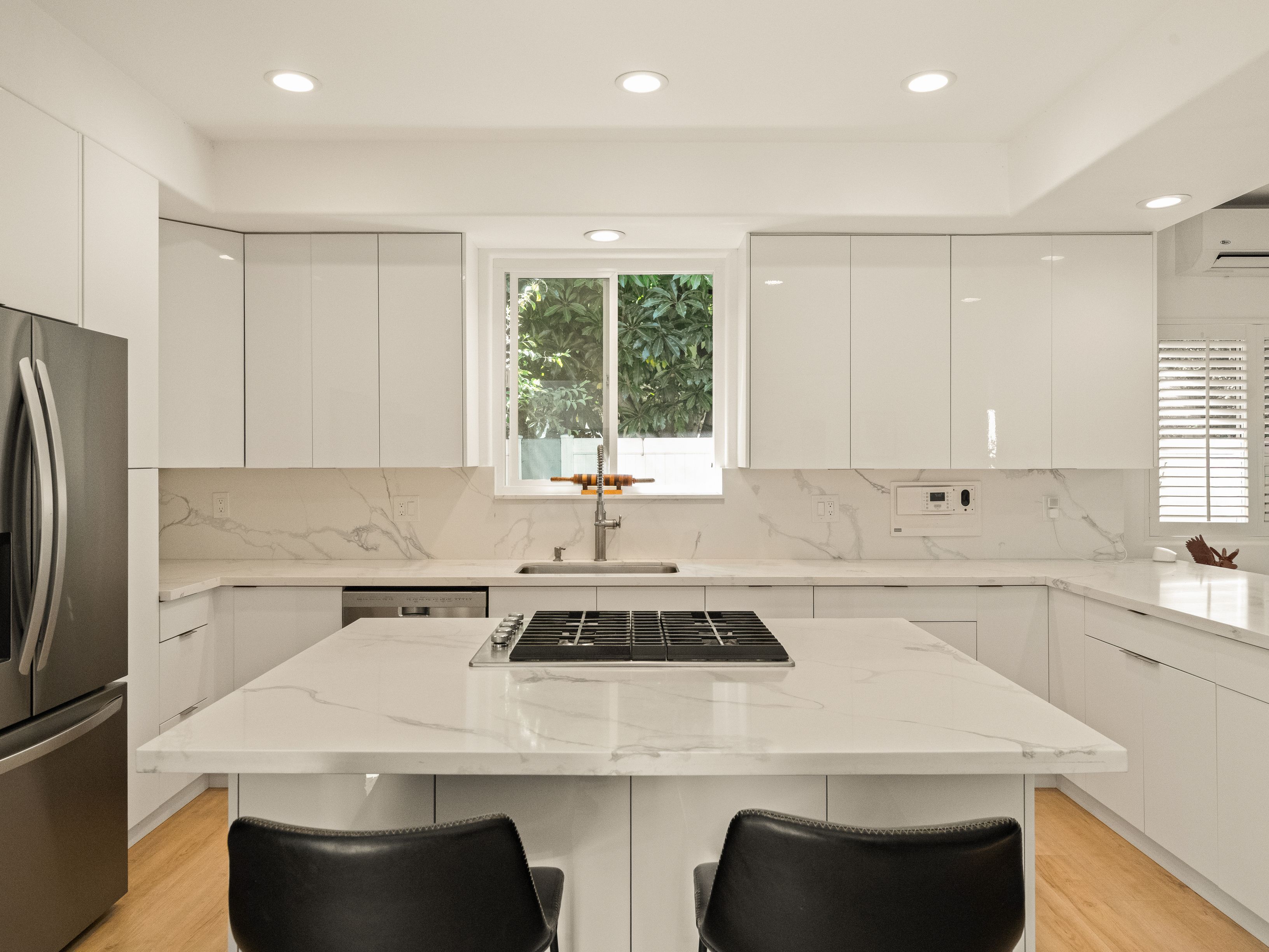 Large spacious rooms, modern upgrades, clean lines, and great light characterize this special townhome in North Redondo. The 2-story formal entry is appointed with a modern railing and large walls perfect for artwork. A formal living room with fireplace, and a family room, offer two very usable living spaces as they both conveniently open to the hub of the home: the kitchen. This sleek, modern kitchen was redone three years ago along with numerous other features. It's designed for those who enjoy to cook and entertain. A large island hosts a gas range with a down-draft exhaust which efficiently vents to the exterior. There's an electric wall oven, dishwasher, ample cabinetry, and quartz counters. A peninsula offers additional bar seating. The dining room has plenty of space for a large dining table for big gatherings; no elbows bumping here. French doors from both the dining area and family room lead to the lush backyard. A patio, grassy area, and foliage create a lush, private backyard oasis. Upstairs are three generously sized bedrooms. The primary suite is located in the back of the home with a large, private balcony that overlooks the backyard. The primary bathroom is light and bright just like the rest of the house. There's a frameless shower, a deep, jetted soaking tub, and large vanity with two sinks and ample cabinetry. Another large balcony is located in the front of the house. A full bathroom in the upstairs hall serves the second and third bedrooms. And a half bath is located in the downstairs hall. The attached garage offers an epoxy floor, 220V, and storage, and it represents the only shared wall with the front unit. Additional features include luxury laminate flooring downstairs, engineered wood flooring upstairs, and upstairs laundry. New A/C & Heat mini-split system runs on a heat pump; control temperature of each room individually for more efficient use. Built-in cabinetry runs the length of the downstairs hallway. Located on a quiet one-way street with ample parking. There is also a shared guest parking spot on-site. Redondo Beach school district. Easy access to the 405. Just over two miles to the Hermosa Beach Pier and beach. Close to retail shopping on 190th St and Artesia Blvd.