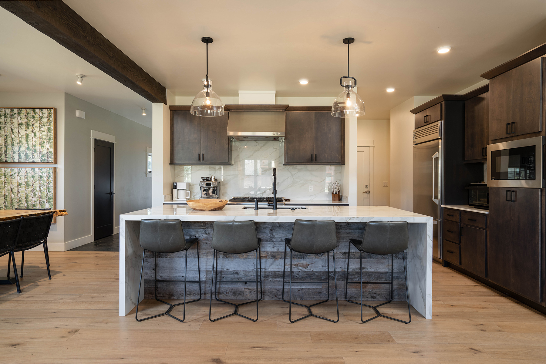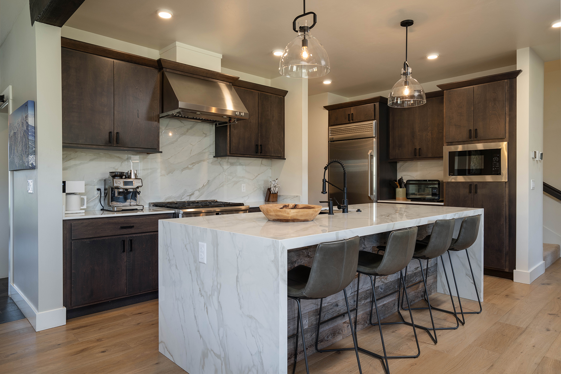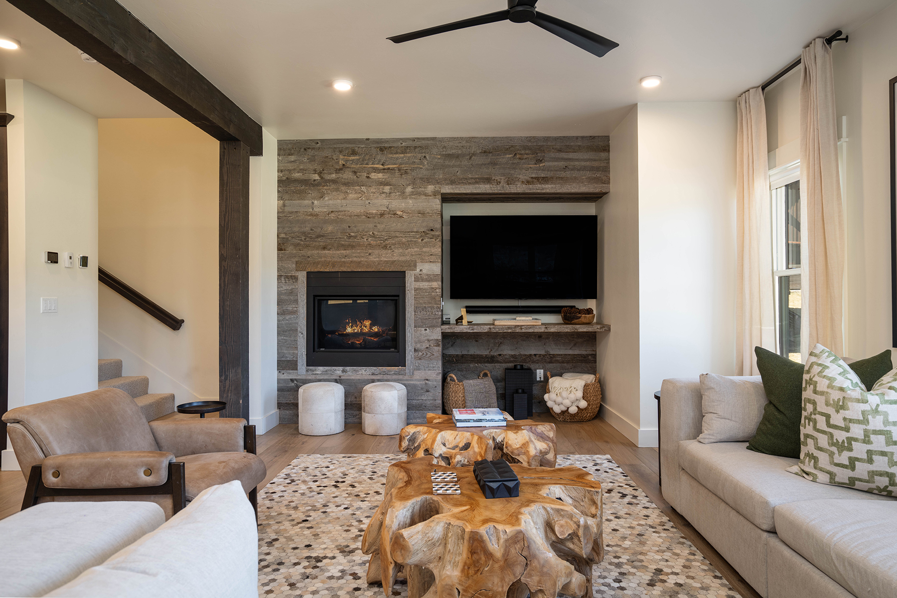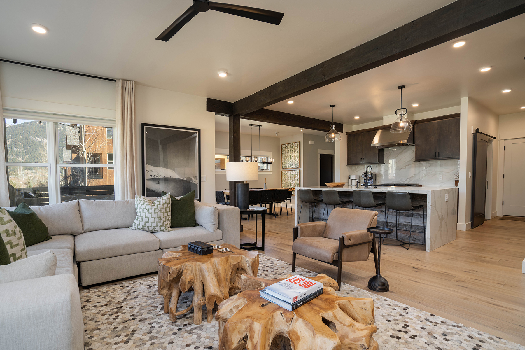 The lower level is where the fun really begins. An expansive family room encompasses a media lounge, a conversational seating area, and a beautifully appointed bar, creating a space that transitions effortlessly from relaxed evenings in to lively après gatherings. A bunk room and full bath round out the space, making it ideal for kids, overflow guests, or your dedicated ski crew.