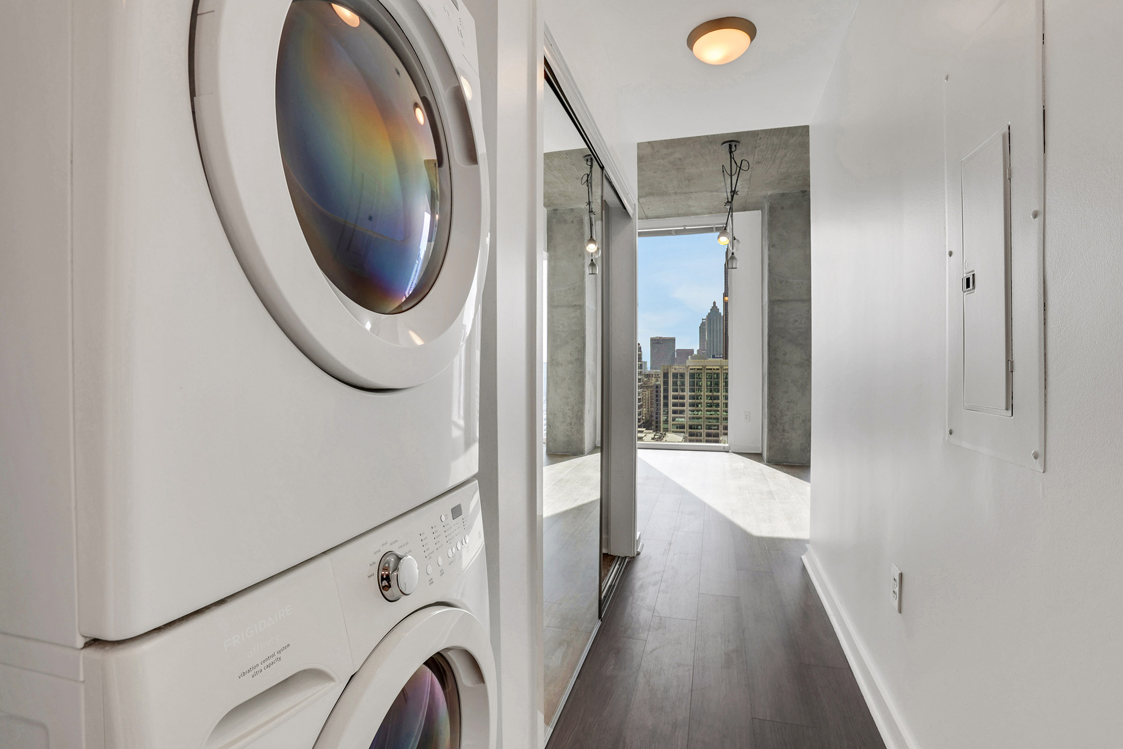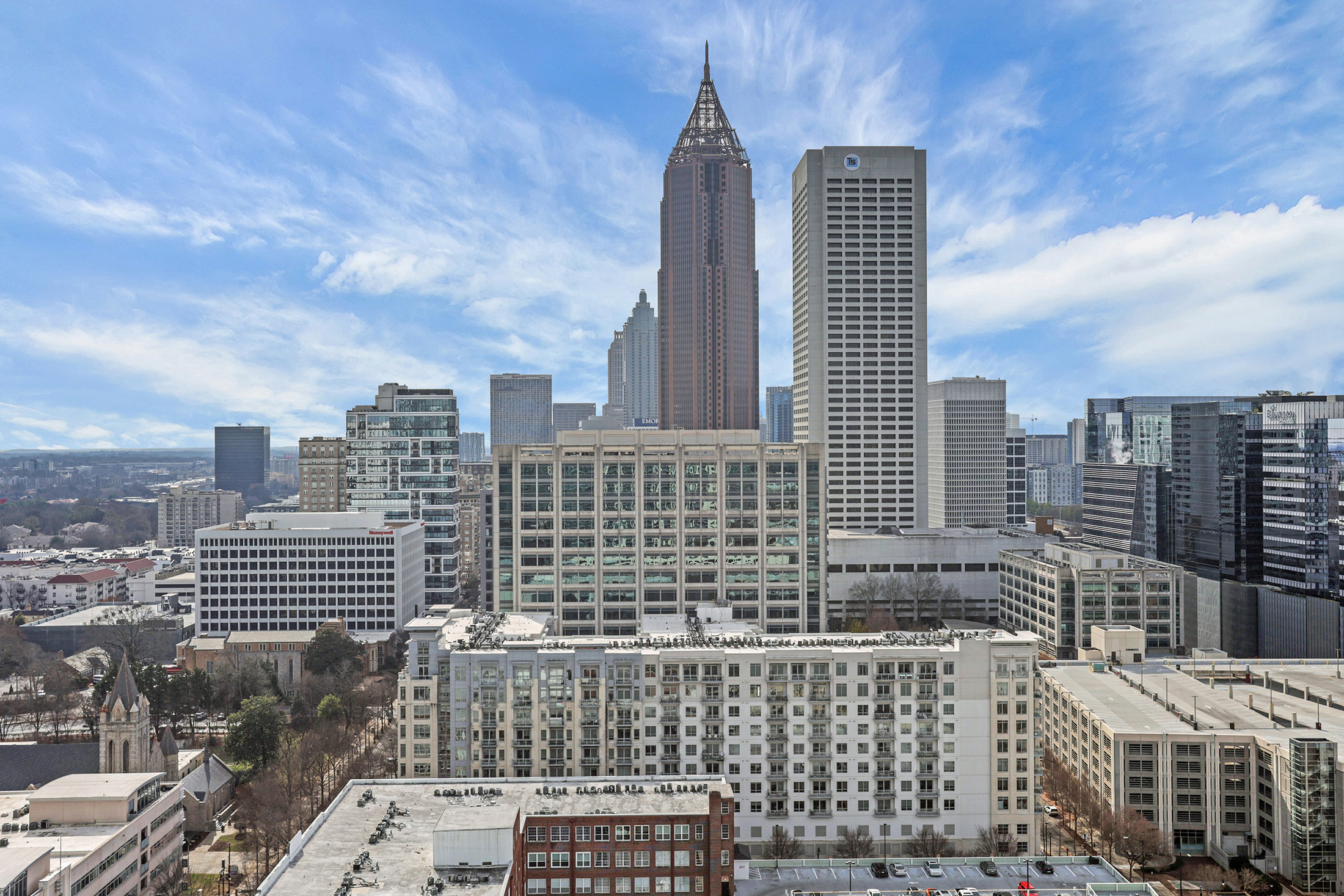 Experience elevated city living at Spire Midtown in this move-in ready 23rd-floor residence featuring 10' ceilings, fresh paint, and updated flooring throughout. Enjoy beautiful southern skyline views through floor-to-ceiling windows and a walk-out balcony, plus one of Spire's most desirable open-concept floor plans ideal for everyday living and entertaining. Amenities include high-speed internet, resort-style pool, fitness and yoga studios, clubroom, 24-hour security, and gated parking with one assigned space. Unbeatable Midtown location near Piedmont Park, top restaurants, shopping, grocery, MARTA, and the Atlanta BeltLine this is city living at its best!
