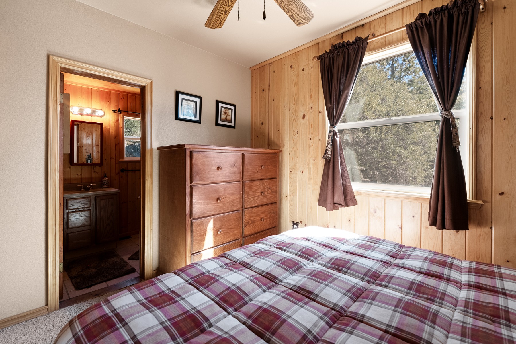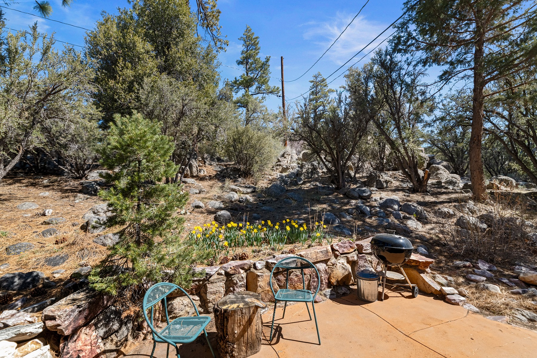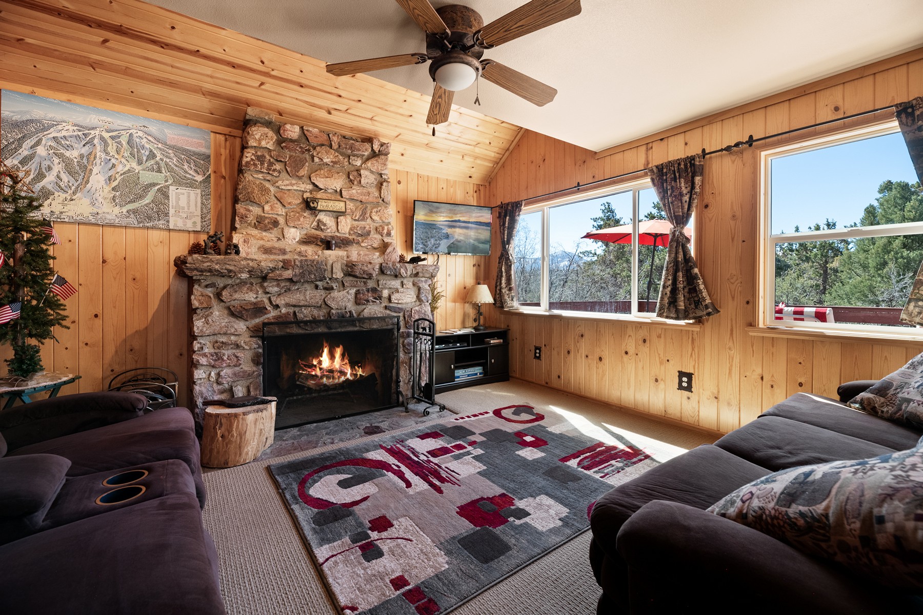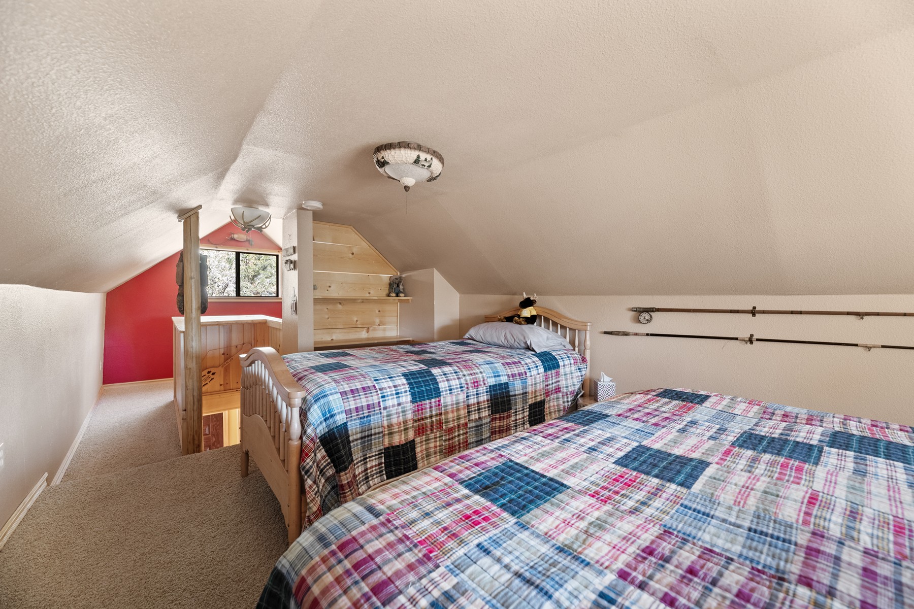 Charming 1920s Big Bear cabin in the desirable Lakeview Tract, set in a quiet forest environment with widely spaced cabins, gated private road, and year-round access. Just a 5-minute walk to Big Bear Lake, the Alpine Pedal Path, and close to the East Boat Ramp for boating, kayaking, paddle boarding, and 4th of July fireworks viewing. Woodland Trail access and Interlaken shopping and dining are also nearby. The cabin blends its original exterior character with modernized, comfortable interior. Recent improvements include newer comp-shingle roofing and underlayment, newer decking, and newer siding and paint on the south-facing exterior. Inside features include a massive authentic native rock fireplace, granite countertops, cherrywood kitchen cabinets, and an open living/dining area with expansive south-facing windows framing views of Snow Summit and Bear Mountain. The main level offers single-story living with the primary bedroom and bath on the lower level. The upper loft provides space for two beds plus a home-office alcove. Outdoor spaces include a sunny south-facing deck with ski-slope views and a cool, shaded rear patio with stone walls and private forest outlooks. Additional amenities include Spectrum high-speed internet availability, ample parking, and a lockable walk-out basement with workbench and storage for kayaks and gear. City water is a rare bonus and is approx. $350/year. A rare opportunity to own a well-maintained, updated historic cabin in one of Big Bear’s most peaceful and walkable forest settings. Comes furnished and ready to enjoy. May not be used as a Short-Term Rental but neither can the surrounding cabins, keeping the peace and quiet that most Recreation Residence owners enjoy the most. At time of publication it is the best buy of the Recreation Residence cabins at under $200,000. Don't wait. See it this weekend.