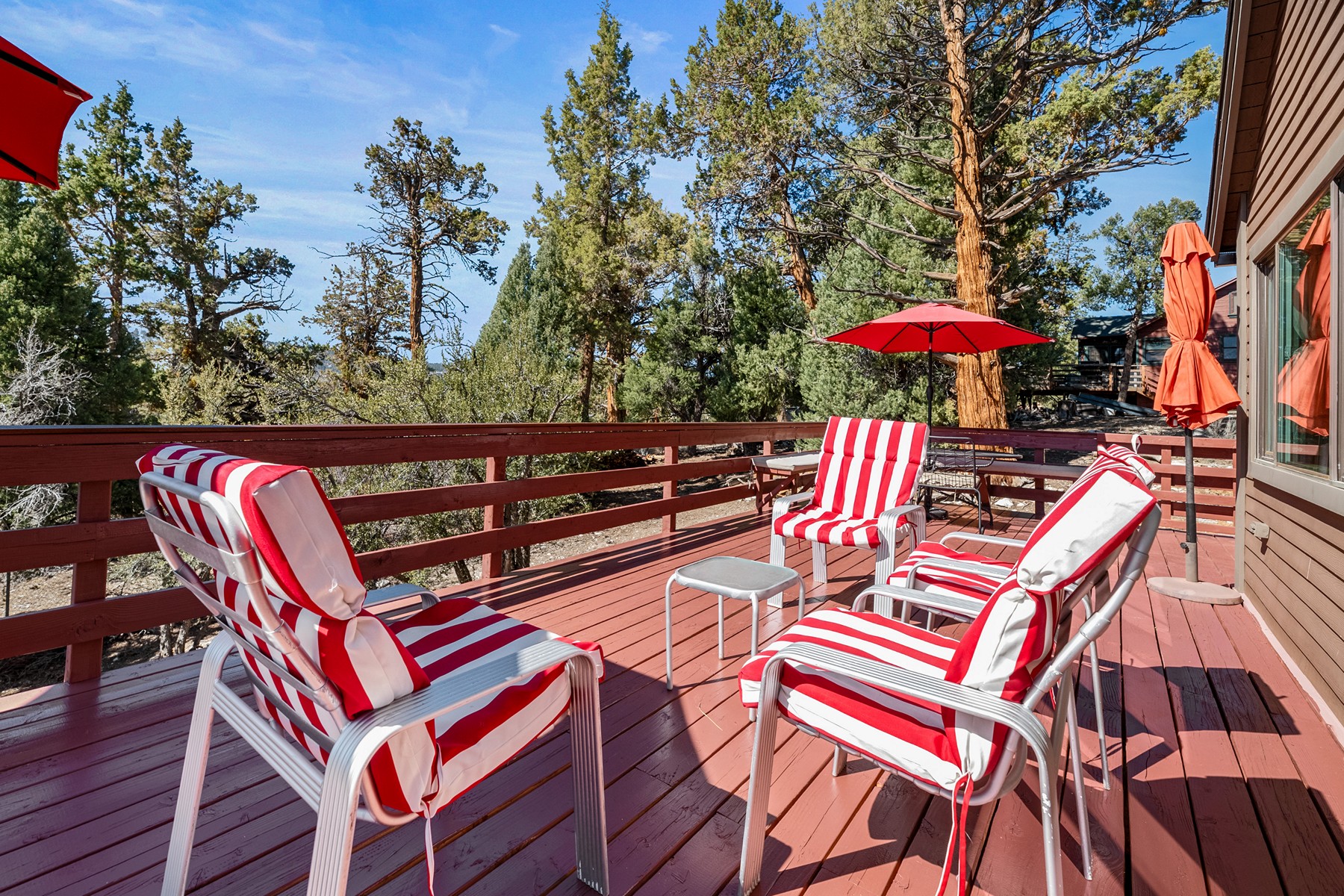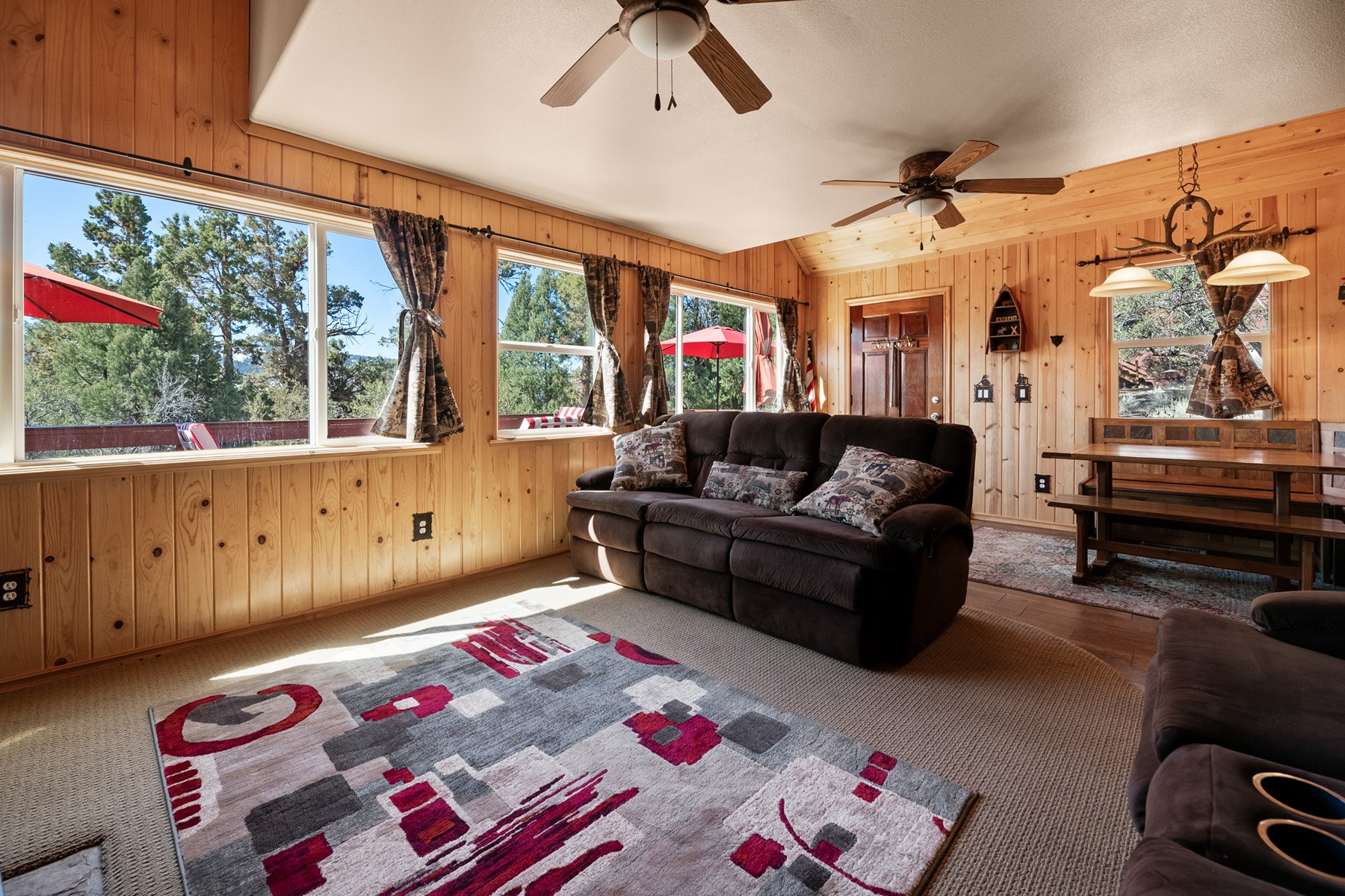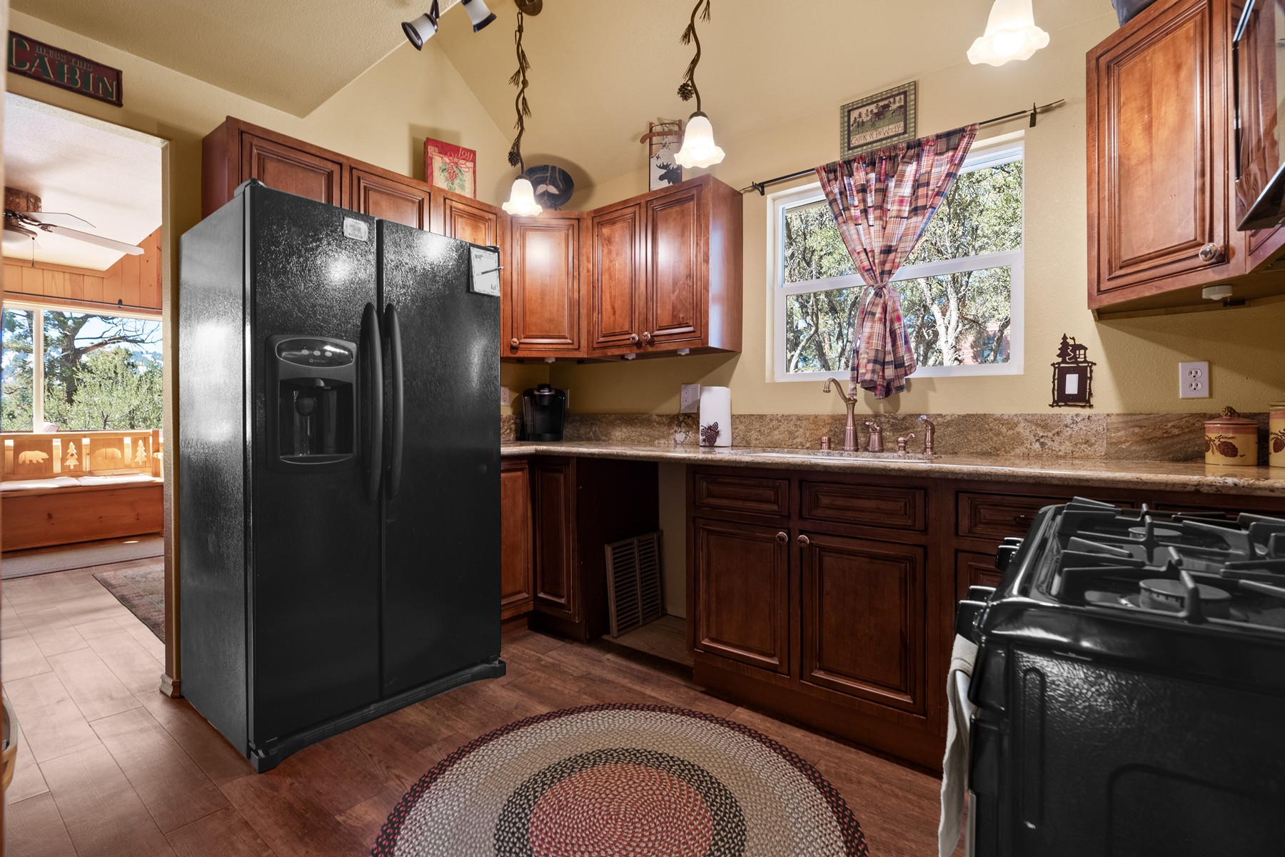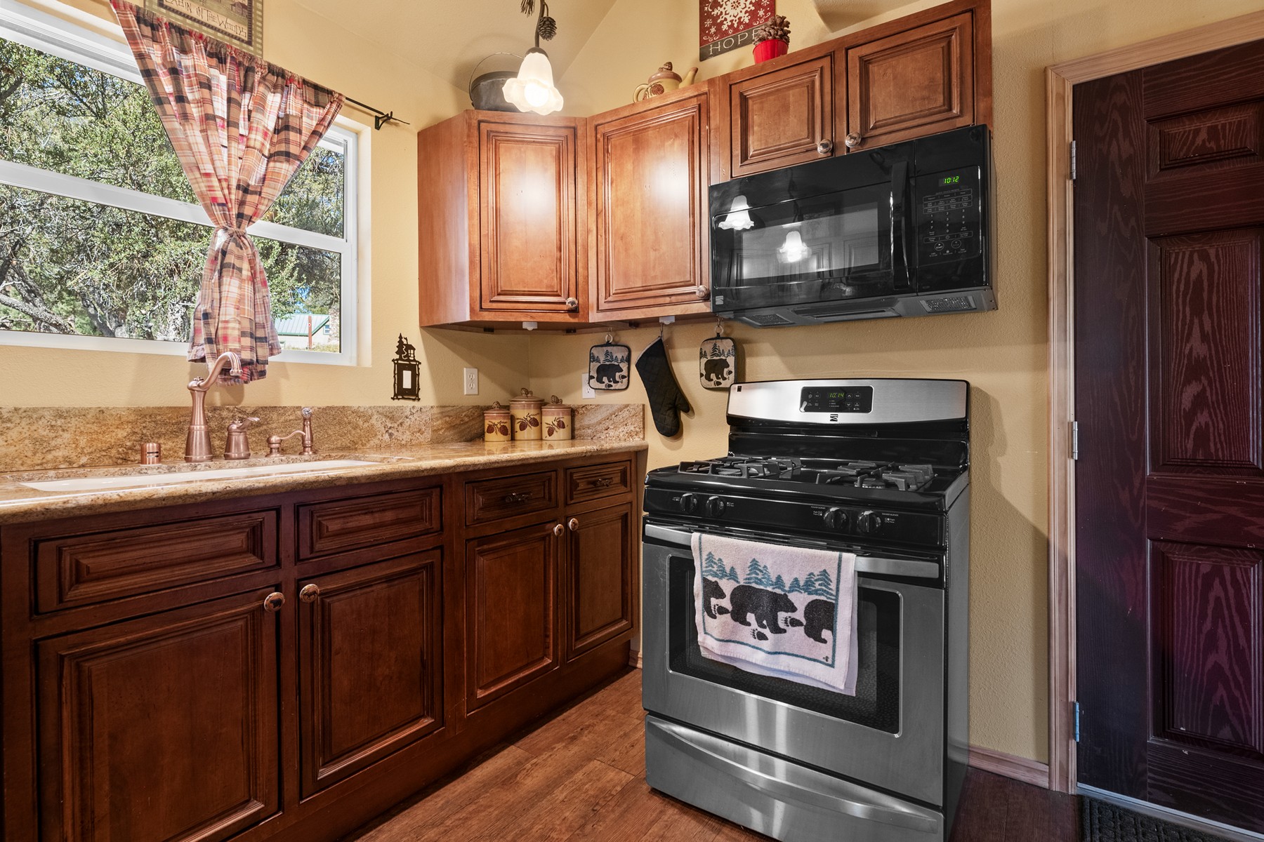 Charming 1920s Big Bear cabin in the desirable Lakeview Tract, set in a quiet forest environment with widely spaced cabins, gated private road, and year-round access. Just a 5-minute walk to Big Bear Lake, the Alpine Pedal Path, and close to the East Boat Ramp for boating, kayaking, paddle boarding, and 4th of July fireworks viewing. Woodland Trail access and Interlaken shopping and dining are also nearby. The cabin blends its original exterior character with modernized, comfortable interior. Recent improvements include newer comp-shingle roofing and underlayment, newer decking, and newer siding and paint on the south-facing exterior. Inside features include a massive authentic native rock fireplace, granite countertops, cherrywood kitchen cabinets, and an open living/dining area with expansive south-facing windows framing views of Snow Summit and Bear Mountain. The main level offers single-story living with the primary bedroom and bath on the lower level. The upper loft provides space for two beds plus a home-office alcove. Outdoor spaces include a sunny south-facing deck with ski-slope views and a cool, shaded rear patio with stone walls and private forest outlooks. Additional amenities include Spectrum high-speed internet availability, ample parking, and a lockable walk-out basement with workbench and storage for kayaks and gear. City water is a rare bonus and is approx. $350/year. A rare opportunity to own a well-maintained, updated historic cabin in one of Big Bear’s most peaceful and walkable forest settings. Comes furnished and ready to enjoy. May not be used as a Short-Term Rental but neither can the surrounding cabins, keeping the peace and quiet that most Recreation Residence owners enjoy the most. At time of publication it is the best buy of the Recreation Residence cabins at under $200,000. Don't wait. See it this weekend.
