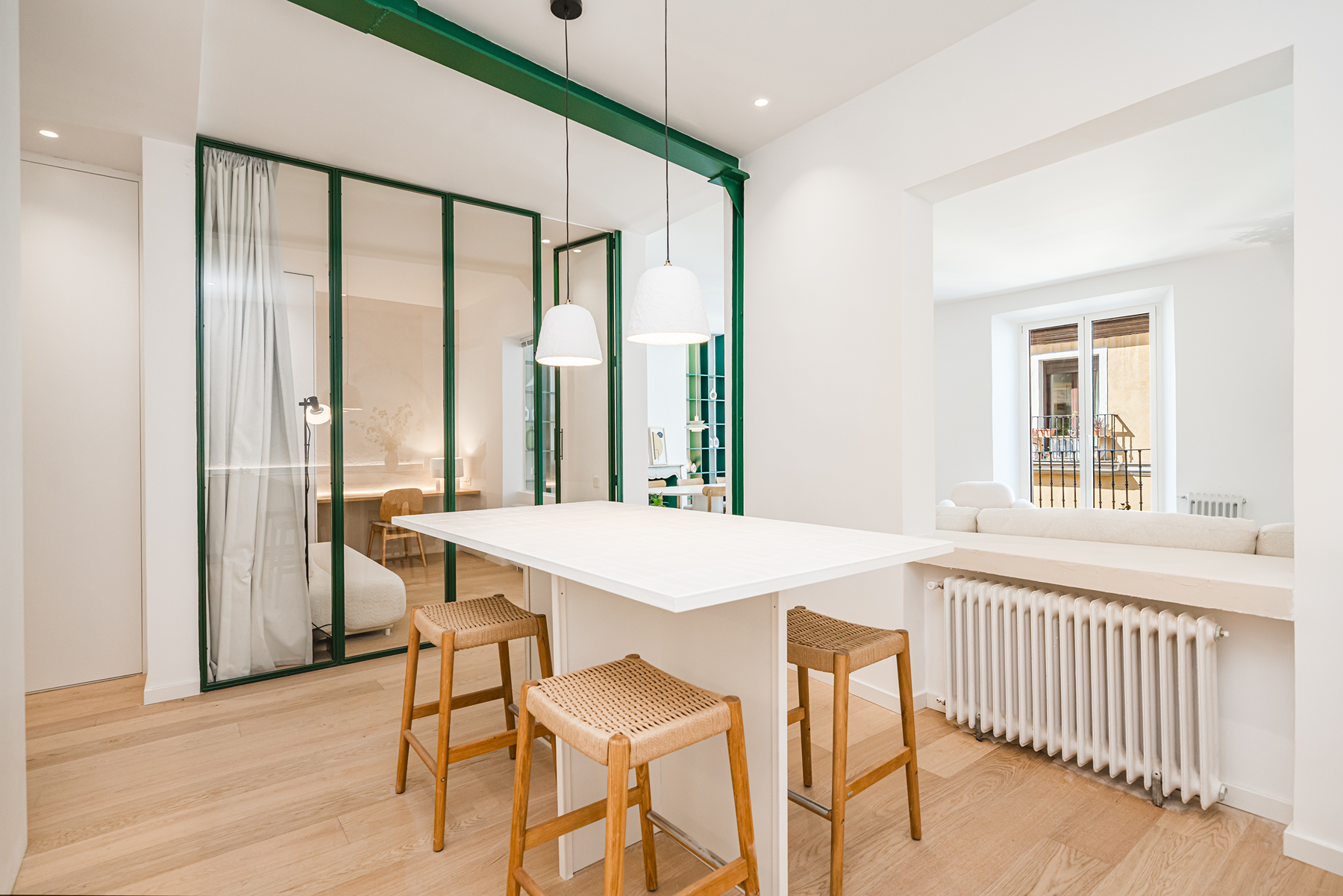 Located in the emblematic Barrio de las Letras, in the heart of Madrid, this exclusive, newly refurbished, and furnished flat is situated on the third floor of a classic building representative of the architectural style of the area, with an elevator and concierge service.The property combines historical character with high-quality contemporary design. The bright and elegant living-dining room features two balconies facing the street, adding charm and connectivity with the urban environment. The fully equipped kitchen is organized around a central island, offering a functional and modern space.The resting area consists of four bedrooms, three of which are doubles with en-suite bathrooms, and a fourth single bedroom that can also be used as an office or versatile space.The comprehensive renovation has been carried out with excellent quality, highlighting the noble wood floors that add warmth and sophistication to the entire property.A unique property, ready to move in, in one of the neighborhoods with the most history, culture, and life in Madrid.