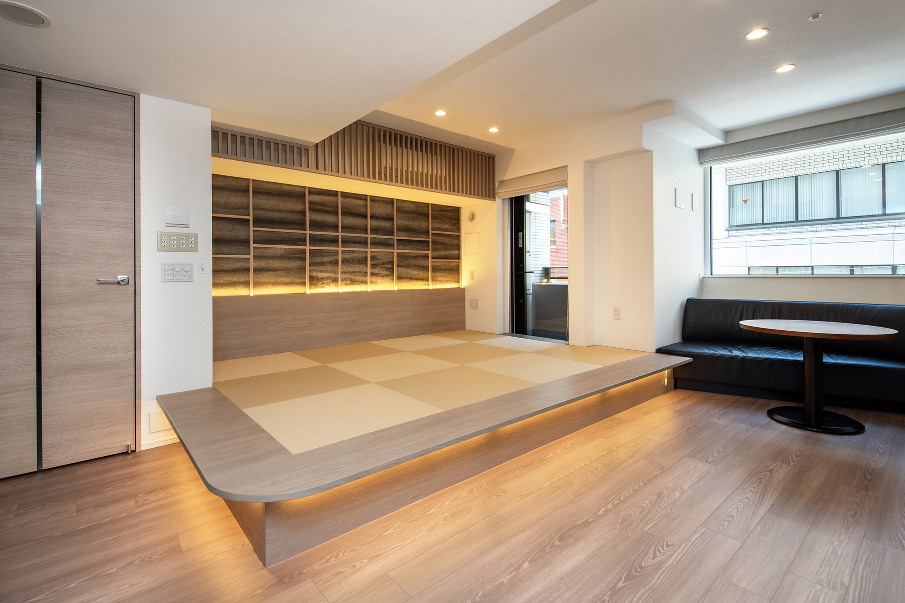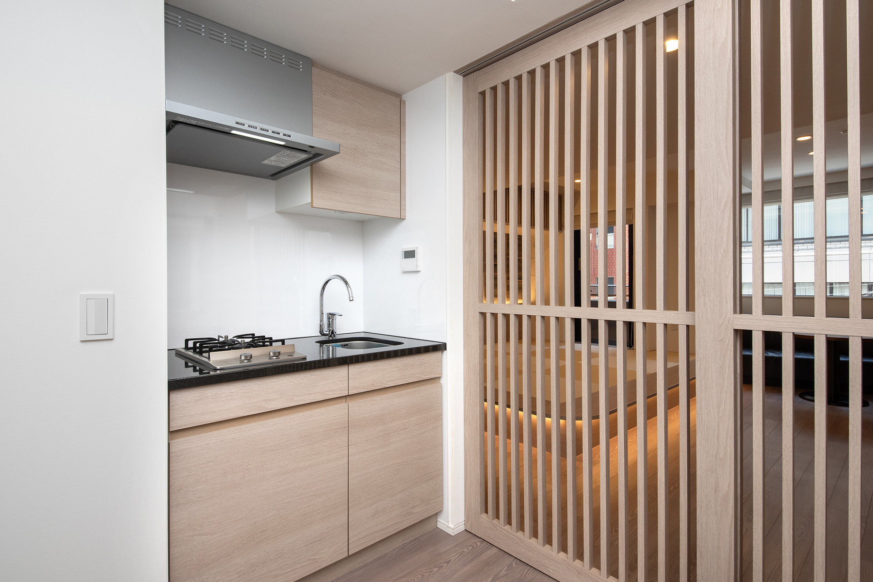 Renovation completed in March 2019. ・Floor plan fully redesigned and reconfigured into an open studio layout ・Kitchen, bathroom, and toilet layout repositioned ・All interior finishes and materials, including flooring, upgraded to high-quality specifications ・Installed dimmable lighting and blackout blinds