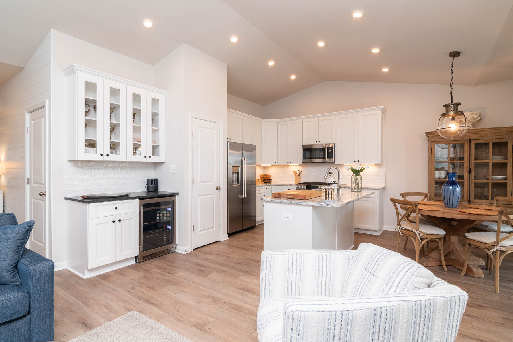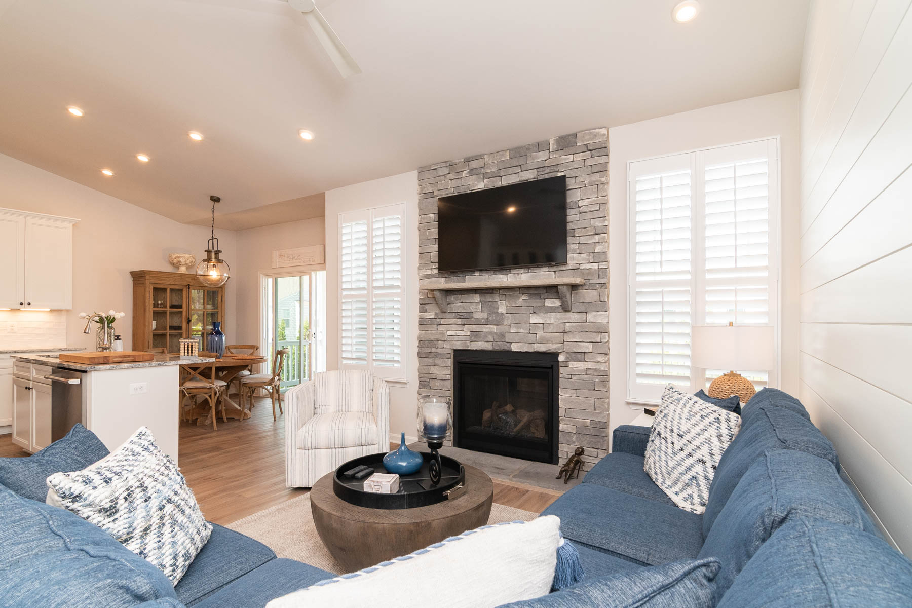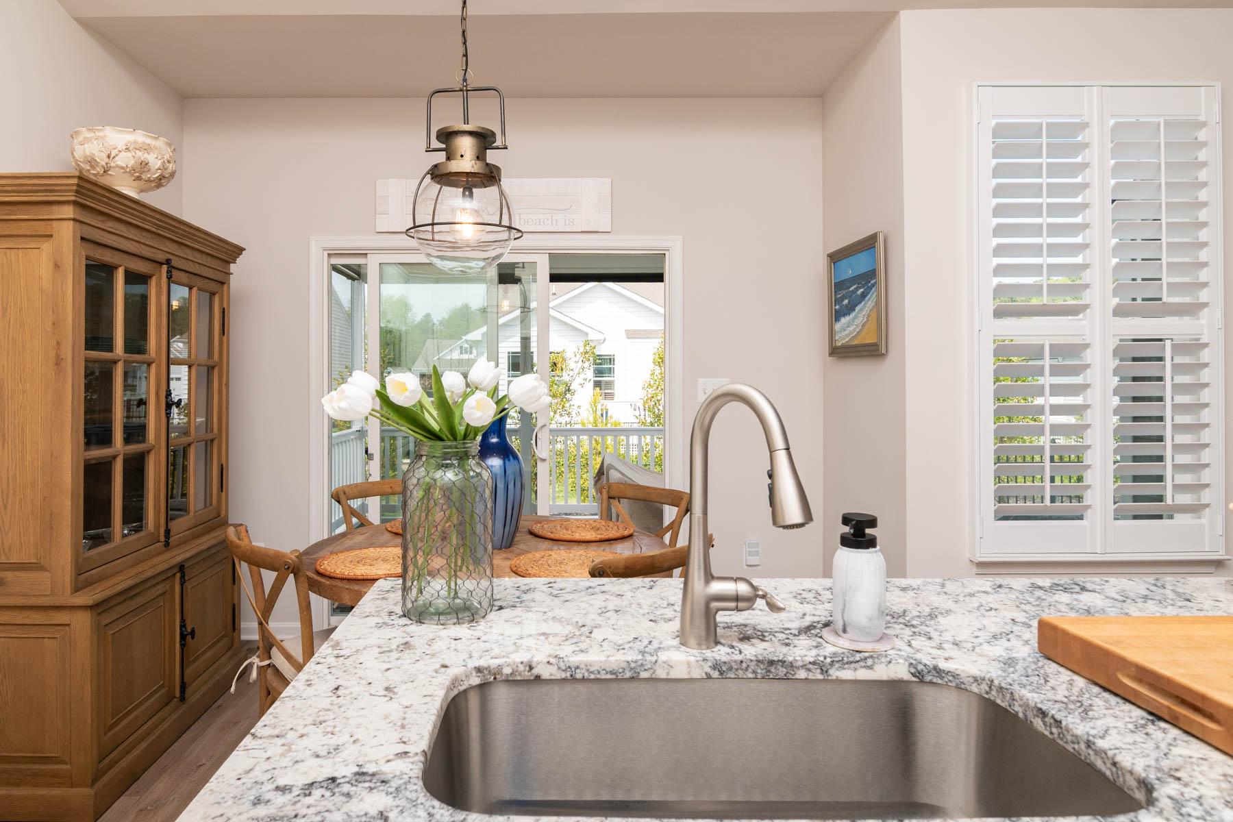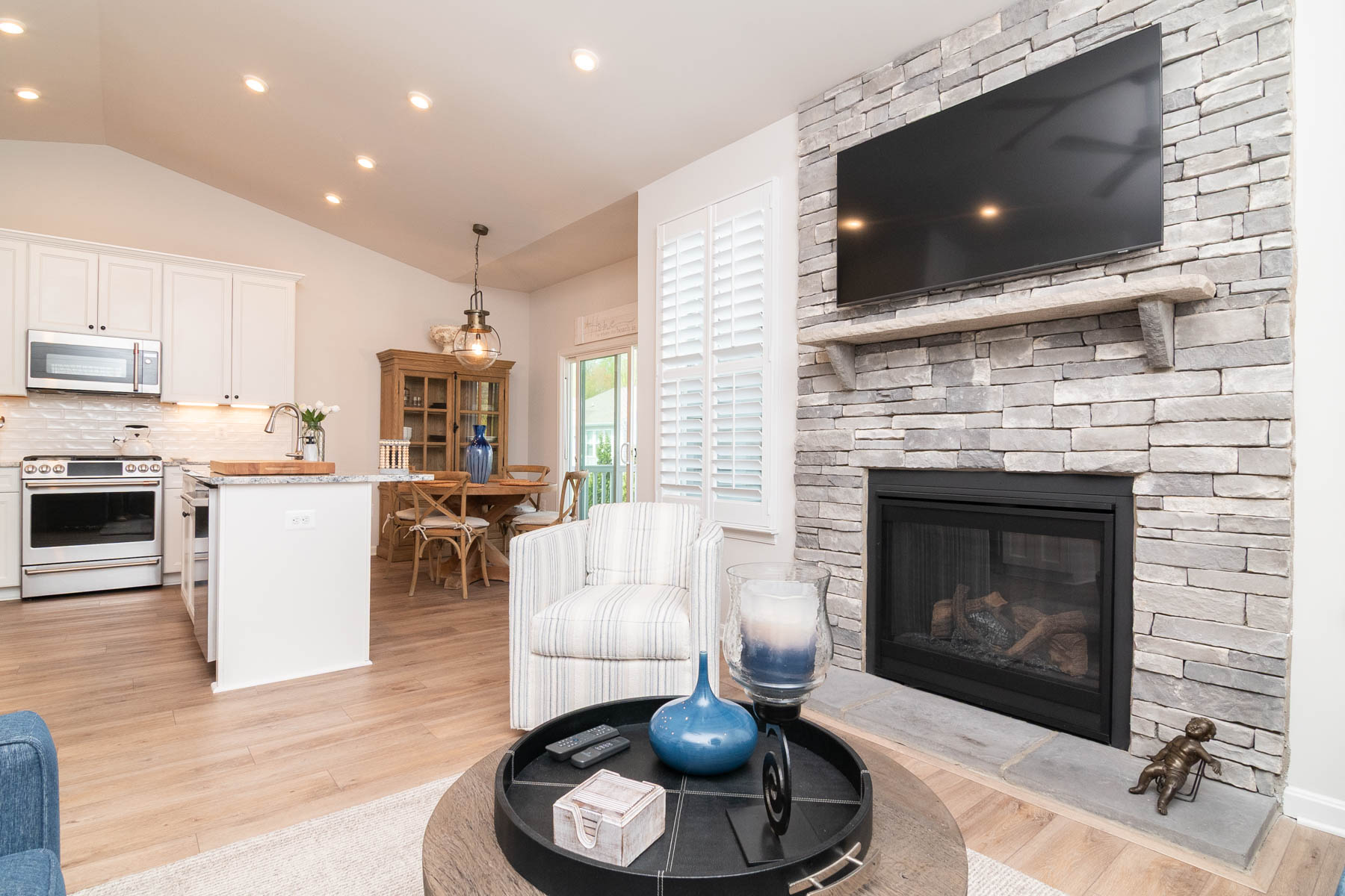 Welcome to refined coastal living in the highly sought-after Villages at Red Mill Pond—perfectly positioned next to the scenic Georgetown-Lewes Bike Trail and just a short drive to the beaches and vibrant shopping of Lewes and Rehoboth Beach. Here, thoughtful upgrades, timeless design, and everyday convenience come together in this beautifully enhanced 3-bedroom, 2-bath home. From the moment you arrive, the charming front elevation, professionally landscaped walkway, and inviting front porch set the tone. Inside, a light-filled, open-concept layout showcases luxury vinyl plank flooring throughout and soaring vaulted ceilings that create an airy, expansive feel. The gourmet kitchen is a true centerpiece, featuring Level 5 cabinetry—the highest grade offered—paired with upgraded granite countertops, crown and shoe molding, and a stylish butler's pantry with beverage center. A premium Café appliance suite completes the space with elevated form and function. The living area exudes warmth and character, highlighted by custom shiplap accents and a striking stone fireplace with an upgraded blower—perfect for cozy evenings. Plantation shutters add timeless elegance throughout. Step outside to your backyard retreat, complete with a screened porch with shades, full fencing, irrigation, privacy trees, and thoughtfully placed stepping stones. A dedicated gas line for your grill makes outdoor entertaining effortless. With upgraded Norman Rockwell siding, elevated finishes throughout, and an unbeatable location for both recreation and relaxation, this home offers the ideal blend of coastal lifestyle and modern luxury.