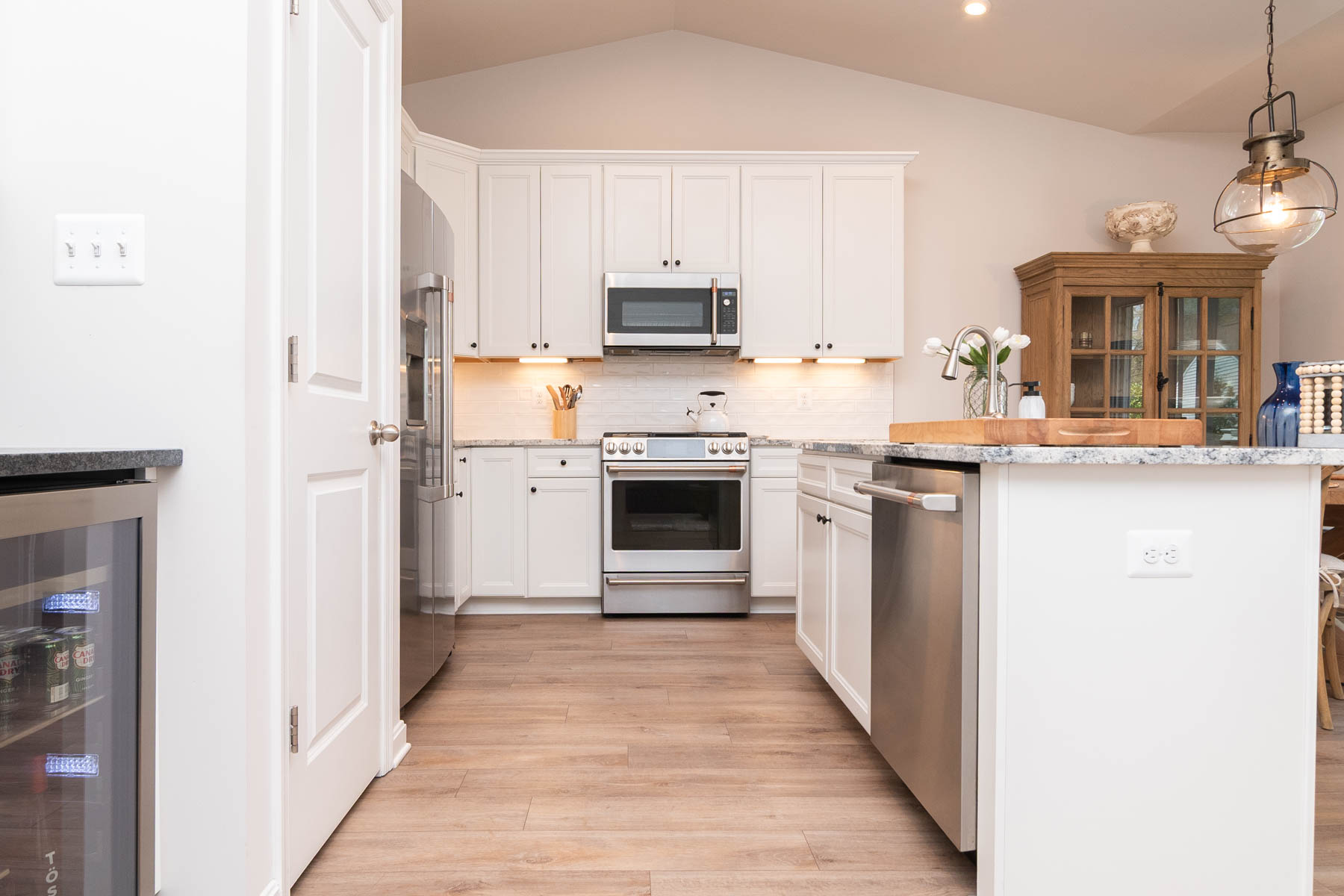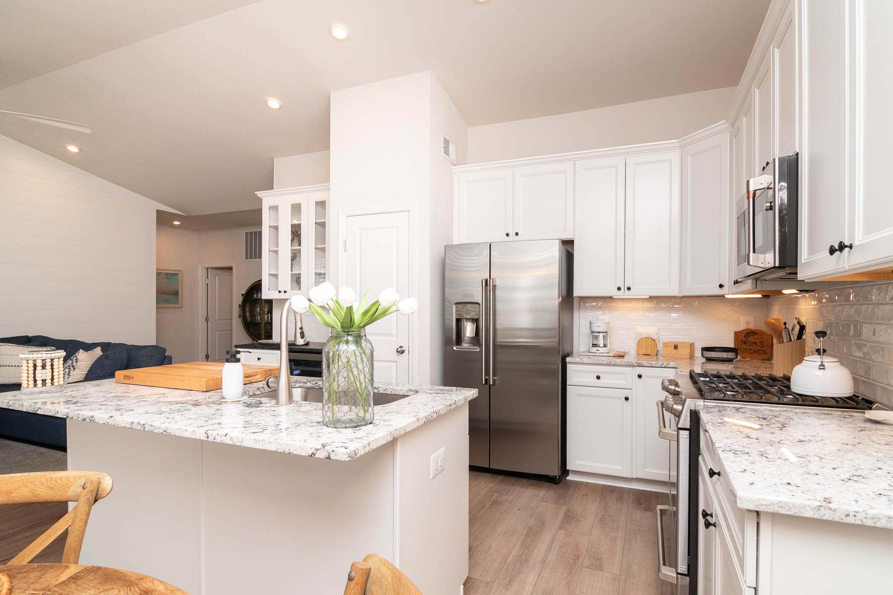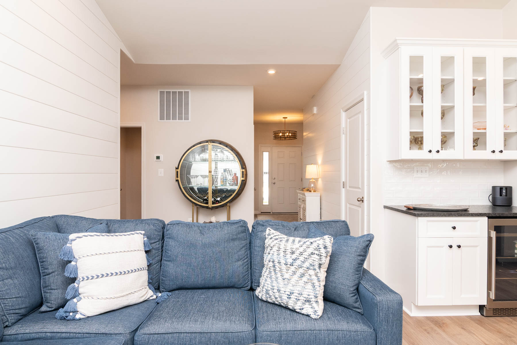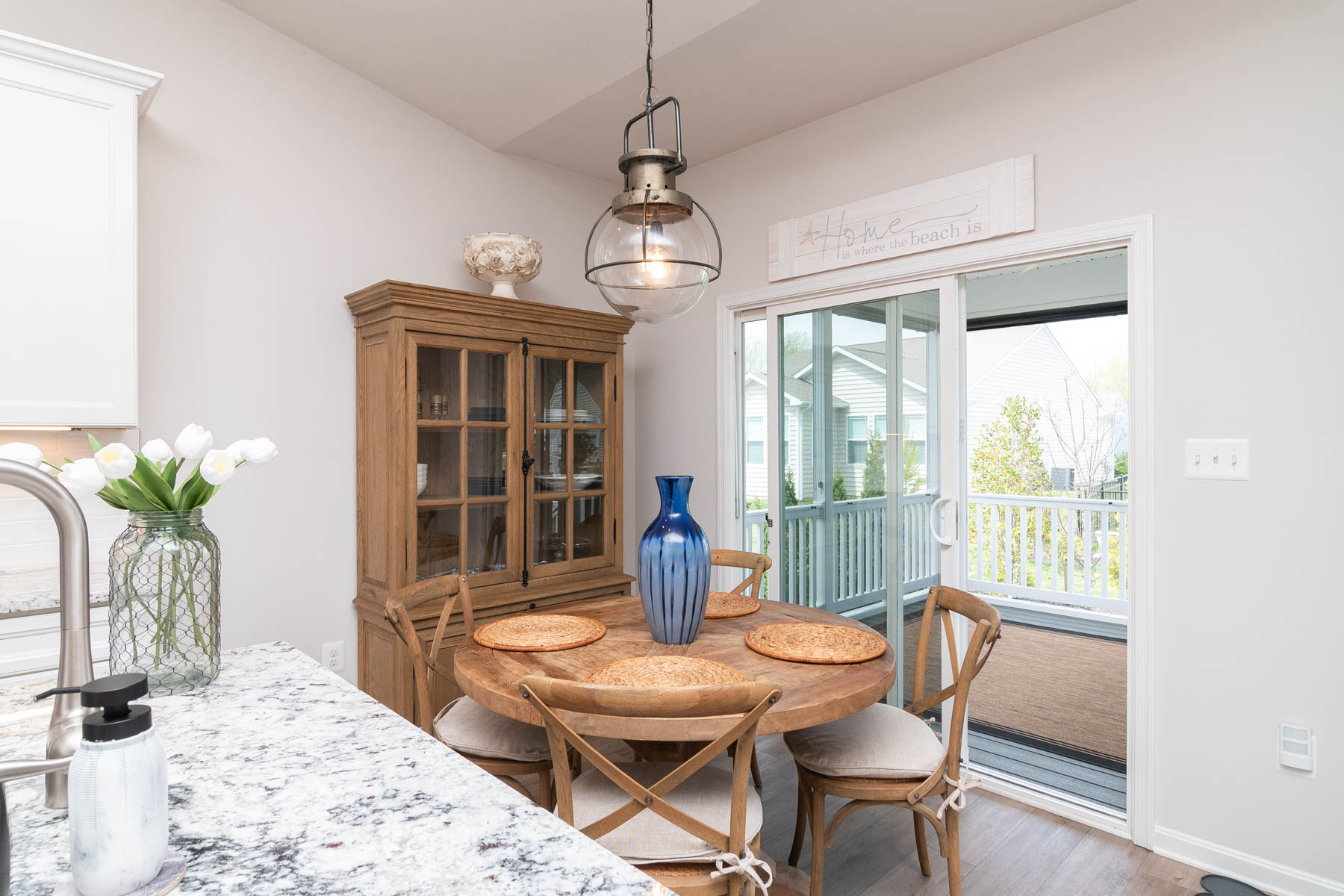 Welcome to refined coastal living in the highly sought-after Villages at Red Mill Pond—perfectly positioned next to the scenic Georgetown-Lewes Bike Trail and just a short drive to the beaches and vibrant shopping of Lewes and Rehoboth Beach. Here, thoughtful upgrades, timeless design, and everyday convenience come together in this beautifully enhanced 3-bedroom, 2-bath home. From the moment you arrive, the charming front elevation, professionally landscaped walkway, and inviting front porch set the tone. Inside, a light-filled, open-concept layout showcases luxury vinyl plank flooring throughout and soaring vaulted ceilings that create an airy, expansive feel. The gourmet kitchen is a true centerpiece, featuring Level 5 cabinetry—the highest grade offered—paired with upgraded granite countertops, crown and shoe molding, and a stylish butler's pantry with beverage center. A premium Café appliance suite completes the space with elevated form and function. The living area exudes warmth and character, highlighted by custom shiplap accents and a striking stone fireplace with an upgraded blower—perfect for cozy evenings. Plantation shutters add timeless elegance throughout. Step outside to your backyard retreat, complete with a screened porch with shades, full fencing, irrigation, privacy trees, and thoughtfully placed stepping stones. A dedicated gas line for your grill makes outdoor entertaining effortless. With upgraded Norman Rockwell siding, elevated finishes throughout, and an unbeatable location for both recreation and relaxation, this home offers the ideal blend of coastal lifestyle and modern luxury.