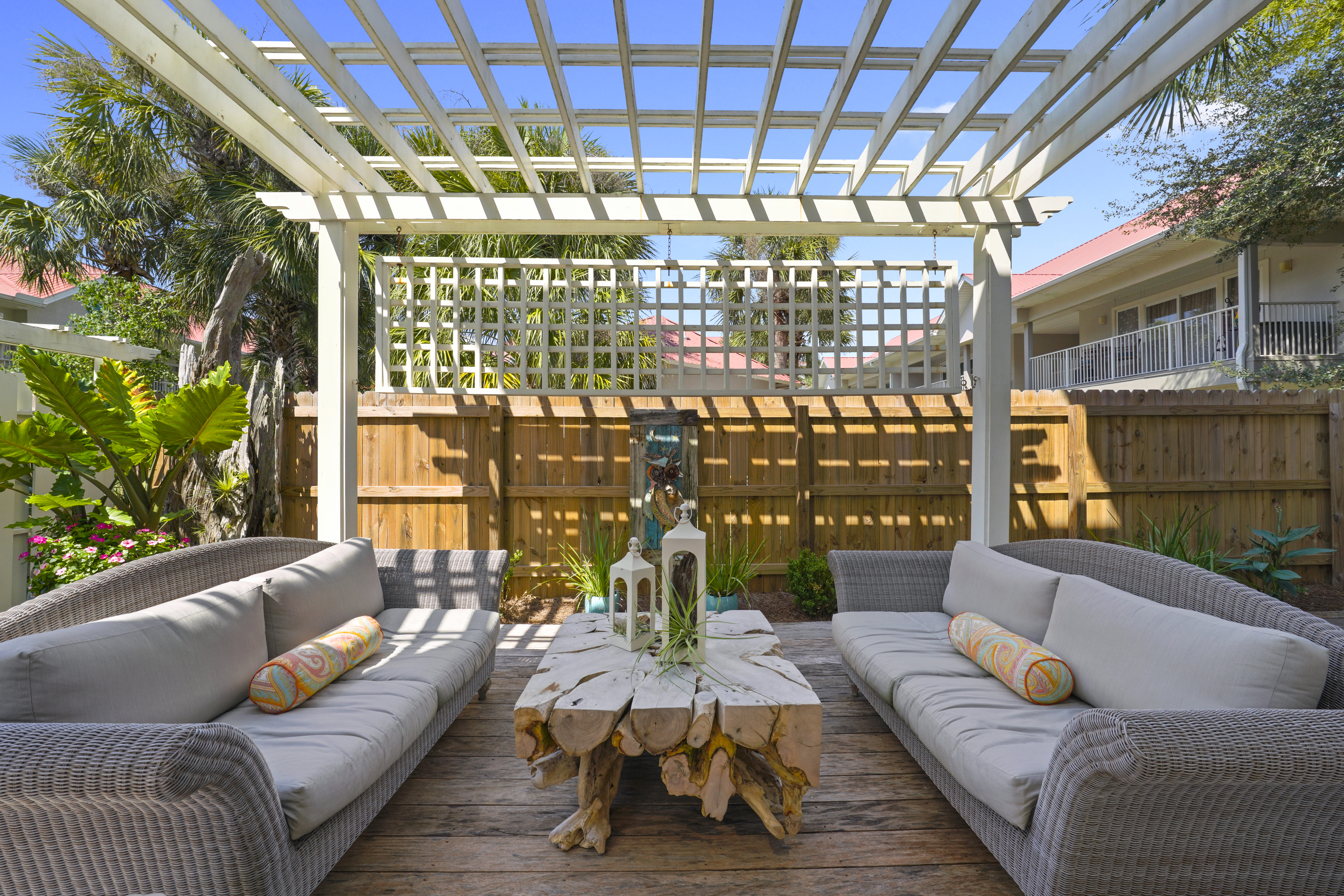 Ideally located in Seagrove Beach within the quiet, intimate setting of Magnolia Dune, 82 Sandalwood offers a rare balance of privacy and accessibility, just moments from the neighborhood pool and a short distance to the Gulf. The home presents a strong architectural presence, with a deep front porch, expansive windows, and an inviting upper balcony. Outdoor living is well considered, featuring a spacious rear deck with pergola, gas grill connection, and enhanced privacy—recently improved for long-term durability.Inside, the main level reflects a refined coastal aesthetic with hardwood flooring, ten-foot ceilings, and understated architectural detailing. The kitchen is both functional and elegant, finished with marble countertops, soft-close cabinetry, a pantry, and premium stainless appliances, including a Bosch five-burner gas range. The adjacent dining area accommodates larger gatherings with ease and is complemented by a serving bar with KitchenAid ice maker. A discreet powder room completes the level.Upstairs, the primary suite is spacious and light-filled, with wood beam accents adding subtle character. The en-suite bath features marble surfaces, a walk-in closet, separate water closet, and a walk-in shower with classic tilework. Two additional guest bedrooms share a thoughtfully finished bath, while a dedicated laundry room with high-efficiency appliances and marble counters adds convenience.The third level offers added versatility, enhanced by custom shiplap detailing along the stairwell. A den serves as a fourth sleeping area, complete with a king bed, sitting space, and access to a balcony with Gulf views. A fully renovated bath and adjoining bunk room with built-in queen-over-queen accommodations expand capacity while maintaining a cohesive design. Extensive improvements—including updated HVAC systems, curated lighting, refreshed finishes, and professionally designed landscaping with integrated lighting—reflect consistent care and investment throughout. The property has demonstrated consistent rental performance, underscoring its appeal as both a private retreat and investment opportunity. Residents enjoy convenient access to the newly completed Seagrove Regional Beach Access, offering parking, restrooms, and ADA accessibility approximately 350 yards from the home.