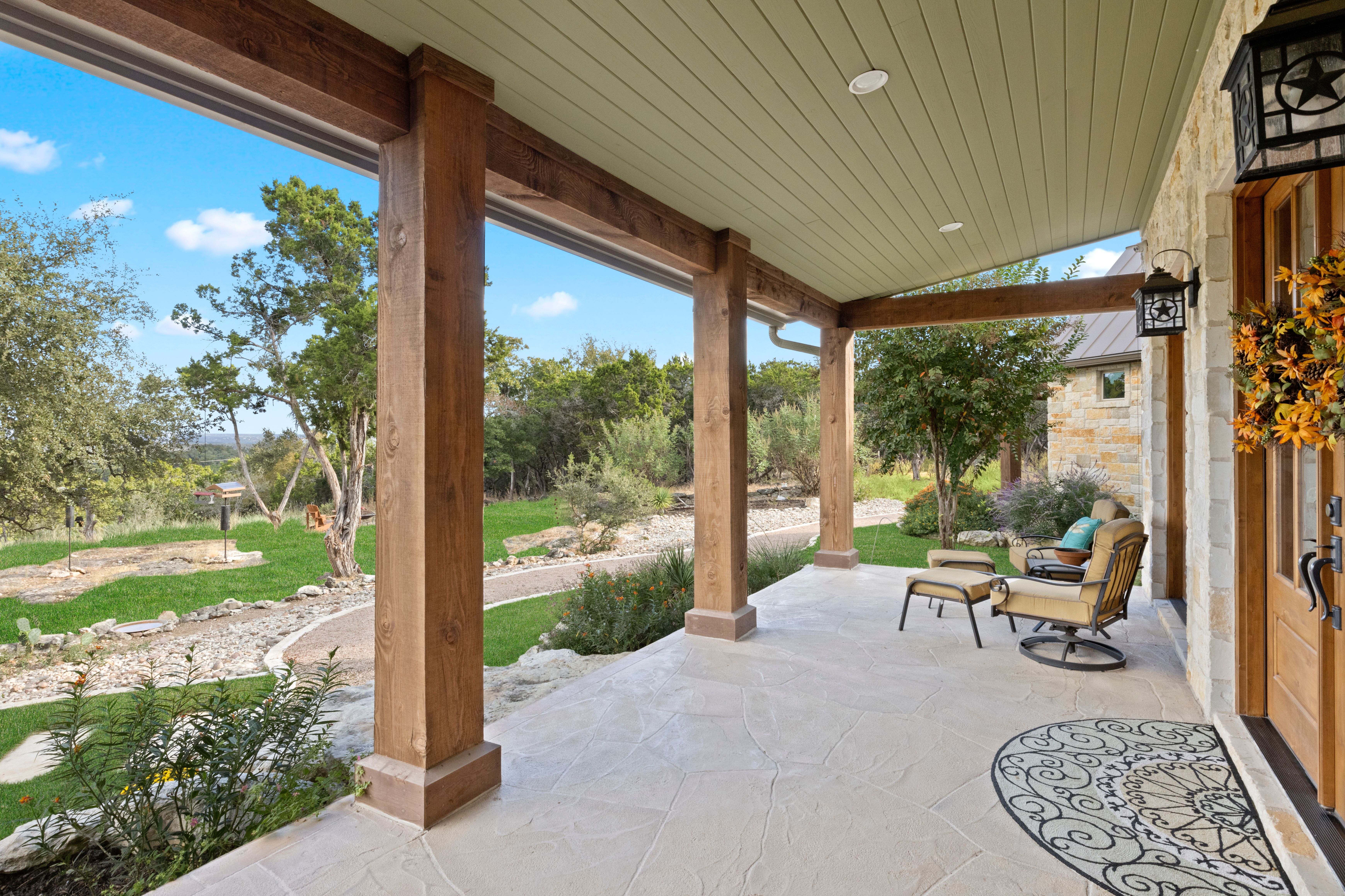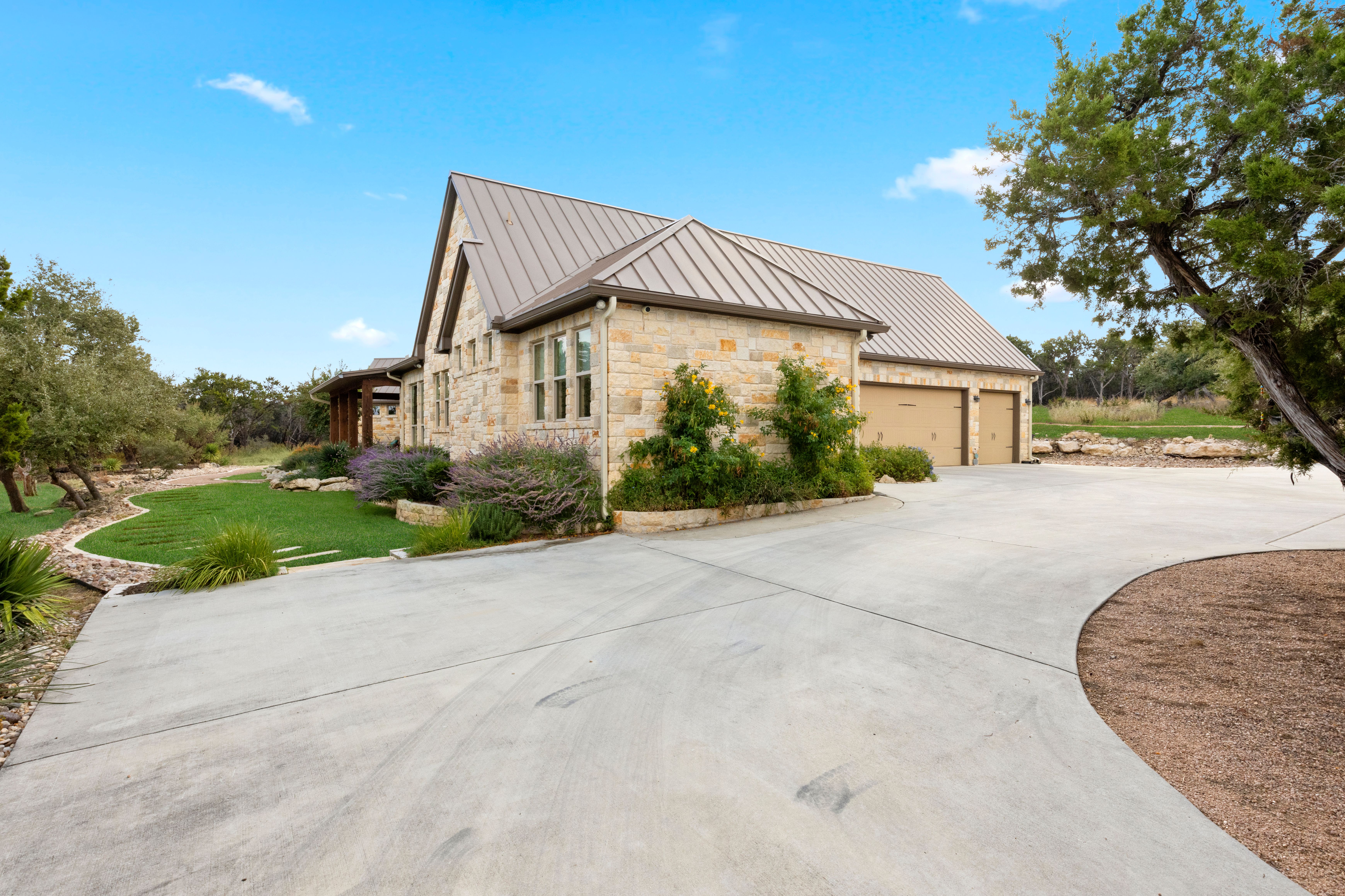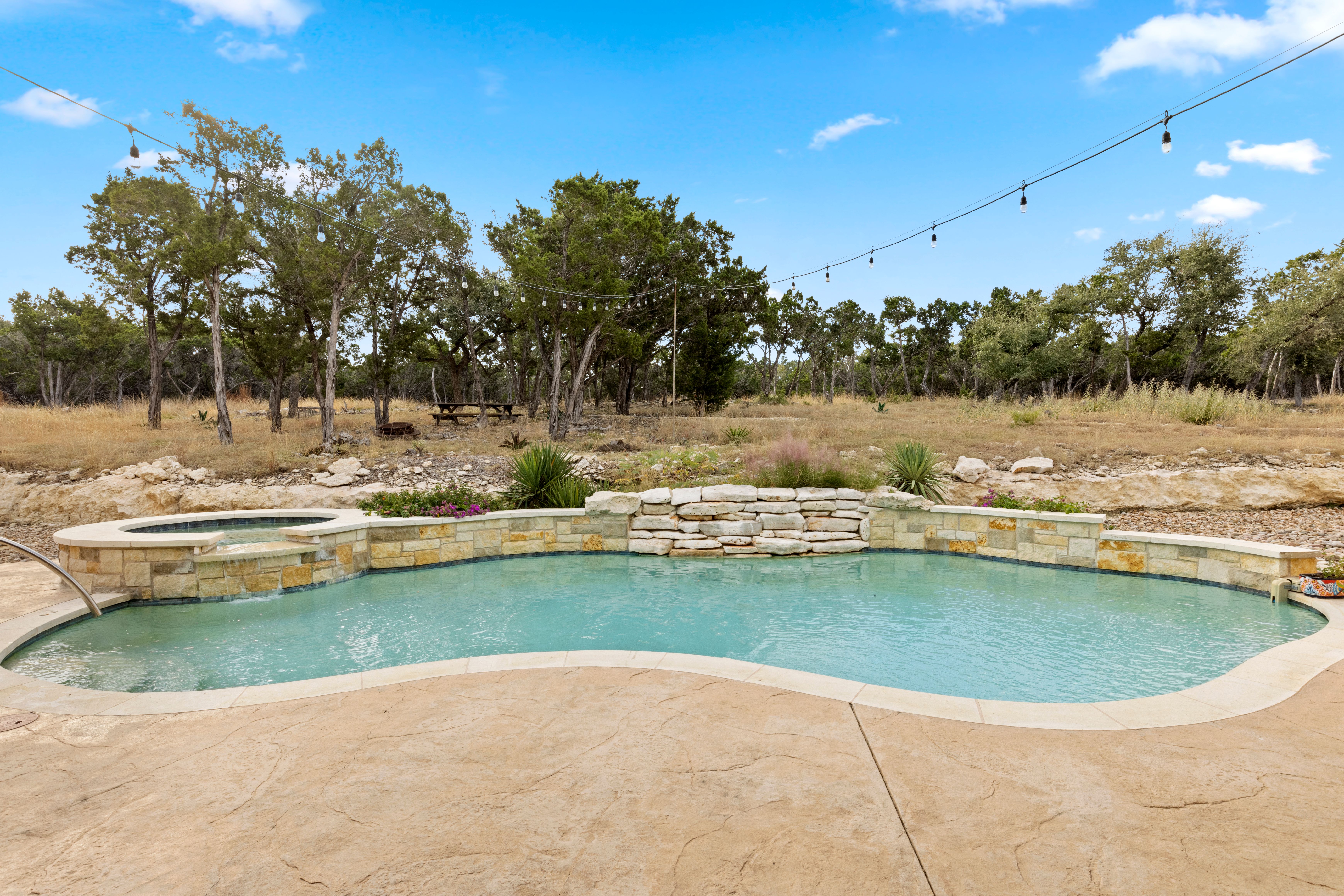 Picturesque Hill Country views with Twin Sisters visible in the distance set the tone for this 10+ acre retreat! Nestled along a scenic ridge in in the gated community of Rebecca Creek Ranches, this exceptional custom built home is filled with an abundance of natural light, perfectly framing the surrounding Hill Country vistas. Cathedral ceilings and wood beams accent a grand stone fireplace in the living room, while a spacious layout flows into a chef's kitchen with large island, Bosch appliances, and a five-burner gas cooktop. Outdoor living shines with a sparkling pool, waterfall, hot tub, expansive patio, and outdoor kitchen - perfect for entertaining or unwinding in total privacy. A rare blend of views, acreage, and lifestyle that's hard to find and even harder to leave!