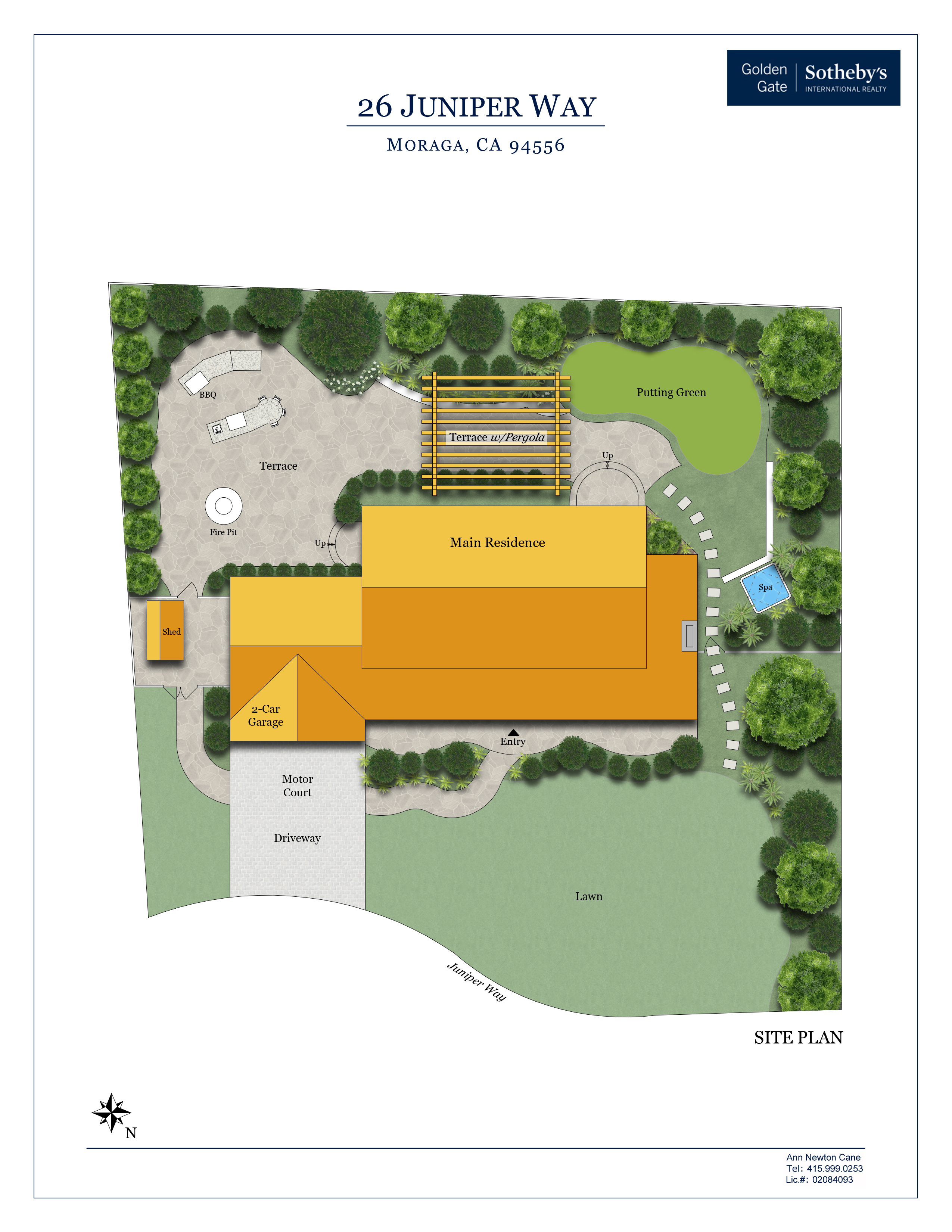 This Moraga home is ideally located in every respect. It sits at the end of a quiet cul-de-sac, just a 400-yard walk to Joaquin Moraga Middle School, three-quarters of a mile to Camino Pablo Elementary, and barely a mile to the Moraga Shopping Center. The home has exceptional curb appeal, but some of its best features are invisible from the street: a back yard with every inviting feature, including regal redwood trees, a Samsung outdoor television, a gas firepit, a built-in barbecue, an adjoining granite countertop that will serve as an evening venue for wine tasting with family and friends, an outdoor dining area seating eight or more under a climbing-rose pergola, a putting green, a play area, and a Sundance Majesta hot tub – all illuminated by a lighting plan conceived by the noted landscape designer Garden Lights. Inside, the spot for relaxation and entertainment surely will be the remodeled family room and open-concept kitchen (which has a new refrigerator and two dishwashers). More-formal gatherings can be held in the dining room (easily seating eight) and the spacious living room, which offers a fireplace and views of the front garden. A remodeled half bathroom completes the main floor. Three bedrooms, two full bathrooms and an office nook lie up the stairs, all temperature-controlled with new HVAC equipment. Parking is easy in the two-car garage (with a recently installed side-mounted door), a wide Belgard Bergerac pavers driveway, and on the quiet cul-de-sac.This home exemplifies the convenience and charm that make Moraga such a lovely place to live.