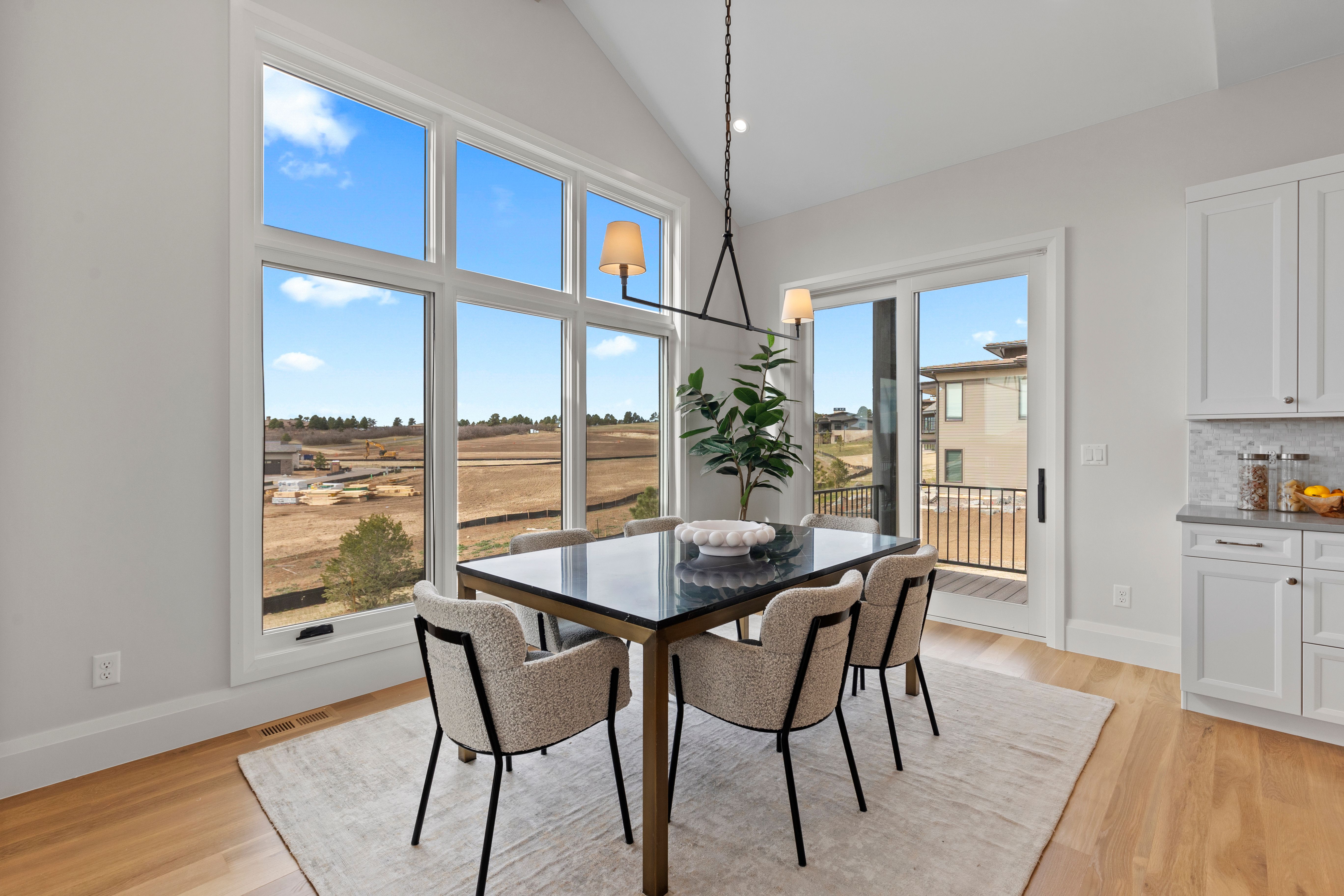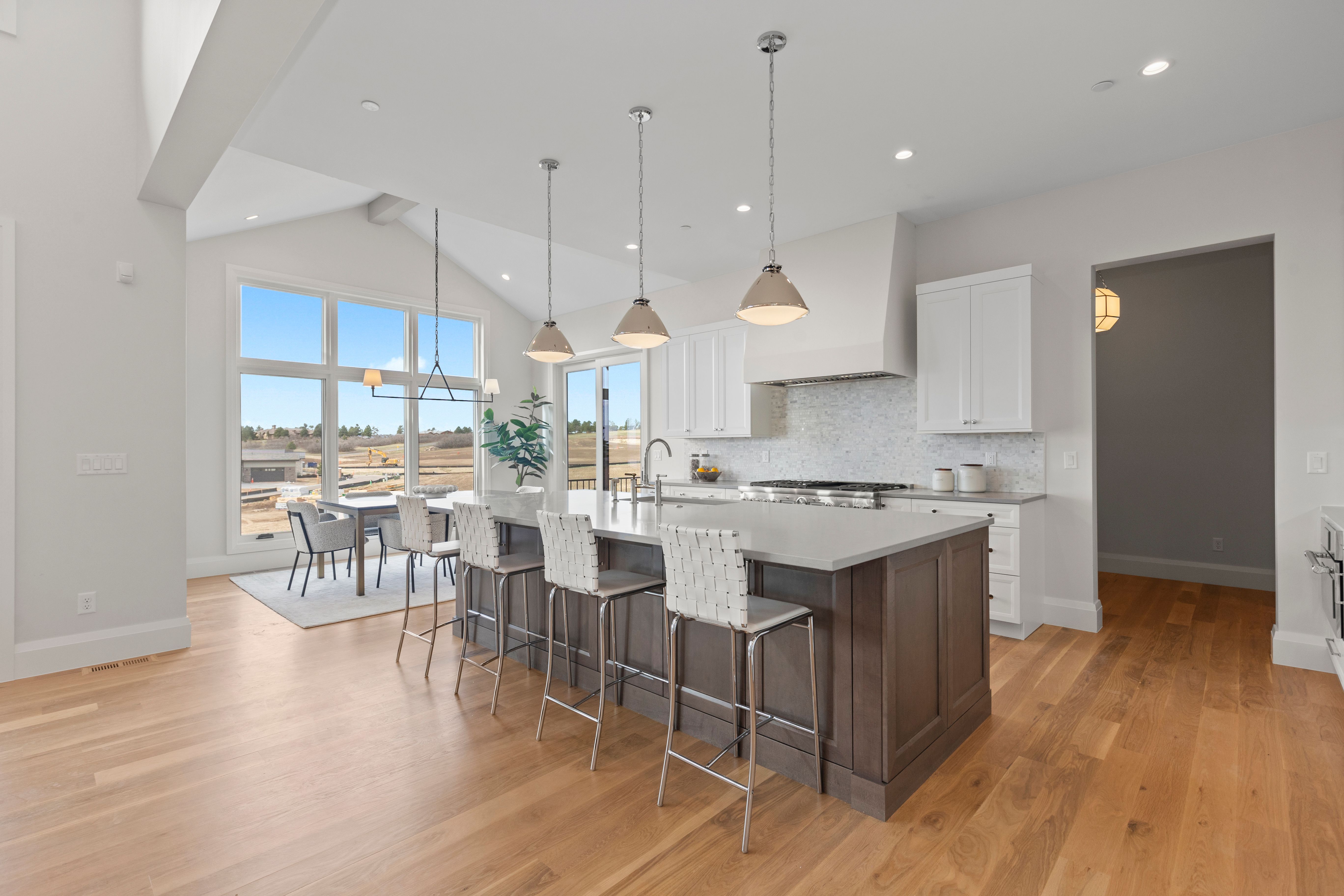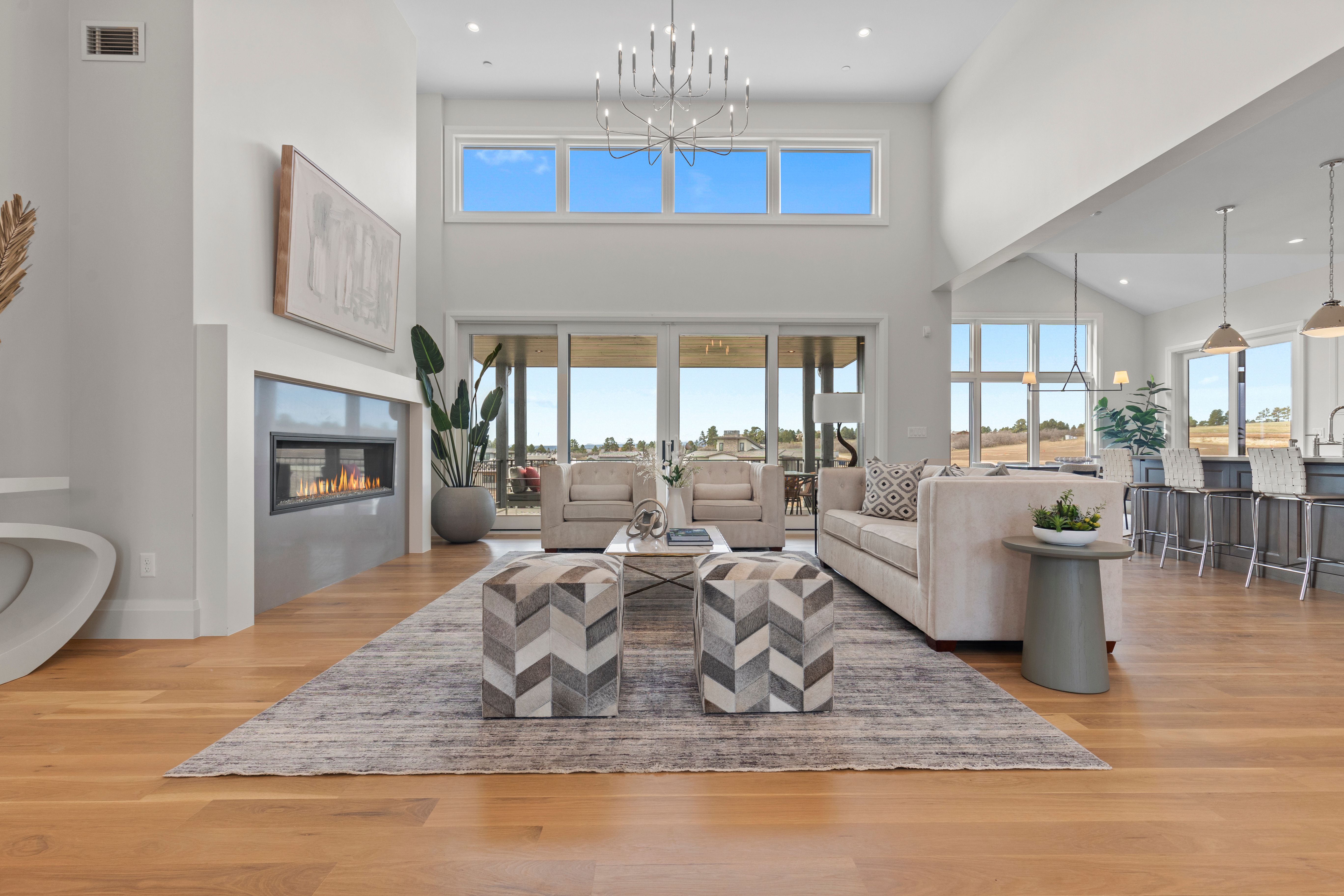 MODEL HOME SALE! With recent contracts on 3 of the few remaining Back Tees homes, this model home is ON SALE NOW at a NEWLY REDUCED PRICE! This brand new 4 bedroom | 6 bathroom MOVE-IN READY NEW CONSTRUCTION WALKOUT RANCH is one of the FINAL 2 HOMES in this Village at Castle Pines community. Positioned just steps from the private, award-winning Country Club at Castle Pines, this CUSTOM home offers much more than a traditional new build with landscaping and irrigation installed - RARE for new construction homes. From the moment you enter, the elevated craftsmanship is evident. True hardwood floors span the main level, complemented by the highest level 5 smooth drywall finish, 8' solid core doors, and custom lighting throughout. The kitchen is appointed with a full Thermador appliance suite, upgraded Kitchen Showcase cabinets, quartz counters, a custom beverage station with under-cabinet lighting and contemporary fixtures. A large island anchors the space, complemented by a bright dining area. Centered around a sleek linear fireplace and bathed in natural light, the great room flows seamlessly to a covered deck with a tongue and groove ceiling and views of Pikes Peak. The primary suite features a stylish bathroom with soaking tub, oversized shower, and a large walk-in closet with custom island featuring integrated storage. A coveted main level secondary bedroom with an en suite bathroom provides flexibility for guests. Completing the main level are a chic powder room, functional office, well-appointed laundry room, mudroom and 3-car garage. Showcasing a spacious walkout family room | rec room with a gas fireplace, wet bar, dedicated workout or flex space, and powder room, the lower level includes two additional bedrooms with en-suite baths. Architectural distinction, immediate availability, multiple builder upgrades, and an improved price are impossible to beat at this stunning custom home, making it an exceptional offering.