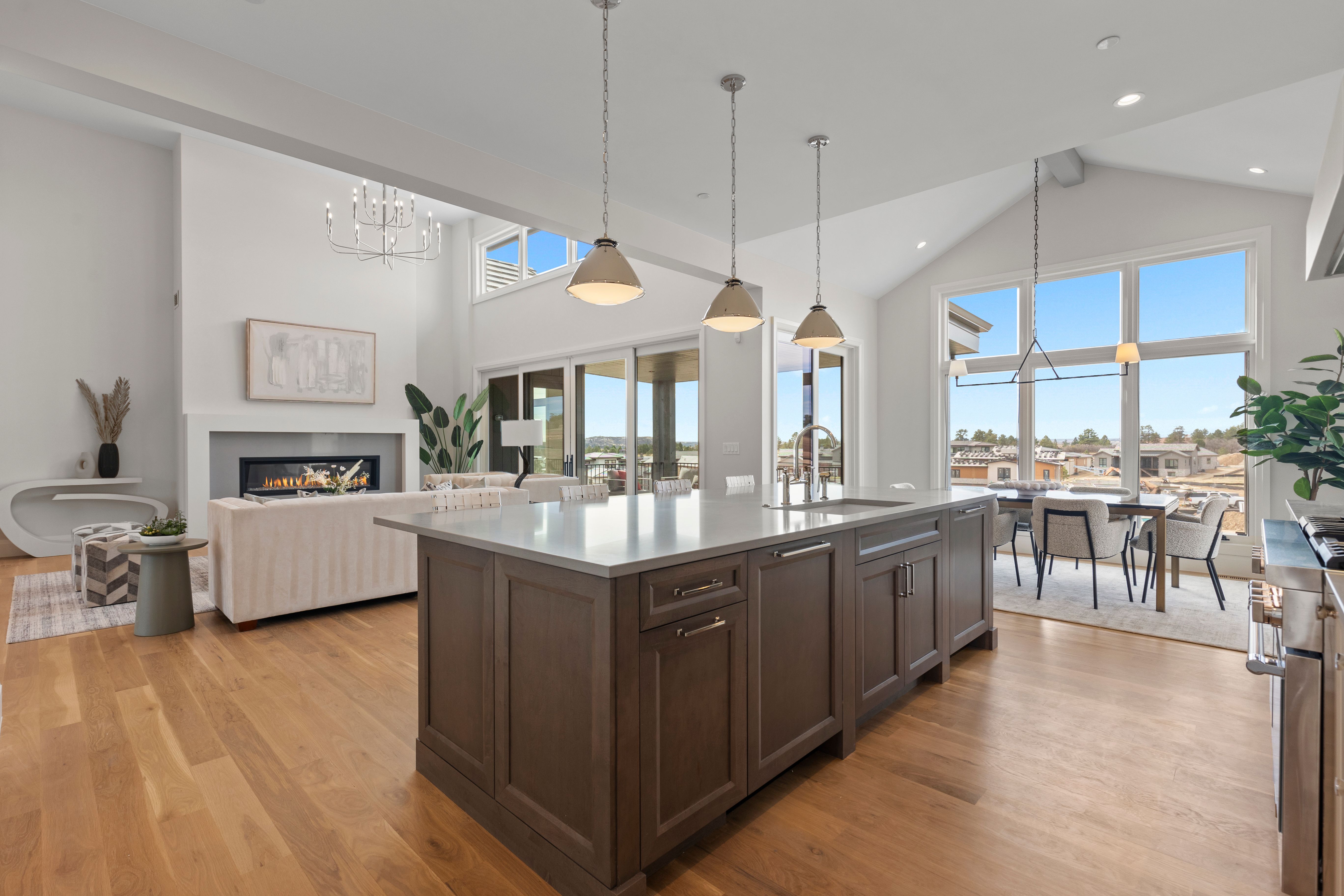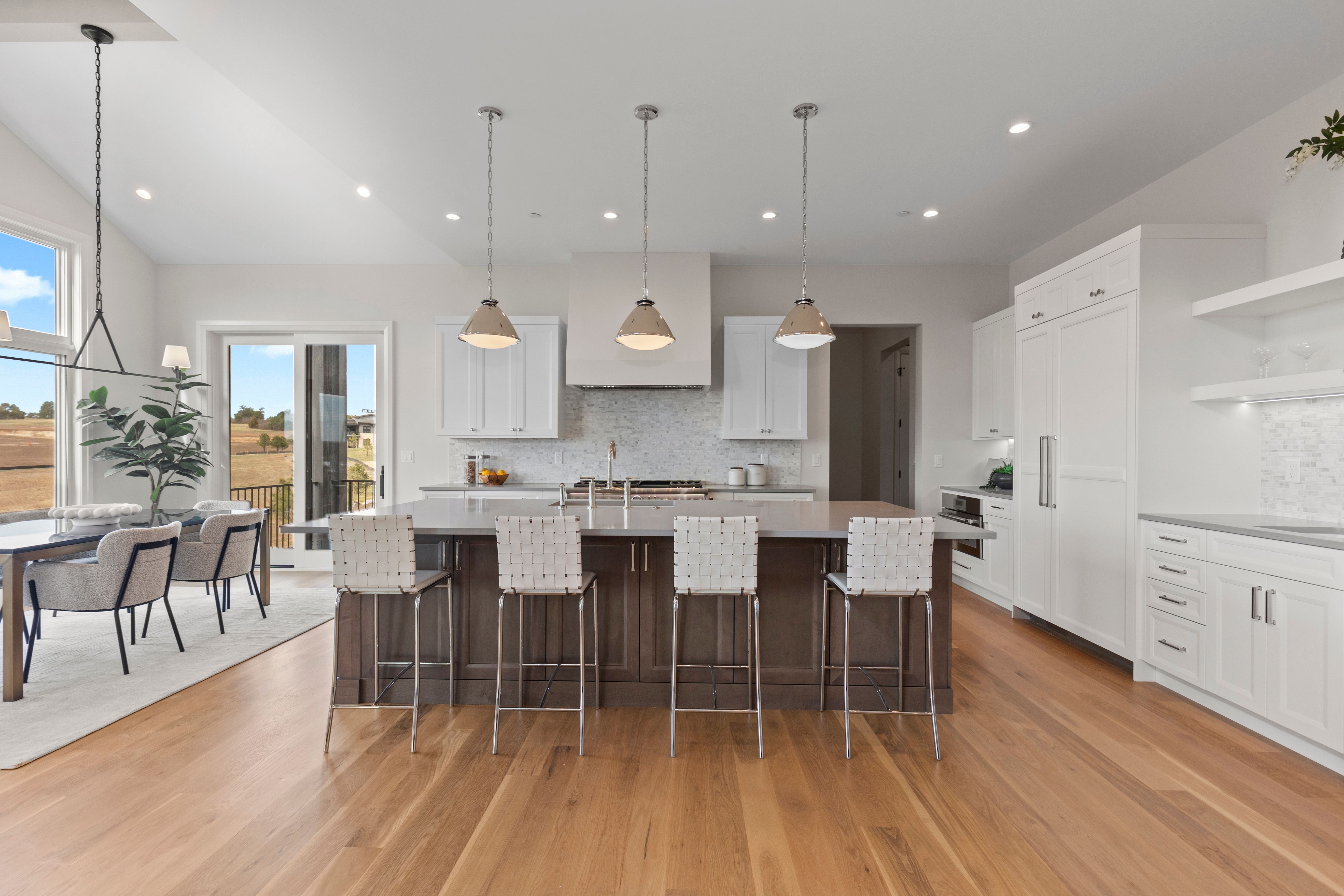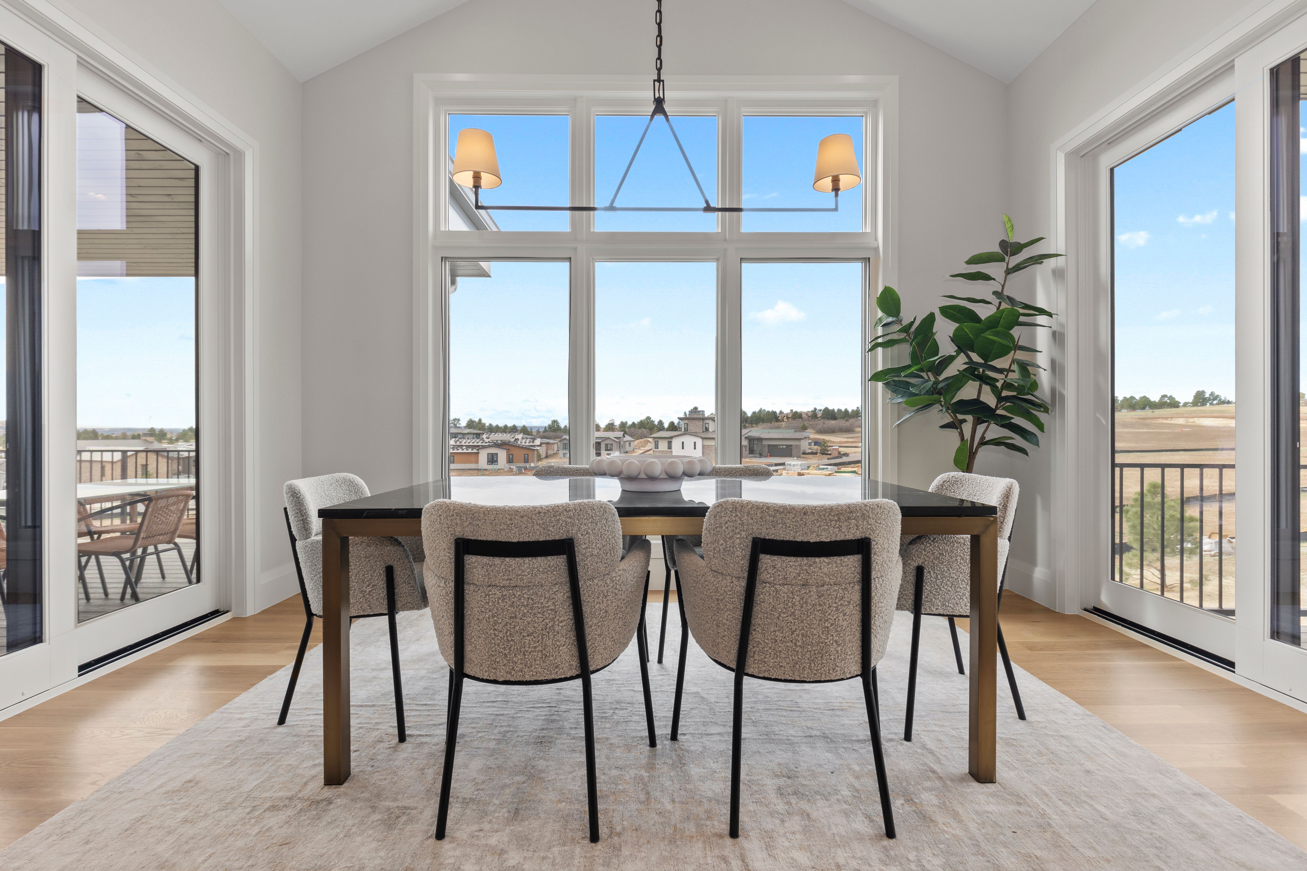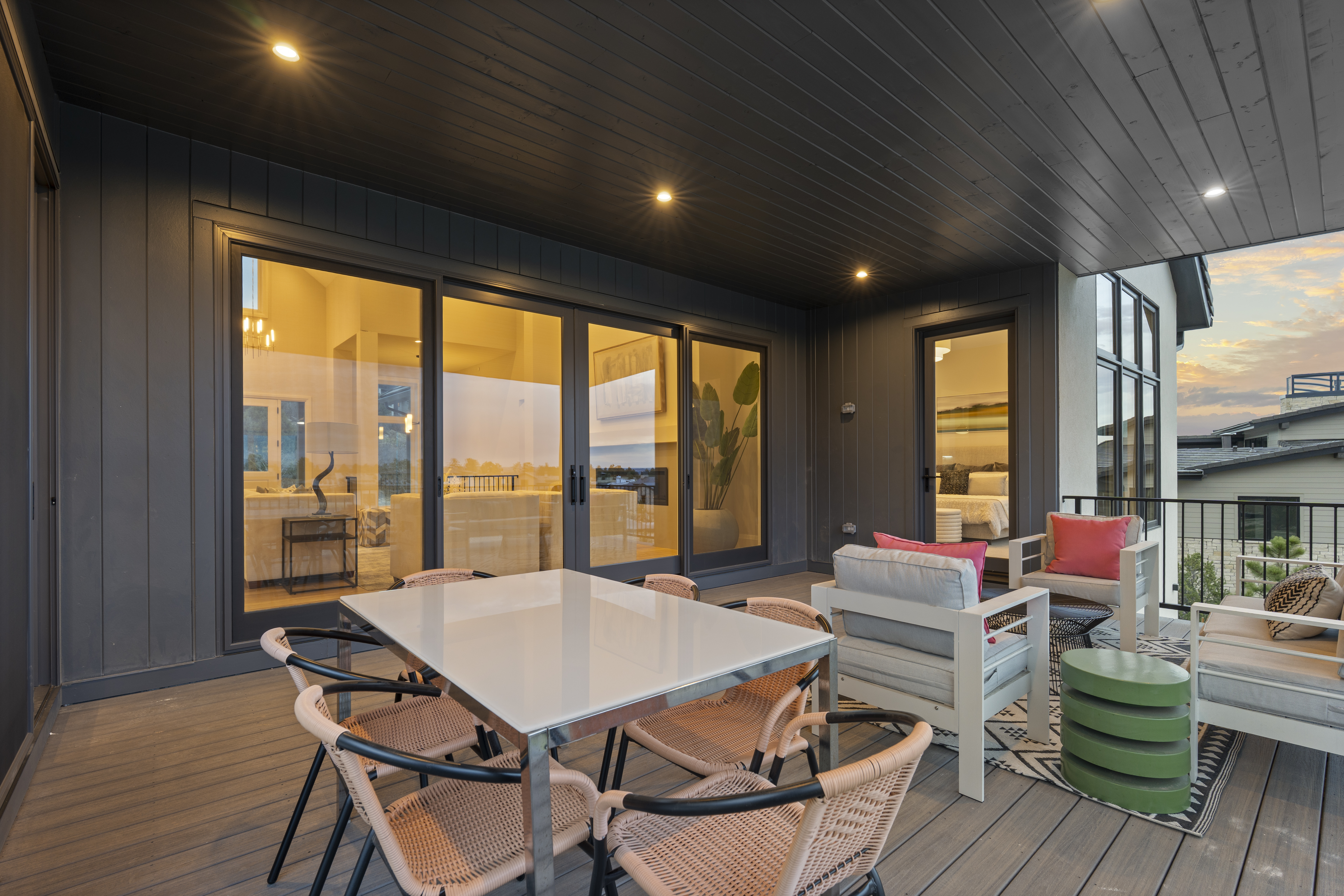 MODEL HOME SALE! With recent contracts on 3 of the few remaining Back Tees homes, this model home is ON SALE NOW at a NEWLY REDUCED PRICE! This brand new 4 bedroom | 6 bathroom MOVE-IN READY NEW CONSTRUCTION WALKOUT RANCH is one of the FINAL 2 HOMES in this Village at Castle Pines community. Positioned just steps from the private, award-winning Country Club at Castle Pines, this CUSTOM home offers much more than a traditional new build with landscaping and irrigation installed - RARE for new construction homes. From the moment you enter, the elevated craftsmanship is evident. True hardwood floors span the main level, complemented by the highest level 5 smooth drywall finish, 8' solid core doors, and custom lighting throughout. The kitchen is appointed with a full Thermador appliance suite, upgraded Kitchen Showcase cabinets, quartz counters, a custom beverage station with under-cabinet lighting and contemporary fixtures. A large island anchors the space, complemented by a bright dining area. Centered around a sleek linear fireplace and bathed in natural light, the great room flows seamlessly to a covered deck with a tongue and groove ceiling and views of Pikes Peak. The primary suite features a stylish bathroom with soaking tub, oversized shower, and a large walk-in closet with custom island featuring integrated storage. A coveted main level secondary bedroom with an en suite bathroom provides flexibility for guests. Completing the main level are a chic powder room, functional office, well-appointed laundry room, mudroom and 3-car garage. Showcasing a spacious walkout family room | rec room with a gas fireplace, wet bar, dedicated workout or flex space, and powder room, the lower level includes two additional bedrooms with en-suite baths. Architectural distinction, immediate availability, multiple builder upgrades, and an improved price are impossible to beat at this stunning custom home, making it an exceptional offering.