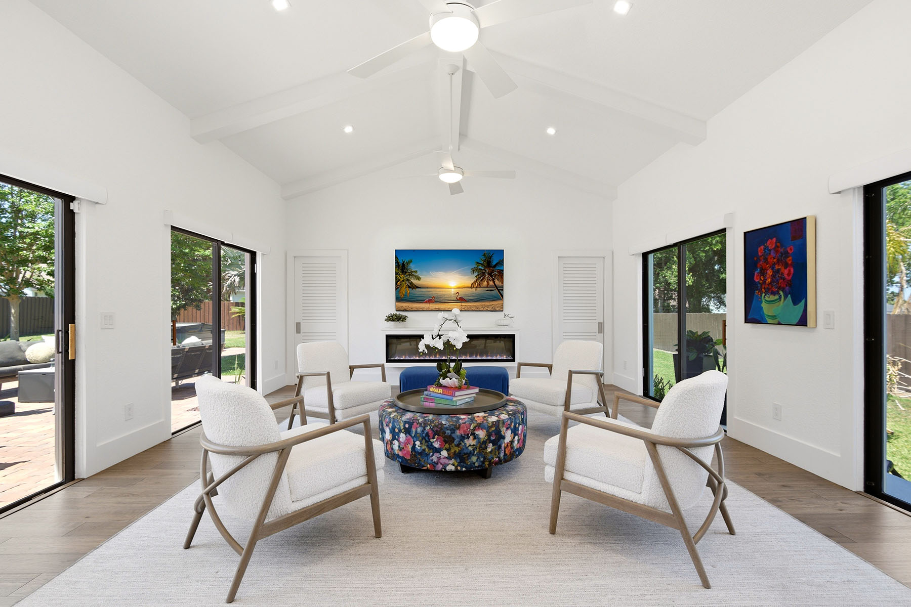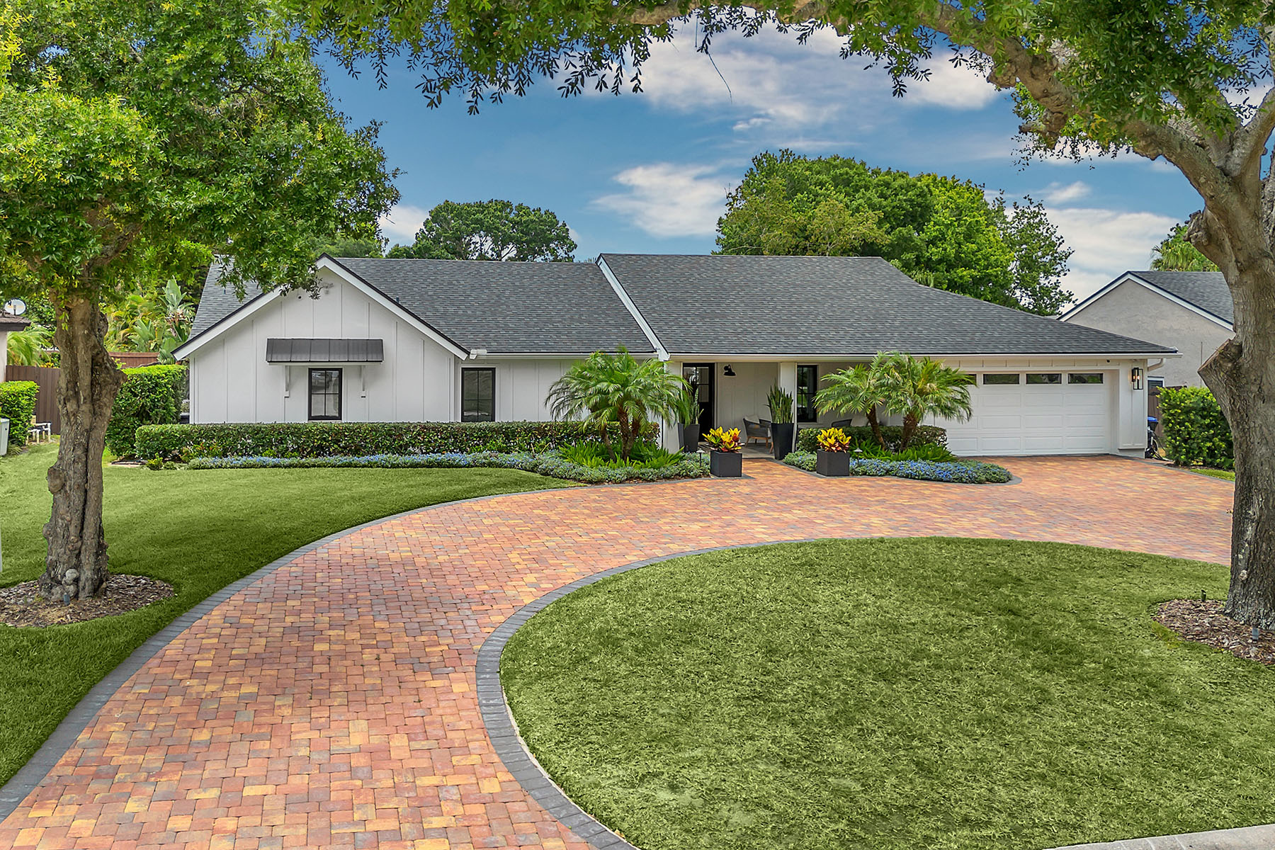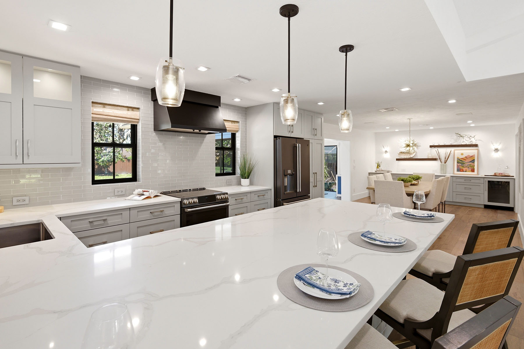 Luxury home in Southwest Orlando's premier gated golf community. This home has been completely reconstructed, the masterwork of Akers Custom Homes, a builder synonymous with elite craftsmanship and unwavering integrity. Offering a rare opportunity for distinctive living, this home is in one of Orlando's renowned gated golf course communities. This home provides ultimate peace of mind with significant high-value capital improvements, including a newly replaced roof (2022), HVAC unit (2018), whole house re-pipe and plumbing (2020), and electrical system completely updated (2022). Energy-efficient Andersen 100 Series windows with SmartSun™ glass significantly reduce cooling costs while blocking 95% of UV rays to prevent interior fading. The gourmet kitchen will delight the chef in the family, featuring an expansive breakfast bar with seating for four, sleek wood cabinetry, and a striking slate-blue glass subway tile backsplash that reaches the ceiling. High-end elements, including a custom matte black vent hood, a GE Café dual-oven range, and designer glass-front upper cabinets with integrated lighting, create a space built for performance and style. Serving as a seamless extension for hosting, the adjacent dining room showcases an impressive 12-foot dry bar equipped with dual refrigeration. The primary wing provides a sophisticated sanctuary, complete with an enormous walk-in closet. This retreat flows into a spa-inspired en suite featuring a sprawling double-sink vanity topped with premium quartz and a large floor-to-ceiling tiled shower enclosed in seamless glass with dual rainfall heads. The home's professionally designed interior includes wide plank engineered hickory wood floors, Sonos music system throughout, Emtek brushed nickel interior door handles, 4-inch square LED lights, windows and sliding doors are equipped with electric Lutron shades for effortless privacy at touch of a button. There's a 74-inch Dimplex fireplace floating with quartz countertop. The space is anchored with a curated suite of designer lighting, featuring a sculptural Flos Italian installation paired with a Visual Comfort Strada chandelier and coordinating sconces. Beyond the stunning interior, the allure extends outdoors to a private, fenced courtyard featuring professional exterior landscape lighting, an expanded paver patio, a quartz entertaining bar and 2022 Nordic six-seater heated therapeutic spa. Meticulously maintained, mature landscaping delivers a resort-like ambiance, offering a tranquil escape to unwind at end of the day.