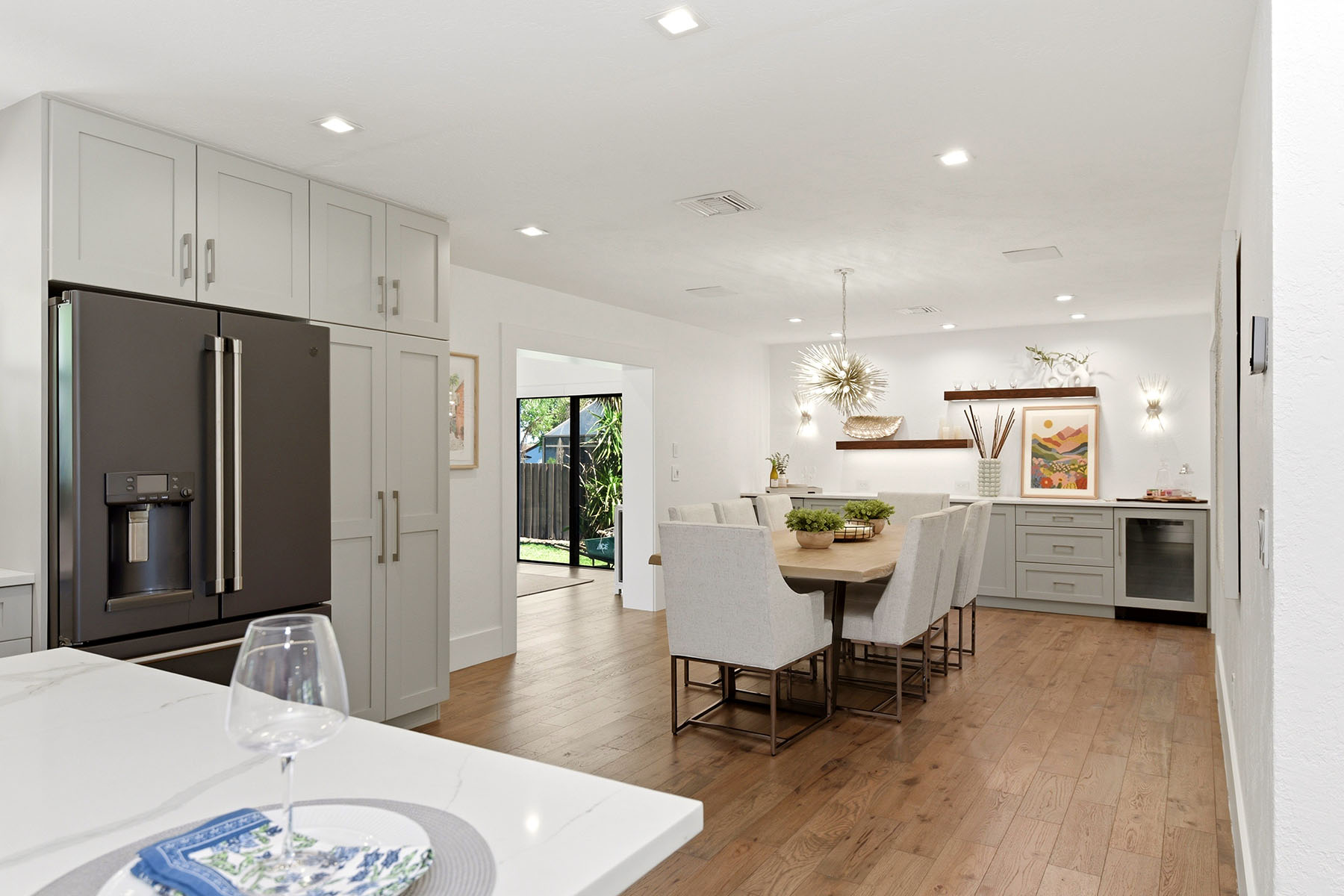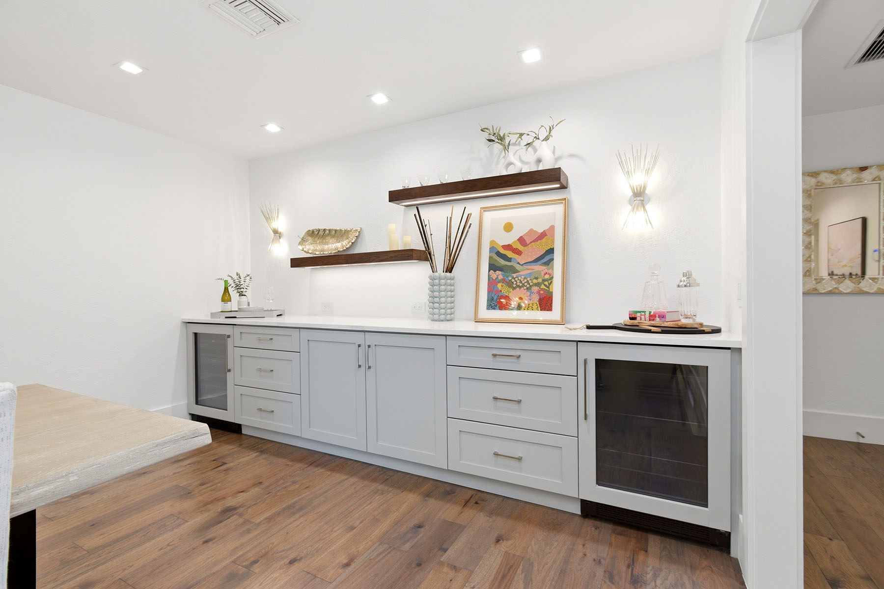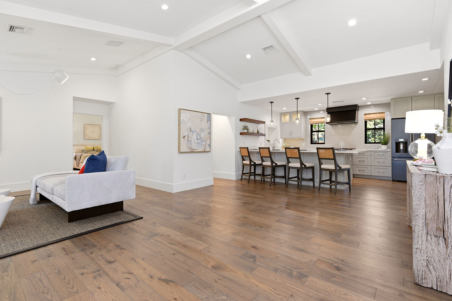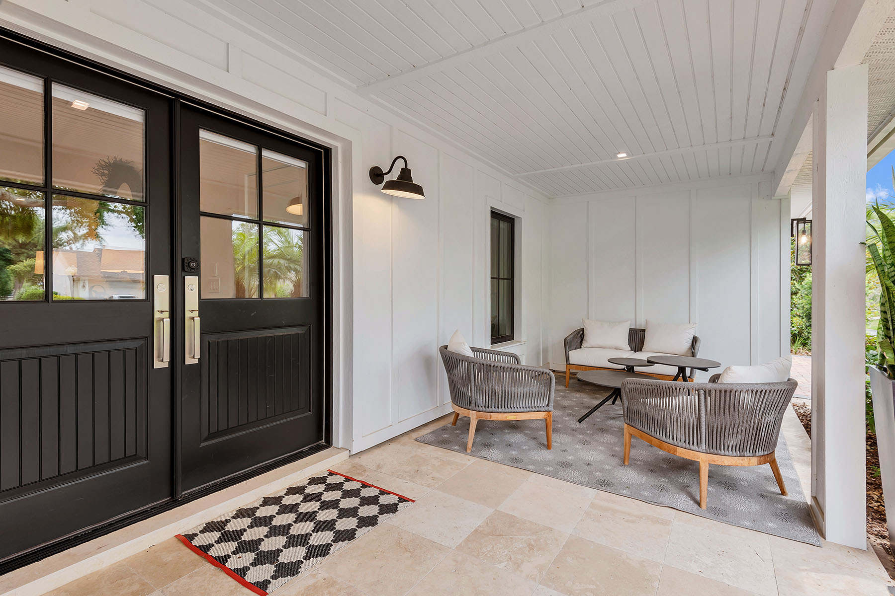 Luxury home in Southwest Orlando's premier gated golf community. This home has been completely reconstructed, the masterwork of Akers Custom Homes, a builder synonymous with elite craftsmanship and unwavering integrity. Offering a rare opportunity for distinctive living, this home is in one of Orlando's renowned gated golf course communities. This home provides ultimate peace of mind with significant high-value capital improvements, including a newly replaced roof (2022), HVAC unit (2018), whole house re-pipe and plumbing (2020), and electrical system completely updated (2022). Energy-efficient Andersen 100 Series windows with SmartSun™ glass significantly reduce cooling costs while blocking 95% of UV rays to prevent interior fading. The gourmet kitchen will delight the chef in the family, featuring an expansive breakfast bar with seating for four, sleek wood cabinetry, and a striking slate-blue glass subway tile backsplash that reaches the ceiling. High-end elements, including a custom matte black vent hood, a GE Café dual-oven range, and designer glass-front upper cabinets with integrated lighting, create a space built for performance and style. Serving as a seamless extension for hosting, the adjacent dining room showcases an impressive 12-foot dry bar equipped with dual refrigeration. The primary wing provides a sophisticated sanctuary, complete with an enormous walk-in closet. This retreat flows into a spa-inspired en suite featuring a sprawling double-sink vanity topped with premium quartz and a large floor-to-ceiling tiled shower enclosed in seamless glass with dual rainfall heads. The home's professionally designed interior includes wide plank engineered hickory wood floors, Sonos music system throughout, Emtek brushed nickel interior door handles, 4-inch square LED lights, windows and sliding doors are equipped with electric Lutron shades for effortless privacy at touch of a button. There's a 74-inch Dimplex fireplace floating with quartz countertop. The space is anchored with a curated suite of designer lighting, featuring a sculptural Flos Italian installation paired with a Visual Comfort Strada chandelier and coordinating sconces. Beyond the stunning interior, the allure extends outdoors to a private, fenced courtyard featuring professional exterior landscape lighting, an expanded paver patio, a quartz entertaining bar and 2022 Nordic six-seater heated therapeutic spa. Meticulously maintained, mature landscaping delivers a resort-like ambiance, offering a tranquil escape to unwind at end of the day.
