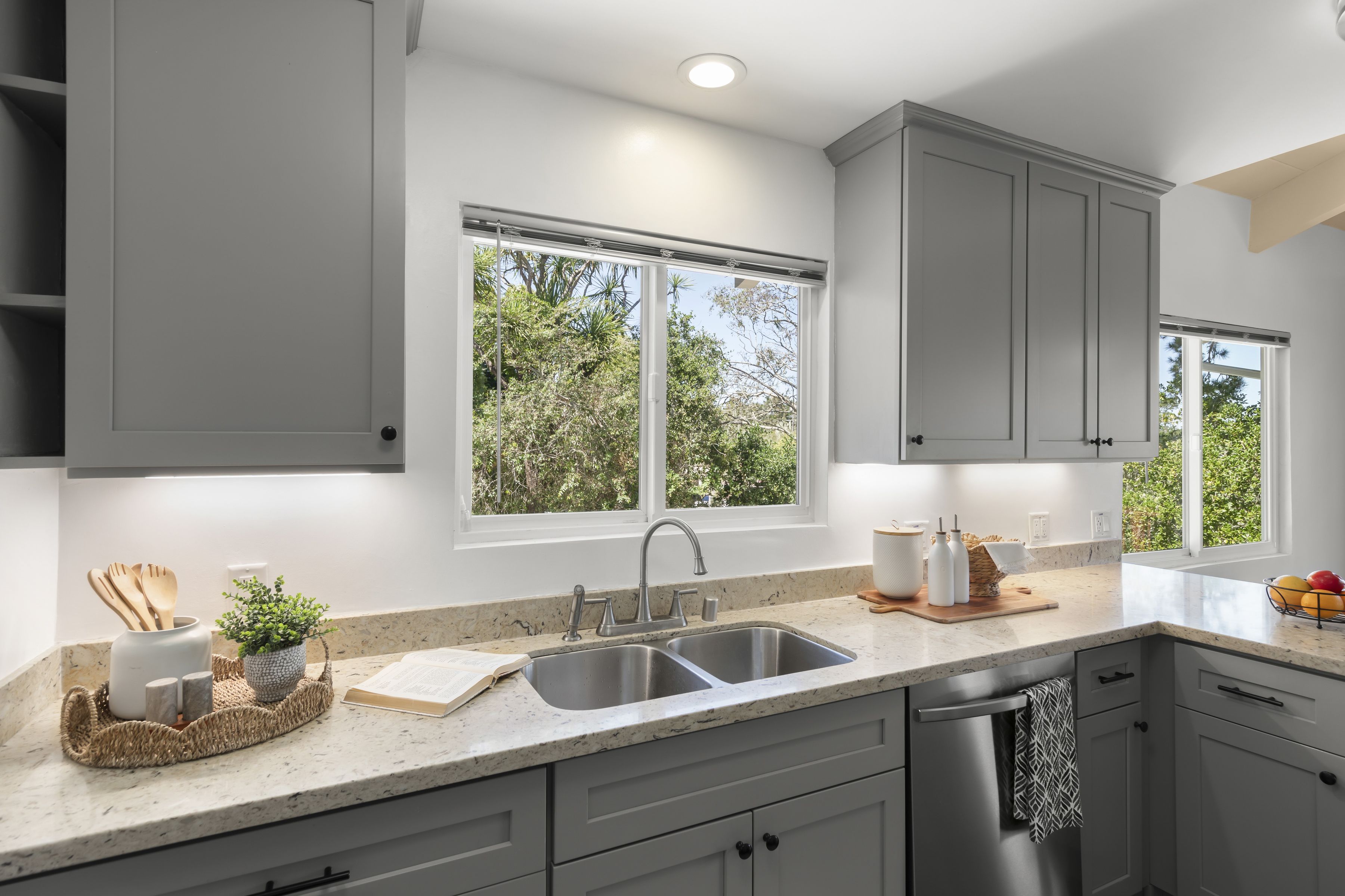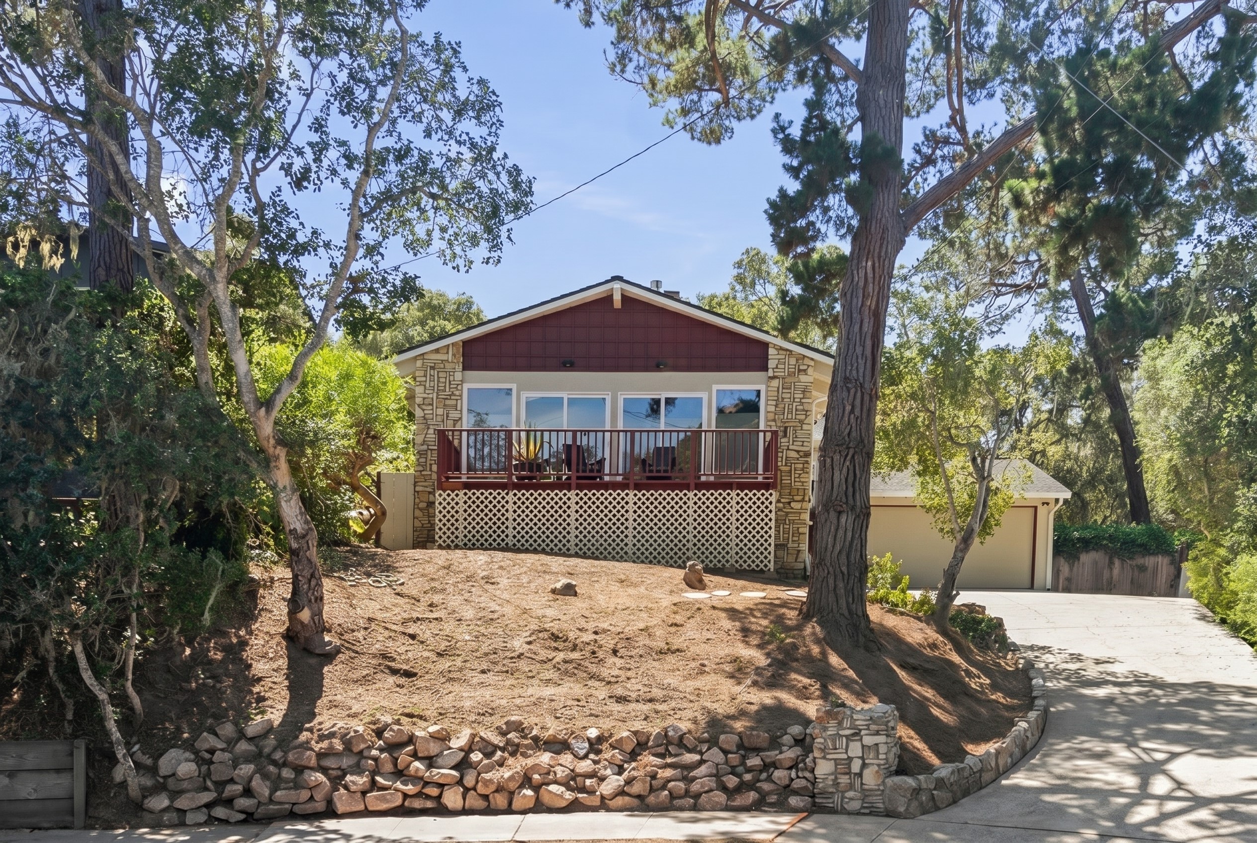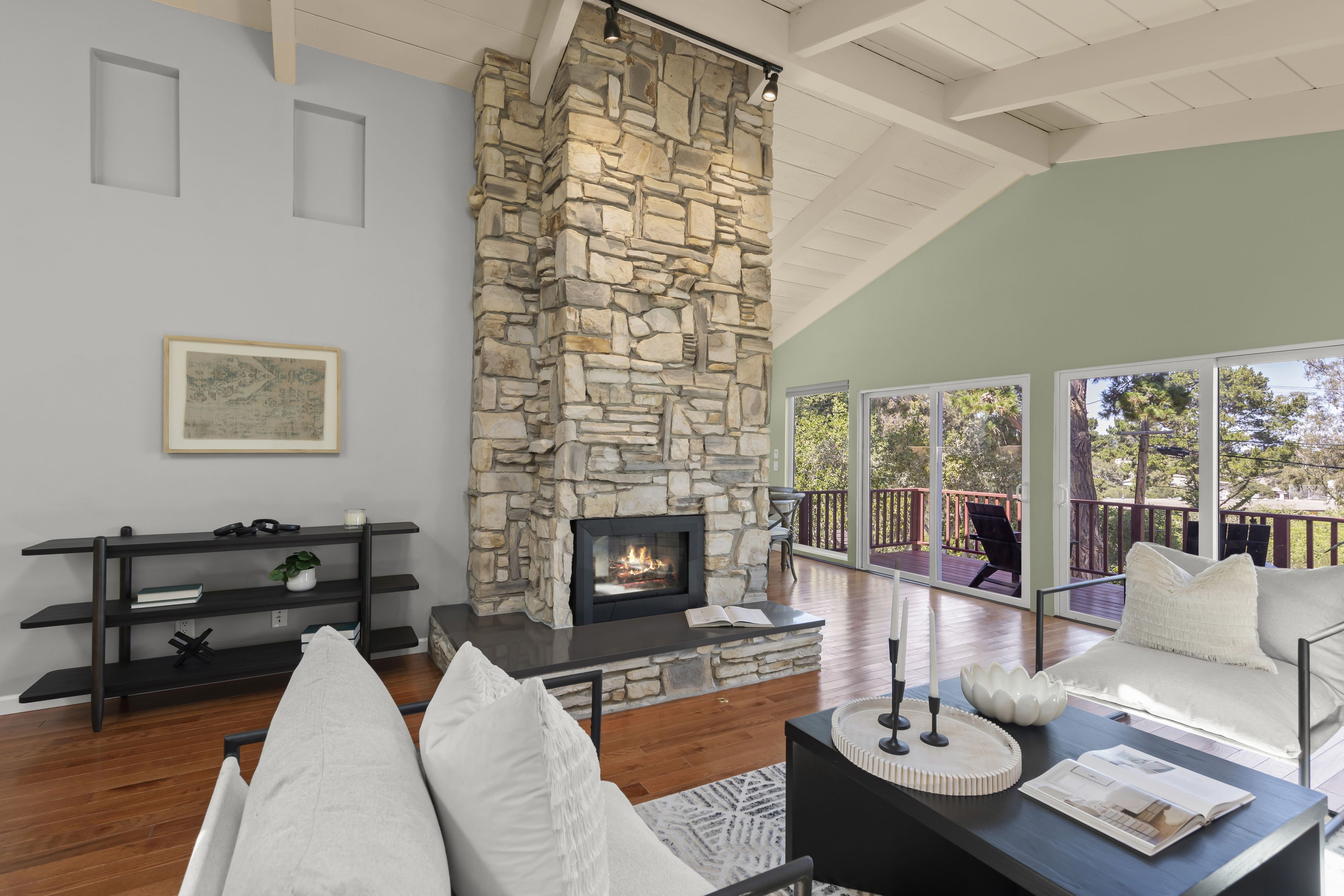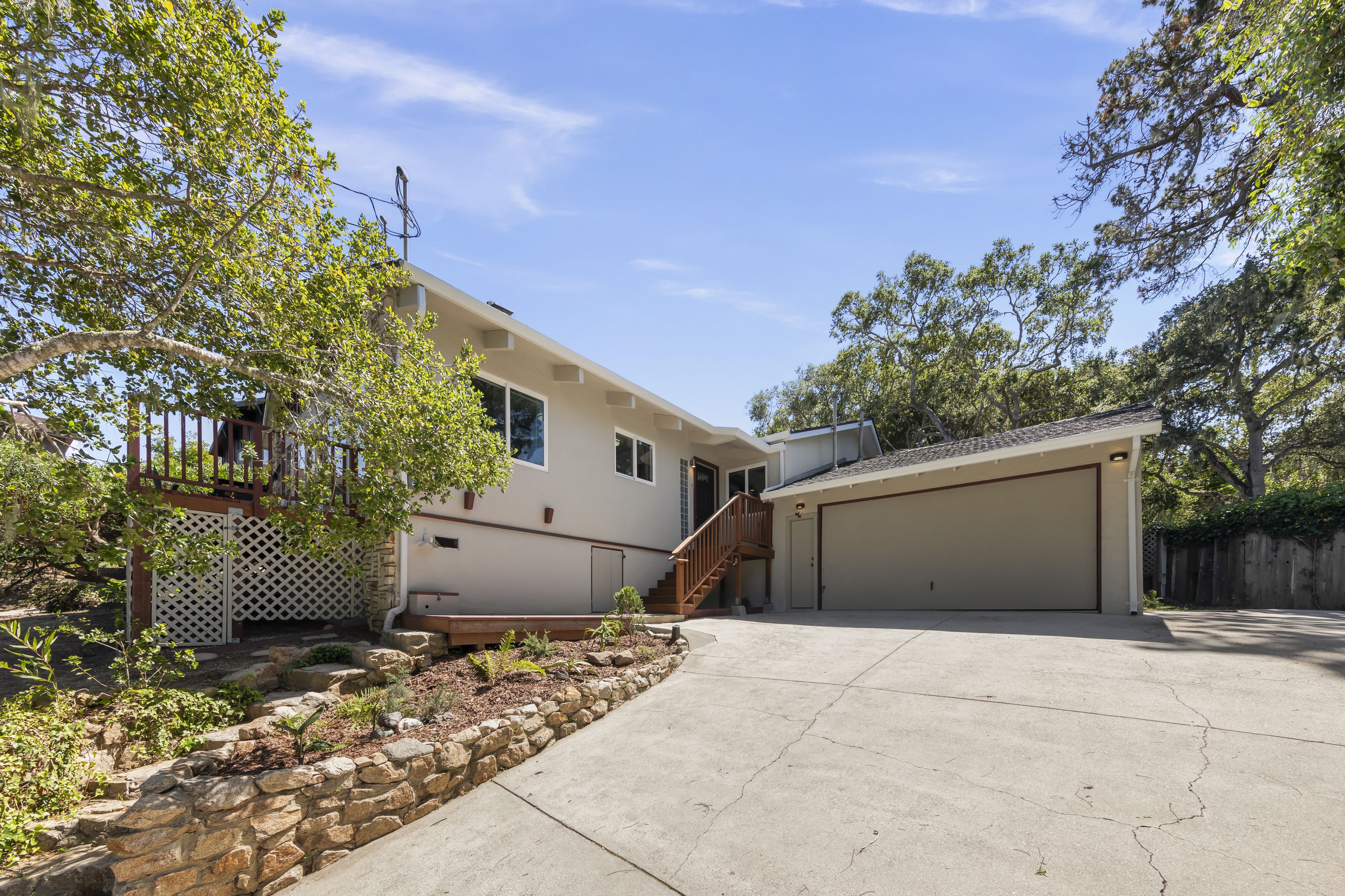 Turnkey Single-Level Retreat. Tucked away on a peaceful cul-de-sac in Montereys desirable Peters Gate neighborhood, this beautifully updated single-level home offers the ideal blend of comfort, style, and coastal lifestyle. Designed for effortless indoor-outdoor living, the light-filled open floor plan features vaulted ceilings, skylights, and a striking Carmel stone fireplace that anchors the living space. The dining area flows seamlessly through floor-to-ceiling glass doors to a sun-drenched entertaining deck perfect for morning coffee, sunset gatherings, and enjoying bay views. The thoughtfully remodeled kitchen includes new appliances, quartz countertops, and modern finishes, while both bathrooms have been tastefully updated. Rich gunstock oak flooring, classic Berkeley doors, and double-pane windows enhance the homes warmth and character. Recent improvements include updated electrical and a long-life roof. Set on an expansive 9,350 sq ft lot, the property offers potential for outdoor living expansion and garden design. Ideally located just minutes from historic Old Town Monterey, scenic walking trails, and the world-renowned destinations of Carmel-by-the-Sea and Big Sur, this move-in-ready home presents a rare opportunity to enjoy the best of the Central Coast lifestyle.