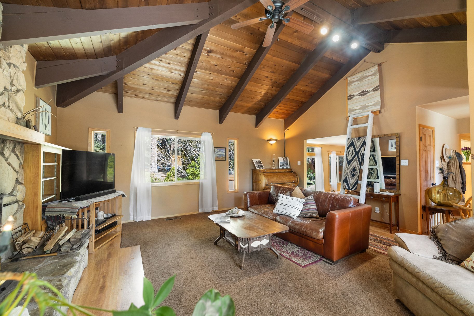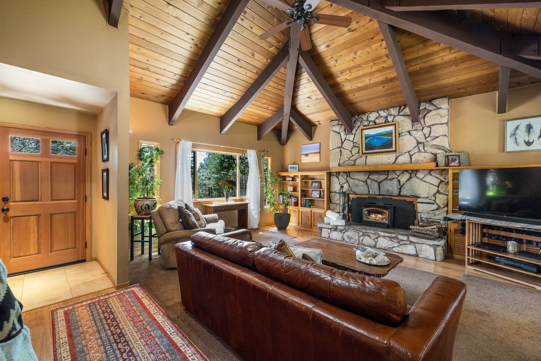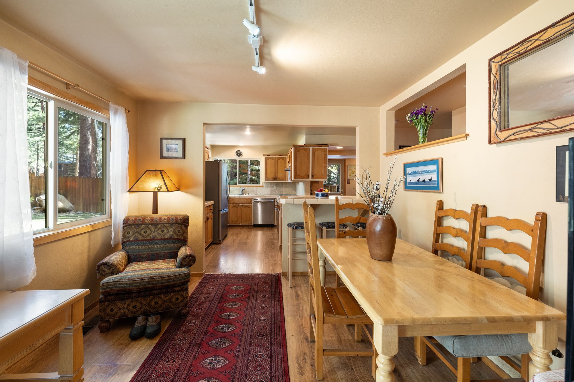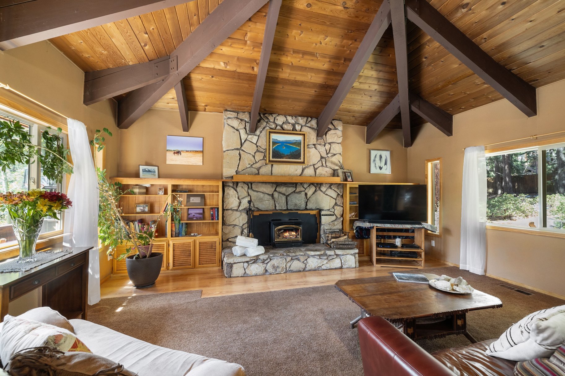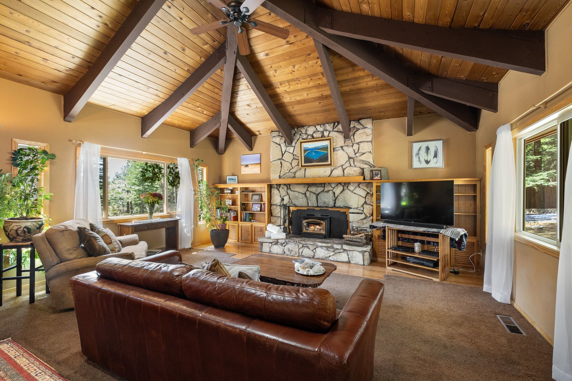 Cherished original home with 1960s character. When you get into the living room: LOOK UP. This is why we characterize the vibe as MOUNTAIN BOHO. Buyer has the opportunity to move in and live or reimagine. A 1200 sq ft ADU can be built on this .6 acres per the Buyer following the rules and regulations of Washoe County Building Dept and TRPA. Fenced back yard offers peaceful retreat for outside living. The backyard retreat is made more magical by towering trees. Ideal for gatherings or just unwinding. BUYER must independently verify square footage. All data here is gathered from TAX RECORDS 1920 square feet.. KEY WORD: PRIVATE . 2 beds/3 baths/ remodeled kitchen /wood floors/ carpet/beamed ceiling in living room/ landscape has sprinklers.