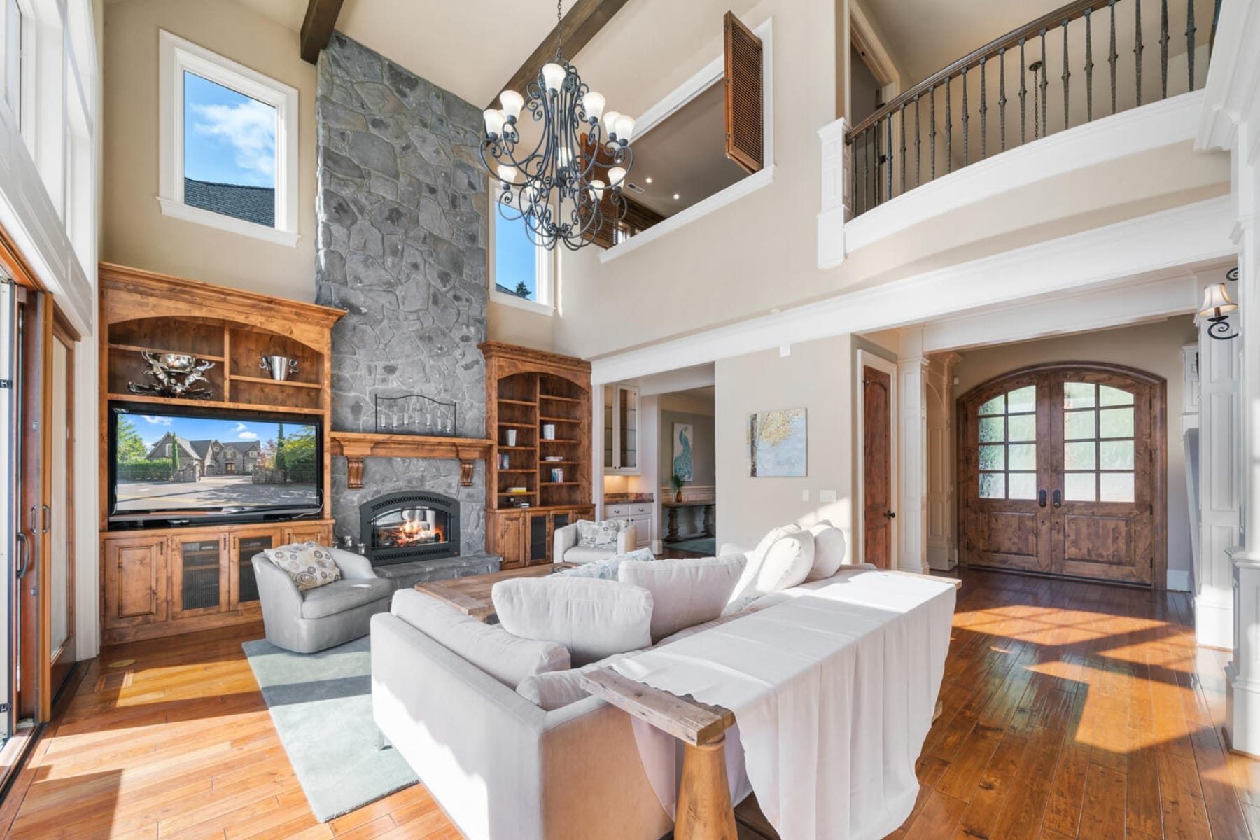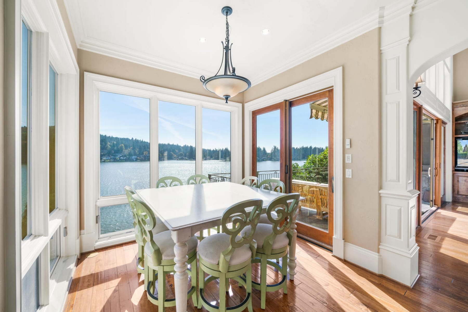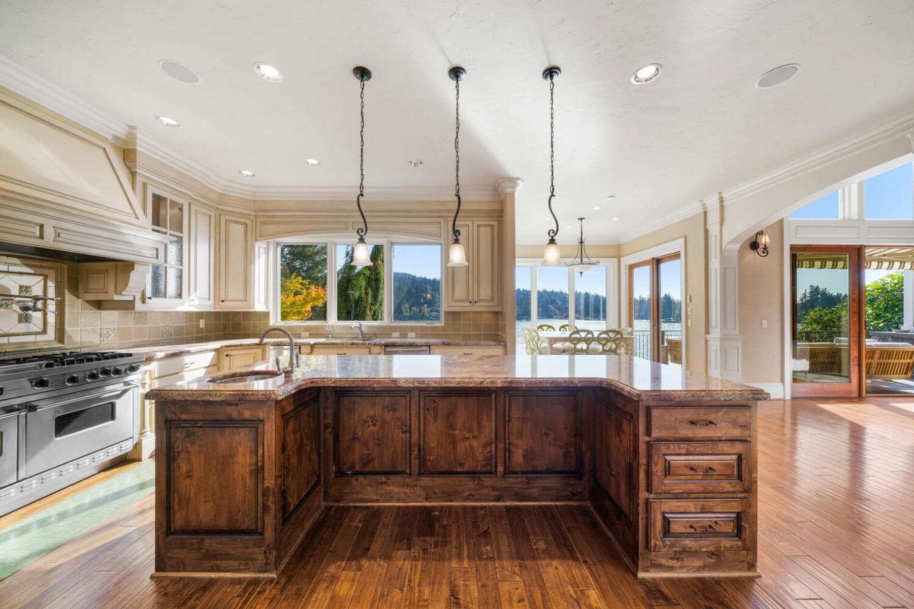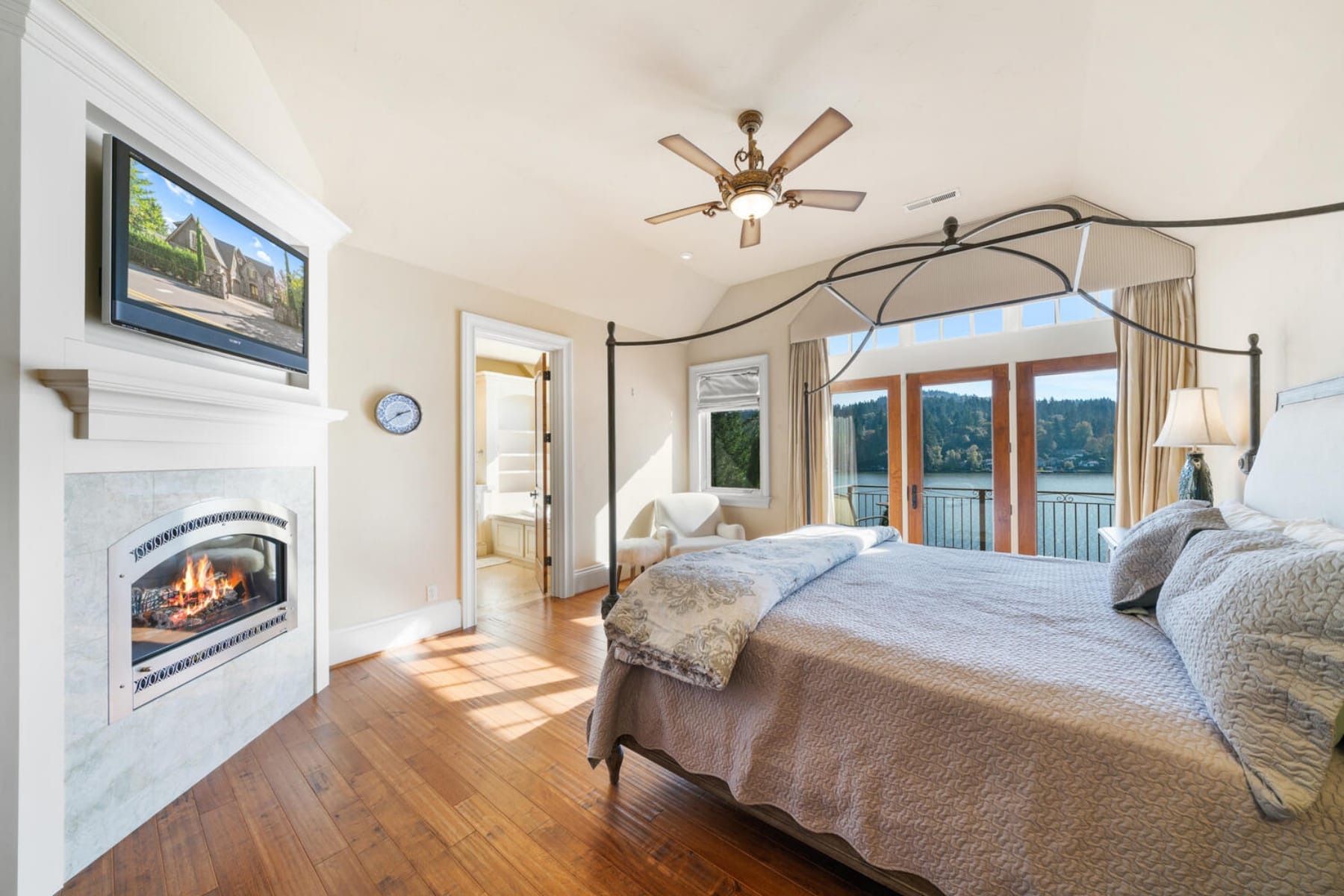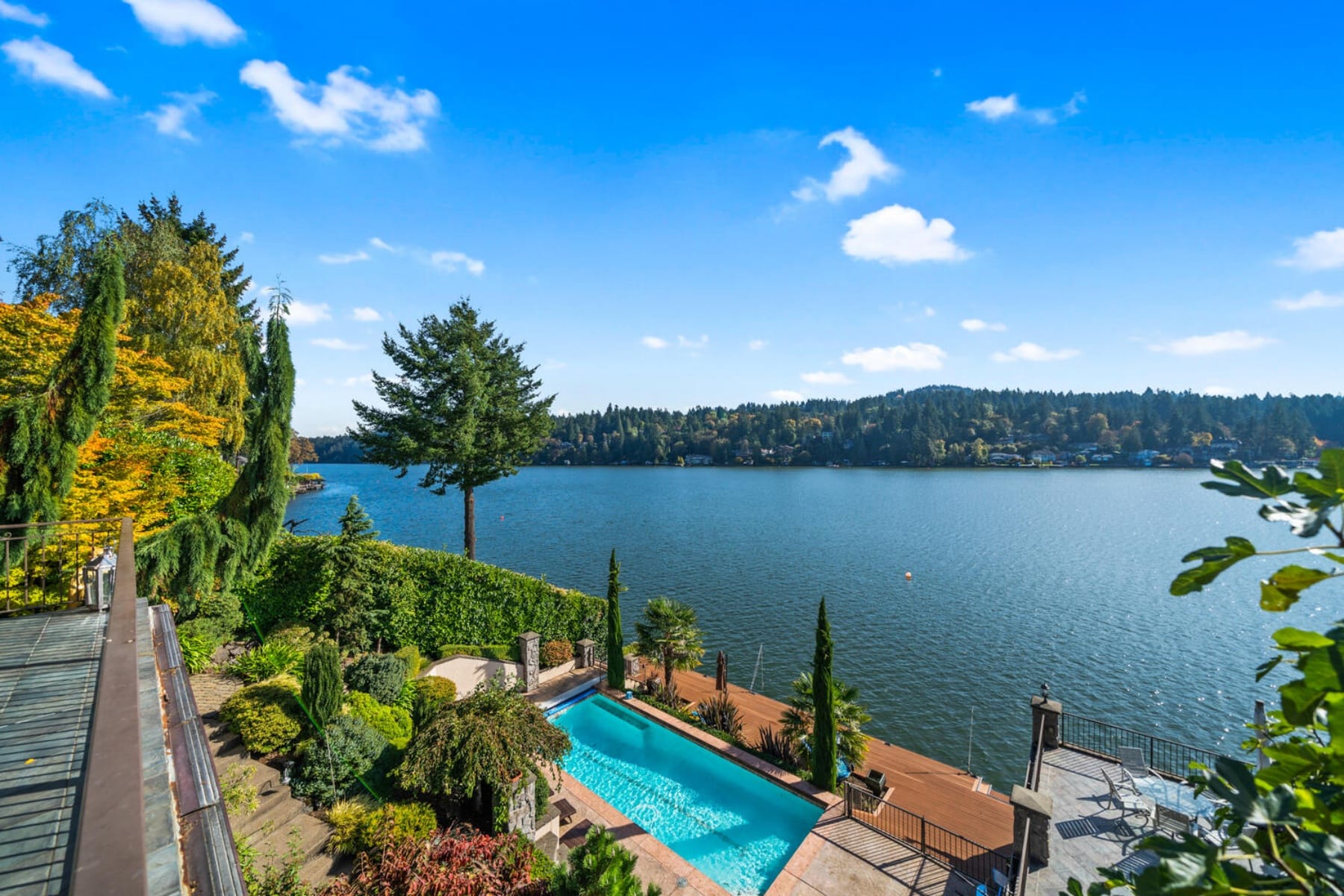 Stunning Lakefront Custom Estate on Oswego LakeGated and private with ~100' of lake frontage on the desirable north shore, this exceptional 5,554 SF custom home offers 5 beds and 5 baths with sweeping south-facing views. Walls of windows and a dramatic two-story great room open to expansive decks, creating seamless indoor-outdoor living.Gourmet kitchen with high-end appliances, spacious open floor plan, and abundant natural light throughout. Upper-level primary suite features panoramic lake views, private balcony, spa-like bath, and walk-in closet.Rare temperature-controlled swimming pool, multiple outdoor entertaining areas with patio heaters and spa tub, plus beautifully landscaped grounds. Oversized boathouse with lift and private dock for direct lake access.Lower level includes separate living quarters with 2 beds, 2 baths, living area, and kitchenette'ideal for guests or extended living. Additional features include 3-car garage, media room with wet bar, and whole-home audio.Premier lakefront living just minutes to downtown Lake Oswego.