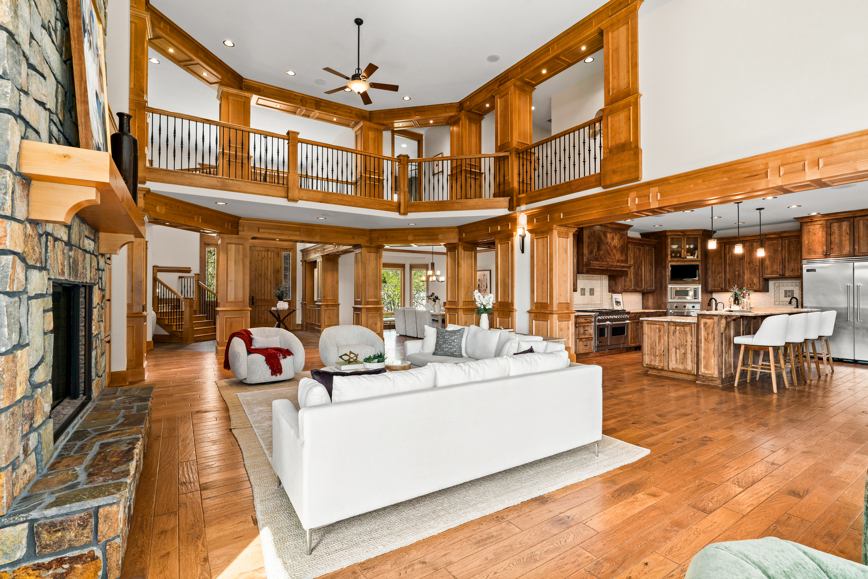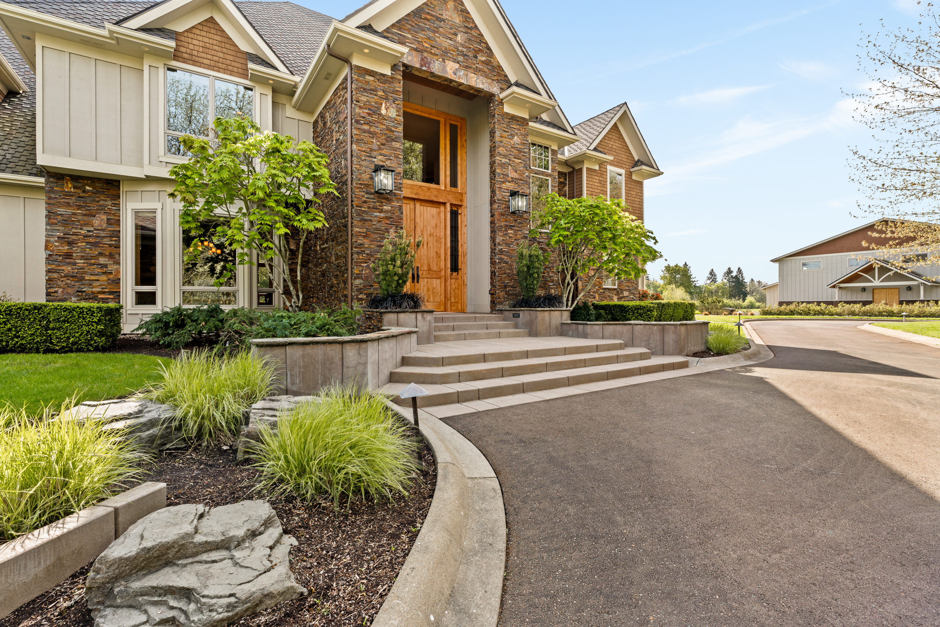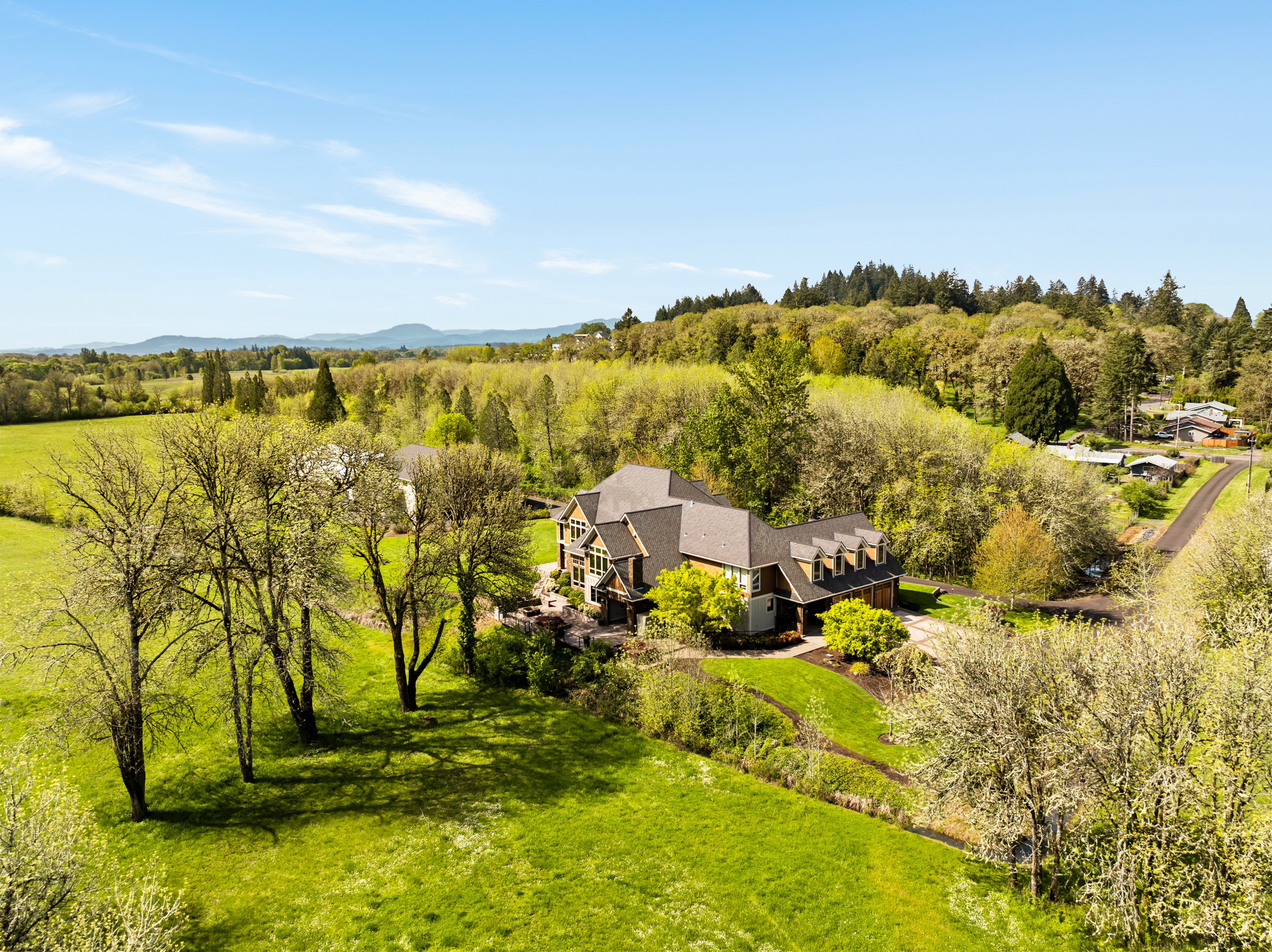 This intriguing and stately Craftsman-style estate features timeless luxury where sophisticated craftsmanship meets effortless grace in every detail. The residence welcomes you through grand custom double doors entering into a grand foyer framed by paneled columns and rich millwork, opening to vaulted ceilings extensive woodwork and a commanding floor to ceiling stone fireplace that anchors the living room. Spacious light filled rooms flow seamlessly for both intimate gatherings and sophisticated grand entertaining. The finishes throughout exude warmth and modern elegance. Precision engineered construction ensures the home feels enduringly secure and impeccably maintained- a true legacy of quality. Beyond the main home, the estate unfolds into a tranquil realm of recreation and possibility. A dedicated 4,000 sf auxiliary building serves as a fully equipped gym with basketball/volleyball court, weights and a variety of athletic equipment. Also, this area could be transformed into a versatile event center for memorable occasions. Nearby, a substantial covered horse arena and oversize shop support an active outdoor and active lifestyle. Expansive patios, outdoor kitchen, firepit and fireplace create seamless indoor-outdoor connections, inviting calm evenings under the stars or lively gatherings in complete privacy. This captivating property offers profound seclusion- its vast acreage providing a private and secure buffer from the world- yet remains conveniently close to downtown Corvallis, Oregon State University and many amenities. This property offers a stately haven that nurtures the mind, body and spirit. Is is more than a home: it is a captivating, self-contained world of tranquil elegance and boundless possibilities, crafted for those who seek the ultimate expression of gracious, intentional luxury.