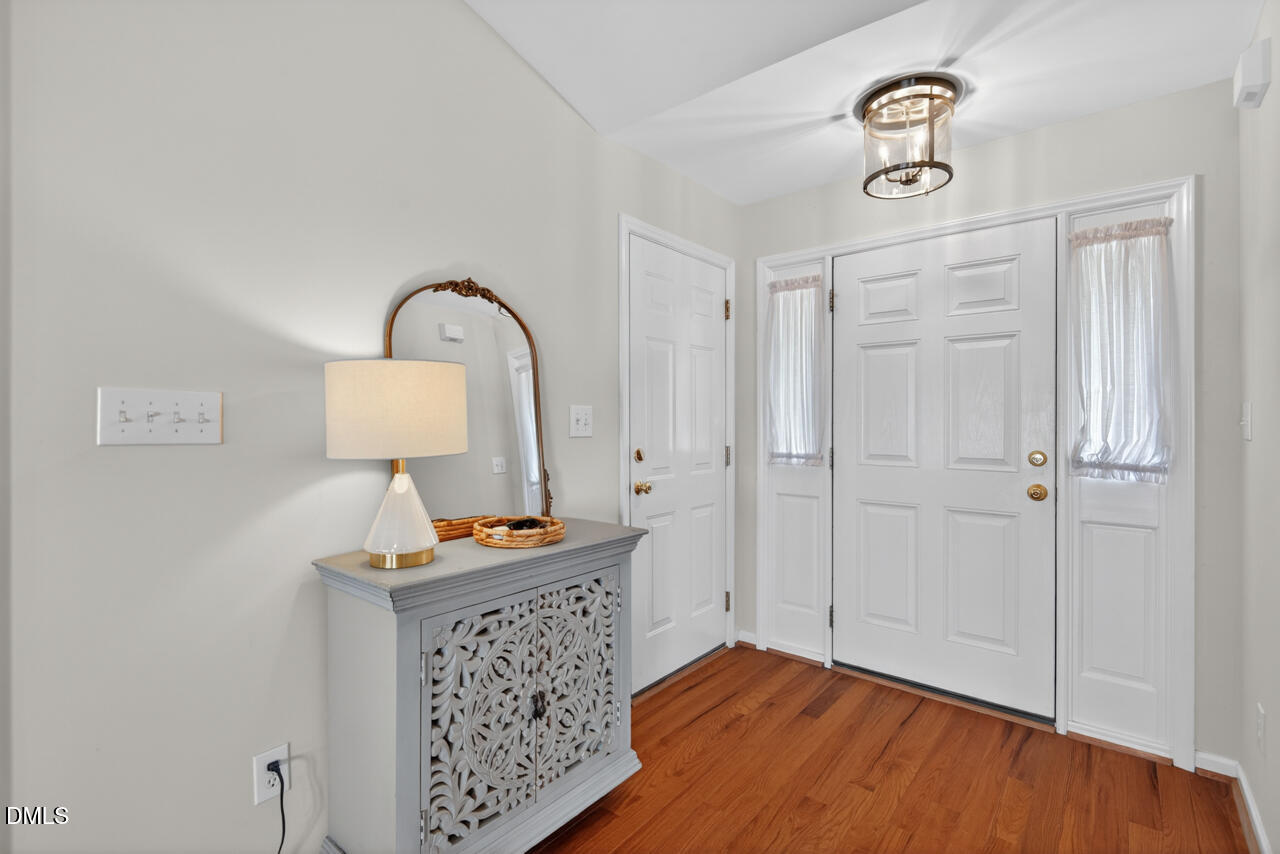 Life here feels simple in the best way. Located in the gated community of Lattamoor in North Durham, this 3-bedroom, 2-full bath ranch offers easy, low-maintenance living with a functional layout and inviting spaces. Vaulted ceilings and natural light give the main living area an open yet cozy feel. Hardwood floors run throughout, adding warmth and continuity from room to room. The kitchen is both practical and welcoming, with granite countertops, an island for gathering, and a natural connection to the dining and living areas that makes everyday living feel easy. The primary suite is set apart and maximizes space with its own vaulted ceiling and en-suite bathroom with accessibility features for ease of use and comfort. Two additional bedrooms offer flexible space for guests, work, or whatever the next season brings. The screened porch extends the living space outdoors, offering a place to enjoy fresh air and a manageable yard without the added upkeep. The HOA maintains the roof, foundation, and landscaping, creating a more simplified approach to homeownership. The roof was replaced in 2020. Other more recent updates include a new refrigerator and water heater (2025), crawlspace improvements with a dehumidifier, and added critter control measures. Convenient to North Durham amenities, with new Publix and Chipotle just a short distance from the community gates, this home offers a balance of comfort and ease in a well-kept community.