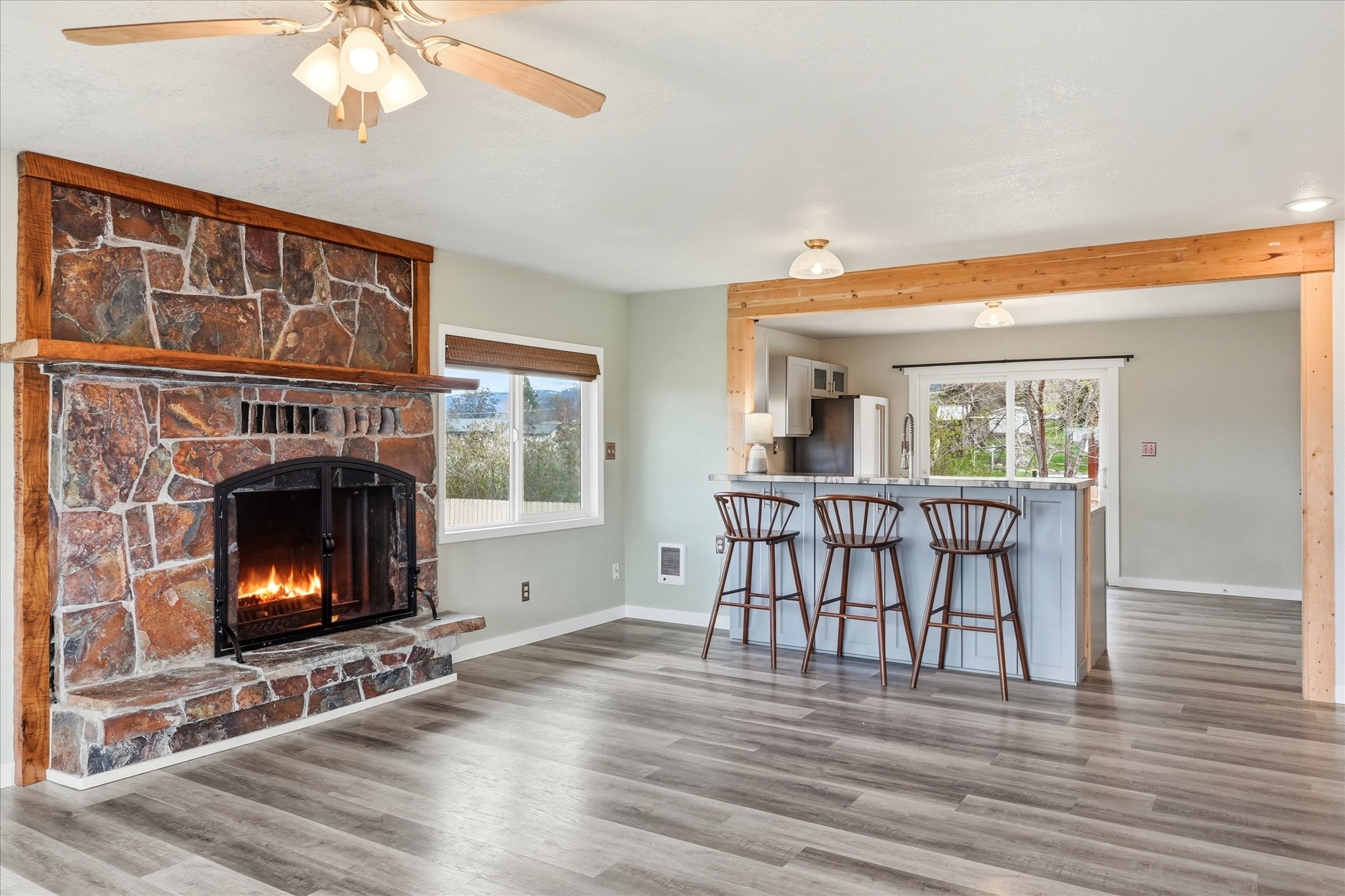 Tucked away at the end of a paved street, this spacious 5-bedroom, 2-bath home offers privacy, lake views, and a convenient in-town Polson location. Thoughtfully updated with fresh new paint throughout, the home blends comfort and functionality with room to grow. The kitchen features stylish Café appliances, adding a modern touch to the heart of the home, along with added outlets designed for portable A/C units to help keep things comfortable during warmer months. The main living areas are warm and inviting, while the fully walkout basement offers incredible flexibility with the potential for a separate living space, guest quarters, or multi-generational living. Step outside to enjoy the fenced yard - perfect for pets, play, or entertaining - and an updated deck where you can take in the lake views and relax on warm Montana evenings. With its combination of privacy, updates, views, and versatile living space, this property is a rare find in town.