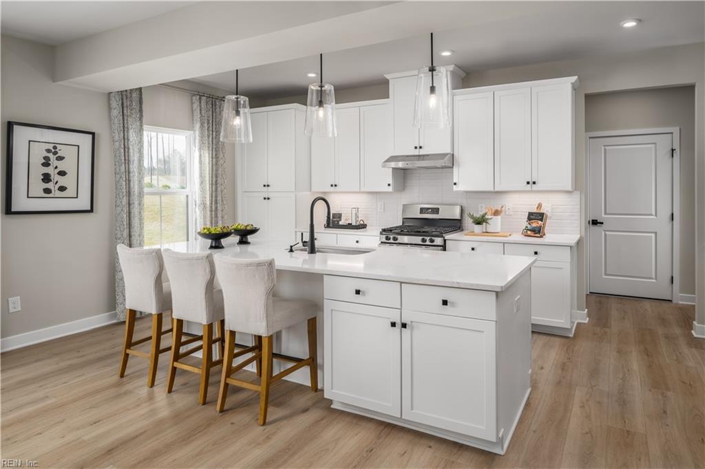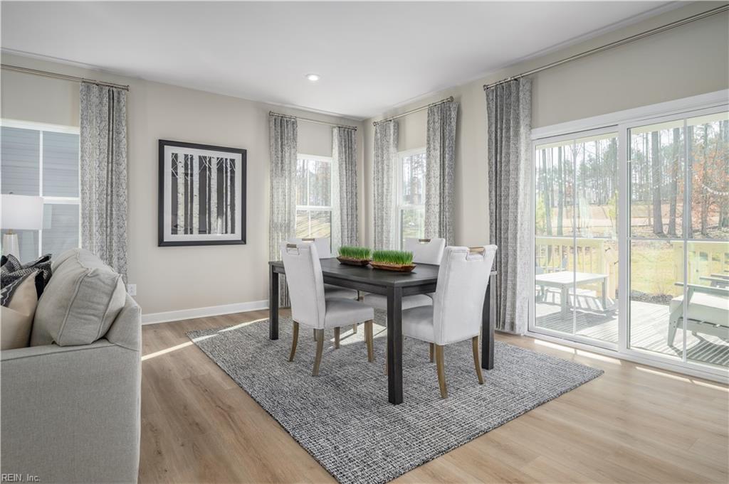 Limited opportunity - don't miss this Hudson at Fost offering 5 bedrooms and 3 full baths, including a first floor bedroom with full bath ideal for guests or family living. An open, light filled layout creates easy everyday comfort, with a kitchen that flows seamlessly into the main living areas. Upstairs features bedrooms with livability and the option for an included 5th bedroom or versatile loft. Our home special includes extended LVP flooring and a premium homesite. Enjoy resort style amenities including pool, clubhouse, pavilion, dog park, fire pit, and bike path. Prime Moyock location near the VA/NC border - act quickly.