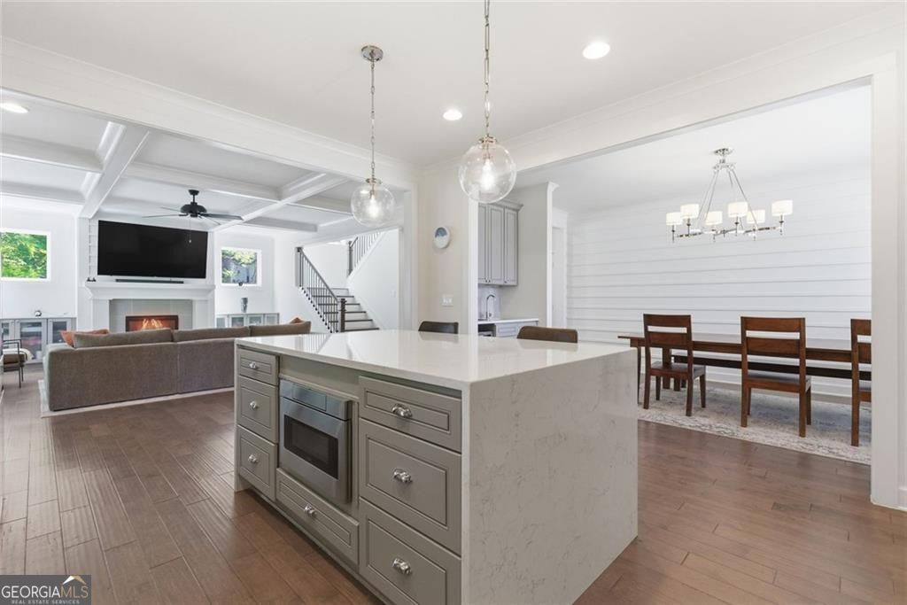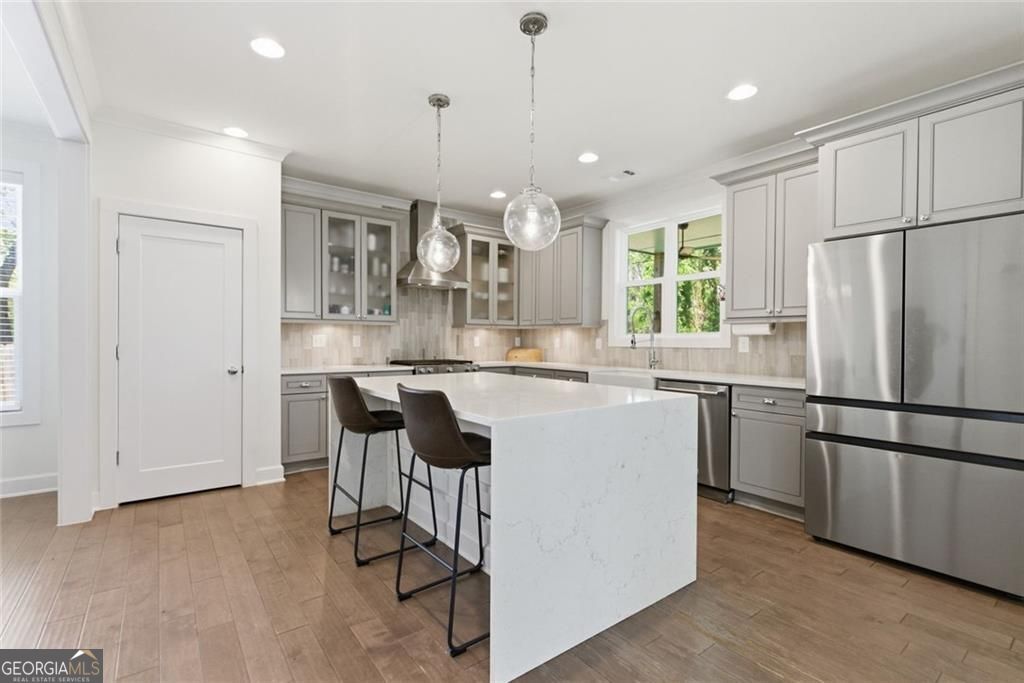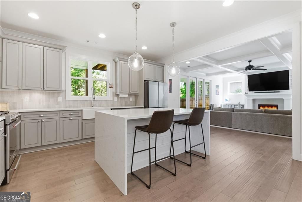 Welcome home to a place that feels like it was designed for the way you truly want to live. Just minutes from the energy and charm of East Atlanta Village, this craftsman-style residence offers not only beautiful design, but a lifestyle centered around comfort, connection, and effortless everyday living. Sunlight pours through wide, open spaces, warming the hardwood floors and creating a sense of calm the moment you step inside. The main level flows naturally-open enough for gatherings, yet thoughtfully defined so every space feels intentional. Whether you're hosting friends for dinner or enjoying a quiet morning coffee, the home adapts to the moment. At the heart of it all is the chef's kitchen, where a gas stove, stainless steel appliances, oversized island, and sparkling quartz countertops invite you to cook, gather, and linger. It opens to a spacious dining room with a wet bar-perfect for celebrations, game nights, or simply unwinding at the end of the day. The family room, with its custom built-ins, coffered ceilings, and cozy fireplace, becomes the place where memories naturally collect. There is a guest room with an adjacent bathroom for company or an office. Slide open the doors to the covered rear patio and extend your living space outdoors. Here, you can enjoy dinner al fresco, watch kids or pets play in the private backyard, or simply breathe in the quiet of your .4 acre lot. Upstairs, the primary suite feels like a personal retreat-your own sanctuary at the end of a long day. A massive walk-in closet, spa-like bath, and a private covered porch with vaulted ceilings create a space that feels both luxurious and deeply peaceful. Two additional bedrooms upstairs offers room to grow, host, or create the spaces you've always wanted. With a two-car garage, a level fenced yard, and easy access to the highway, this home blends convenience with comfort. And with EAV, Kirkwood, Edgewood, and Decatur just minutes away, you're always close to local restaurants, parks, shops, and the vibrant community that makes this area so special. This isn't just a home-it's a lifestyle. One that invites you to slow down, spread out, entertain freely, and enjoy the best of in-town living!