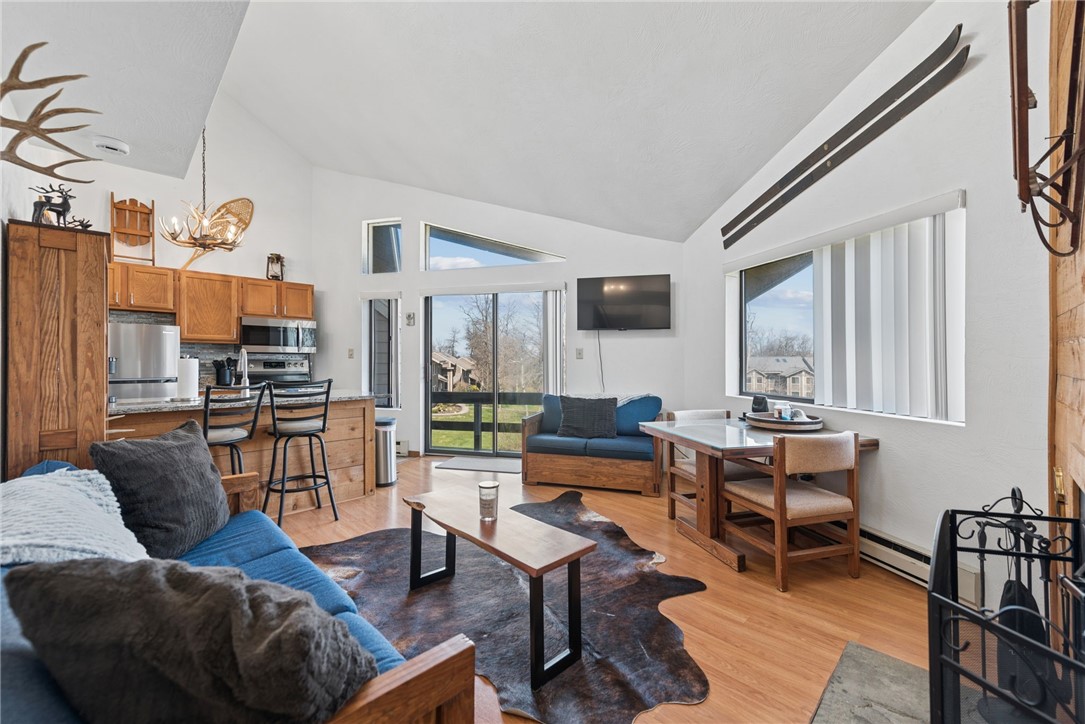 Tastefully updated Hidden Valley Condo only steps from the Ski Slopes, Swimming Pool, Tennis/Pickleball courts and trails! One Bedroom with Loft condo is turnkey and ready to be your mountain escape. Very well cared for with updates throughout including laminate flooring, granite counter tops, washer/dryer combo, newer appliances, new vanities & light fixtures and more. Being an upper level, it offers high ceilings to make the space feel more open and adds additional windows for light. The loft makes a great second sleeping area or bonus space. Hidden Valley has so much to offer from golfing, biking, hiking, x-country skiing, swimming all your recreational and outdoor interests are covered. Enjoy the nearby State Parks & Forests with endless trails to explore. The HOA takes care of the exterior maintenance and lets you spend your time around the mountain. Hurry and make this your very own mountain getaway or investment property.
