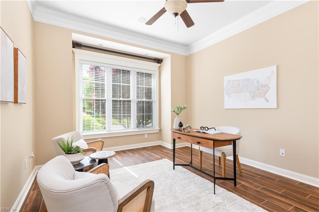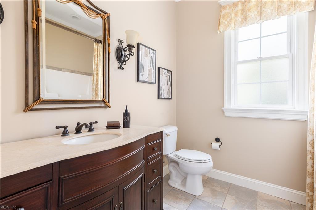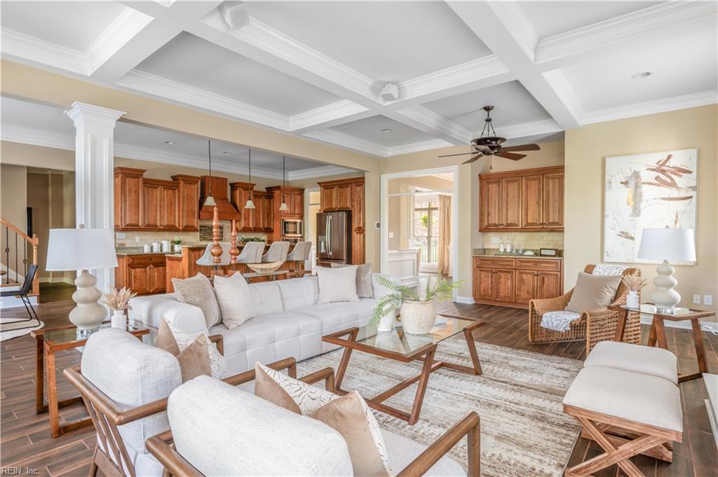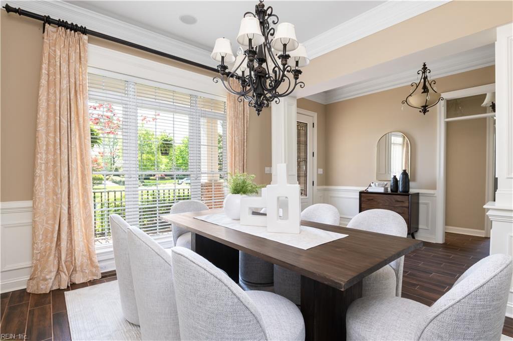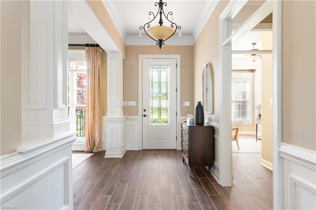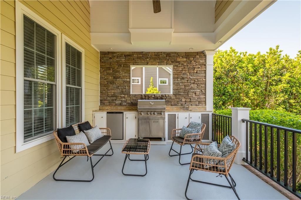 Home-a-Rama custom-built Executive home offering 6 bedrooms & 5 full baths with a thoughtfully designed, spacious layout. A gourmet kitchen with high-end finishes opens to the main living areas, ideal for both everyday living & entertaining. The first-floor primary features a custom bath, double shower & award-winning walk-in closet w/extensive built-ins. Great for multi-generational living, an additional first-floor bedroom or office includes an attached full bath. Upstairs includes a second primary suite, 3 more bedrooms, and an expansive games room with bar, pool table, and projection screen. Outdoor living is impressive with a covered front porch, expansive patio, outdoor kitchen, & fenced yard with water feature. 3-car garage w/pull-down screening, high ceiling & glow-in-the-dark highlighted spacing. Conveniently located near shopping, dining, Bon Secours & Sentara hospitals, and military bases.