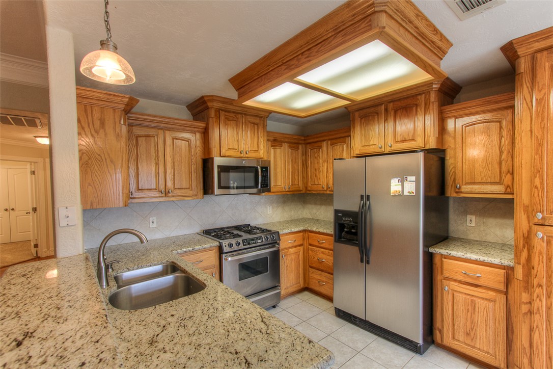 Gorgeous and very well-maintained home in Edelweiss Gartens. Tons of upgrades that you would like in a house - recently installed new floors in living room, hallway and secondary bedrooms, high ceilings, elegant master bedroom that leads to huge master bath which houses separate shower, jetted tub & separate vanities. Corner stone fireplace in large living room, granite counter tops in kitchen, stainless steel appliances, custom cabinets, tile back splash, spacious bedrooms with plenty of closet space & tall windows make this house light & bright. Gutters, automatic sprinkler system and nicely landscaped yard are some of additional features. Washer/ Dryer and refrigerator included. Neat and clean ready to move in!!