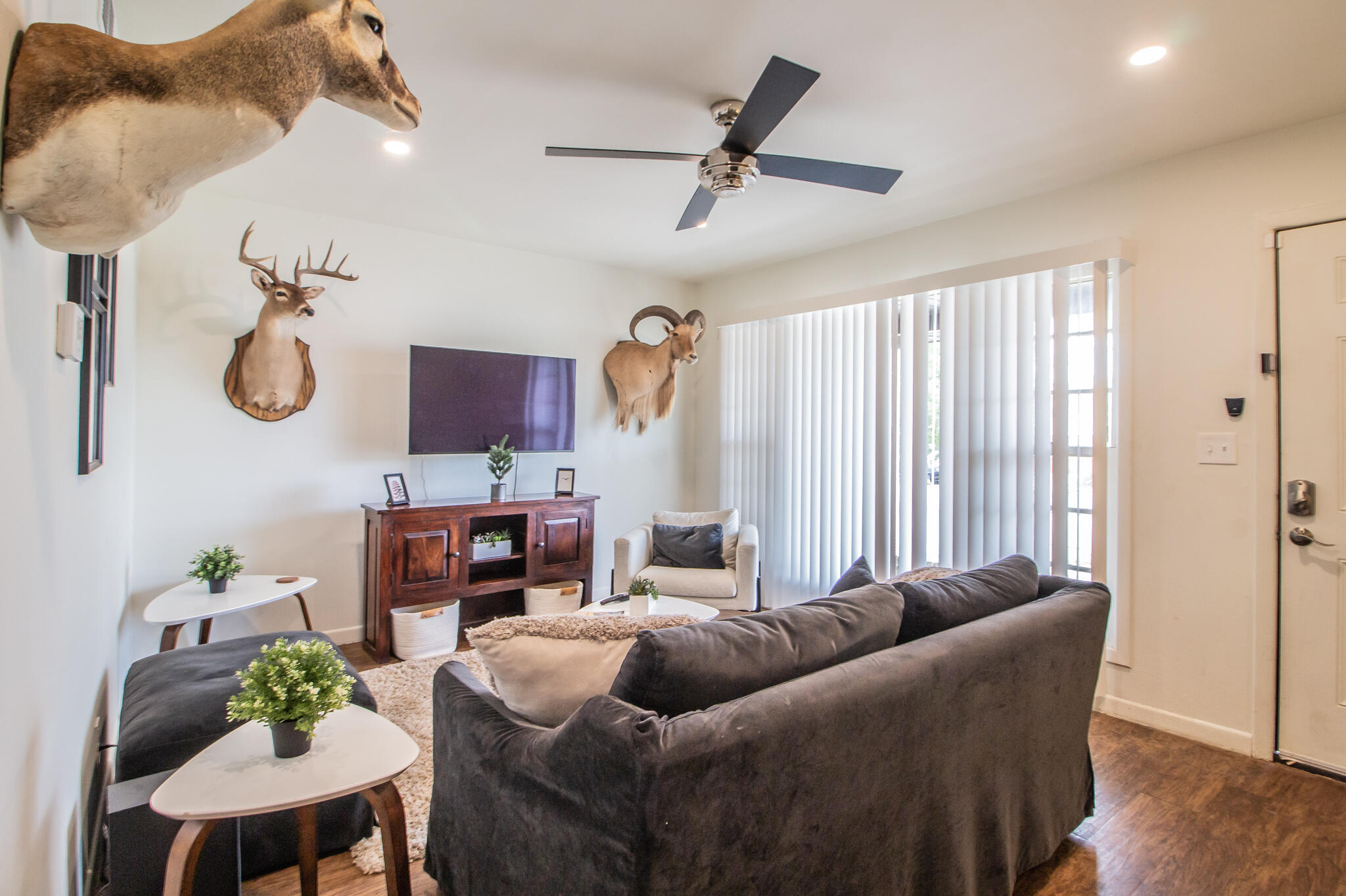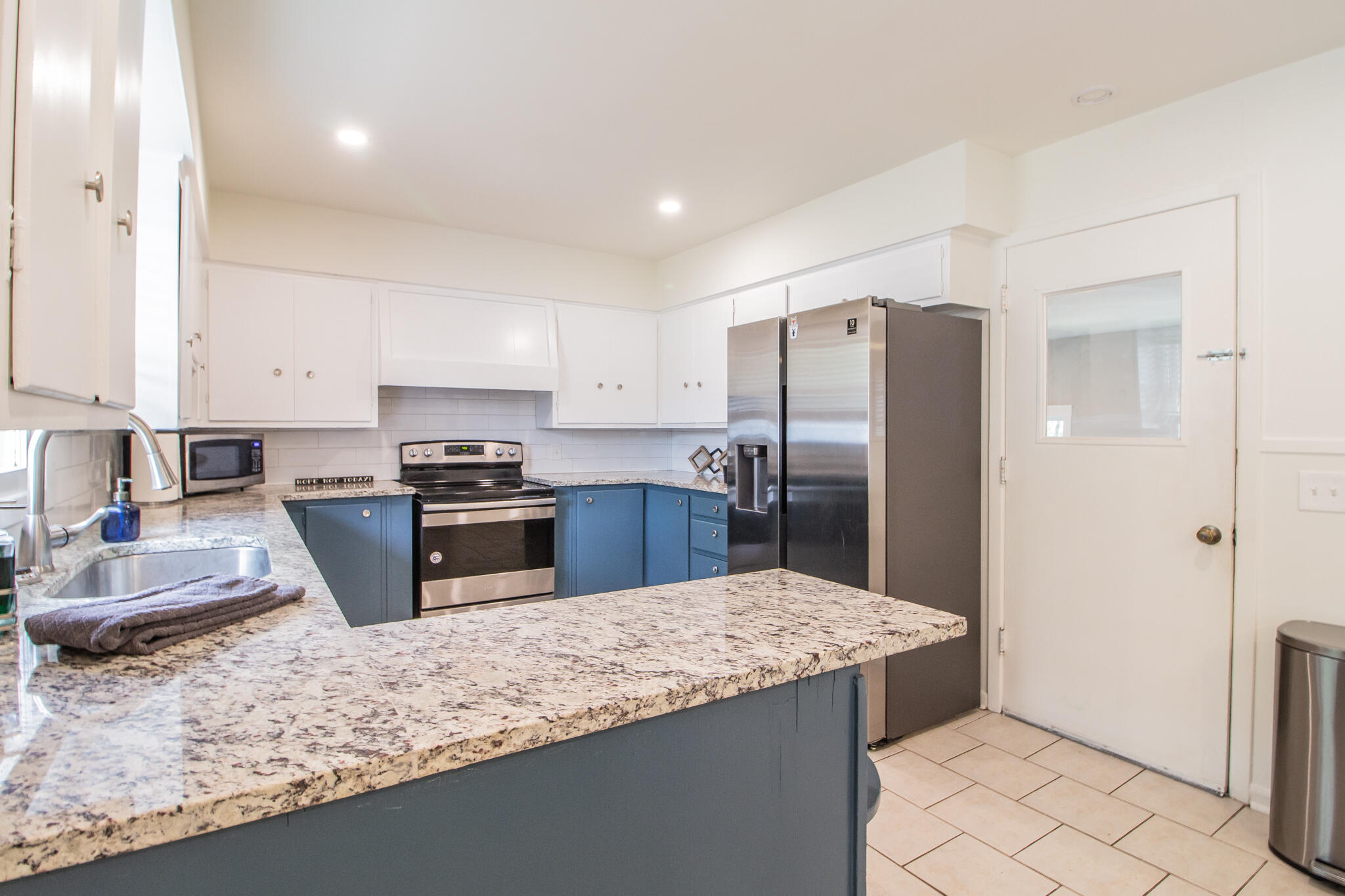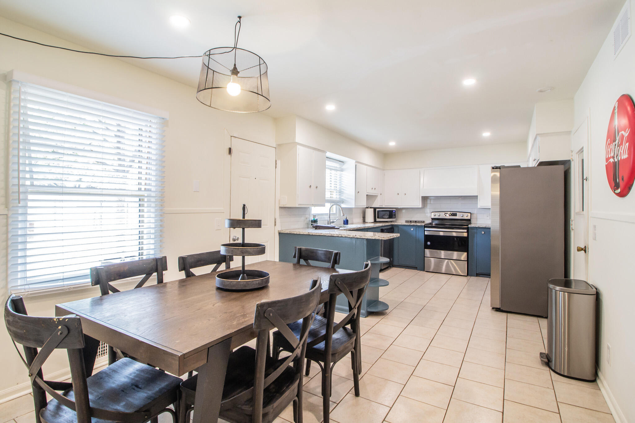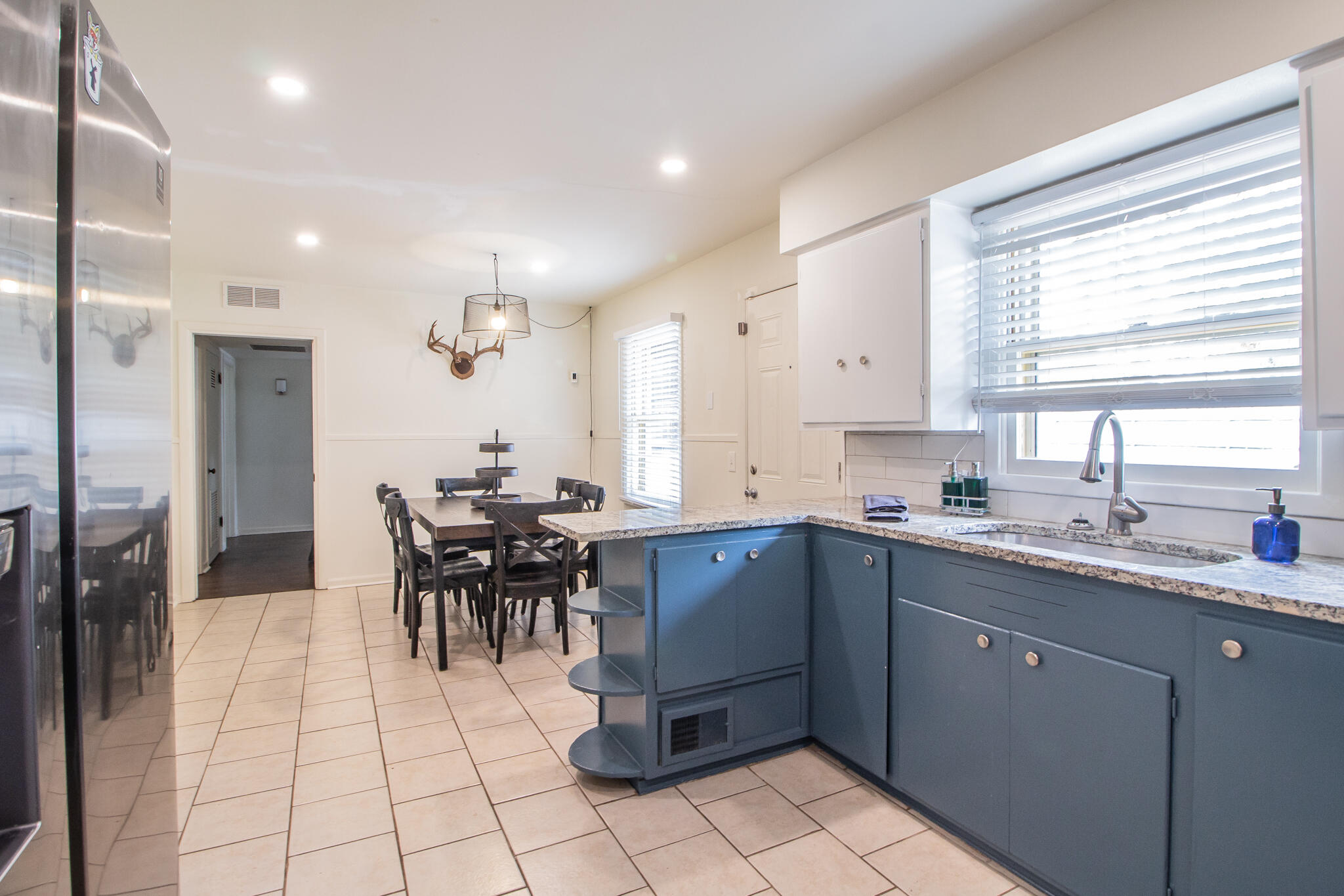 Located on a spacious corner lot, this lovely 3/2 home is updated and ready for new owners! Enter home to a cozy living area adjacent to kitchen featuring stainless appliances, granite countertops, designer colors in cabinetry, tile flooring and a generous dining space. Three bedrooms including primary bedroom with updated bathroom featuring large tiled shower and craftsman vanity. Other two bedrooms share spacious hall bath updated with tub/shower combo and craftsman vanity. Vinyl plank flooring throughout living room, bedrooms and bathrooms reflects a more updated look and easy care. Two car garage has been enclosed to create a wonderful large entertainment room with painted concrete flooring. What a fantastic room for watching TV with friends and family, working out with large equipment or perhaps playing a game of pool or ping pong since there's plenty of room! Large backyard with newer metal fencing providing privacy to home. This home is move-in ready for anyone wanting convenience to the heart of Lubbock, Texas Tech, retail, restaurants and other amenities. Great investment property too!