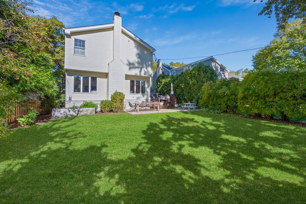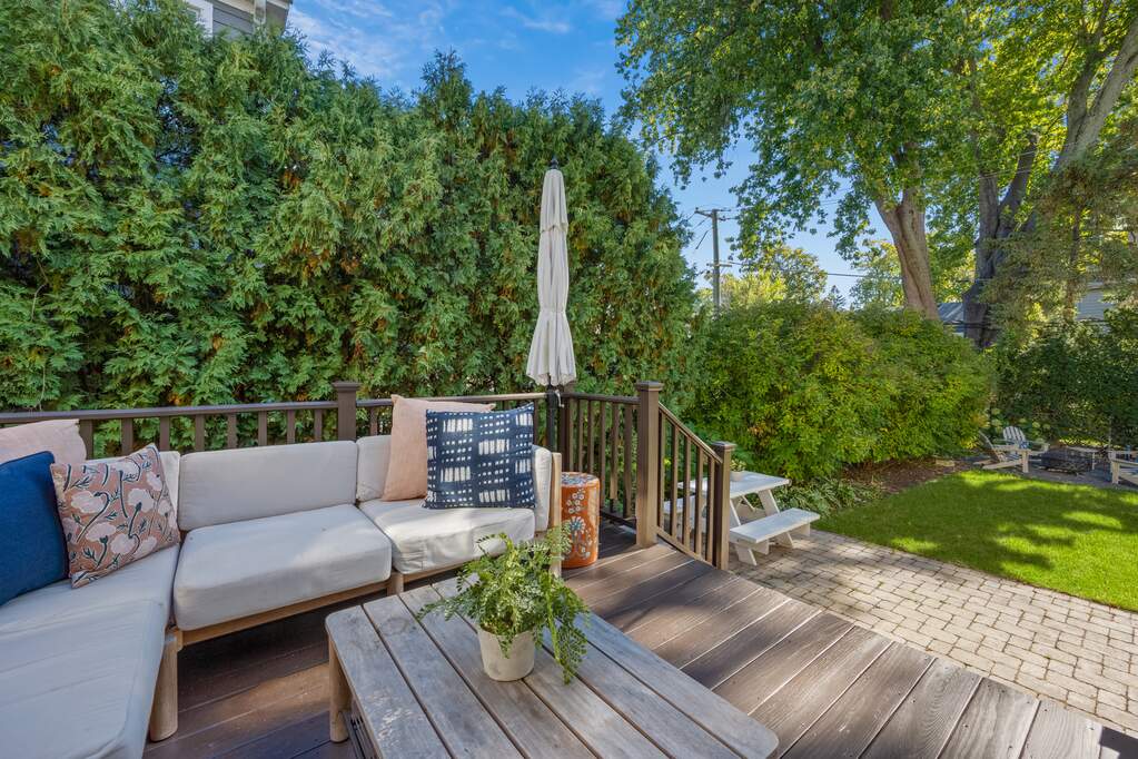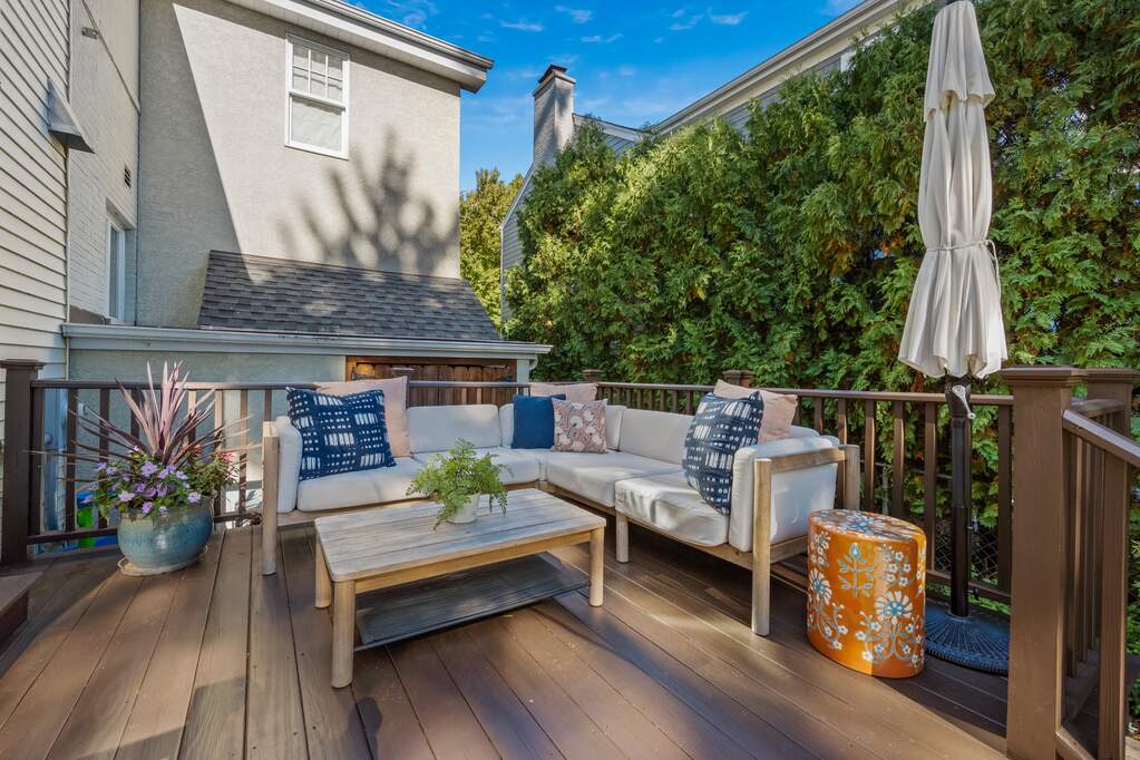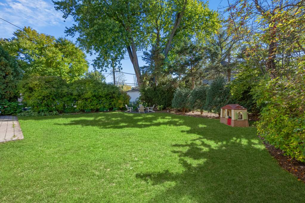 Located in the heart of Kenilworth Gardens, this move-in-ready five-bedroom home offers a functional layout with all bedrooms on the second floor. Expanded and updated in 2009, the first floor features a spacious living room, dining room, and a well-designed kitchen with an eating area that opens to a bright family room, all overlooking a professionally landscaped backyard with deck and patio. An oversized attached one-car garage connects to a convenient mudroom. The second floor includes five bedrooms: a primary suite, a secondary en-suite bedroom, and three additional bedrooms sharing a hall bath, along with ample closet space throughout. The primary suite features vaulted ceilings, a large walk-in closet with custom organization, and a well-appointed bath with double sinks and a shower. The finished basement includes a recreation area, play space, and storage. Situated on Greenwood, known for its strong sense of community, and just a short walk to the Kenilworth Metra, this home is also located within the Harper School District.