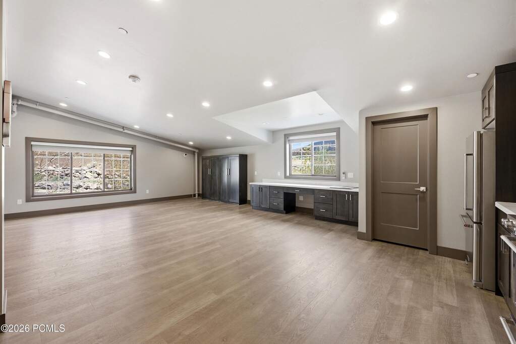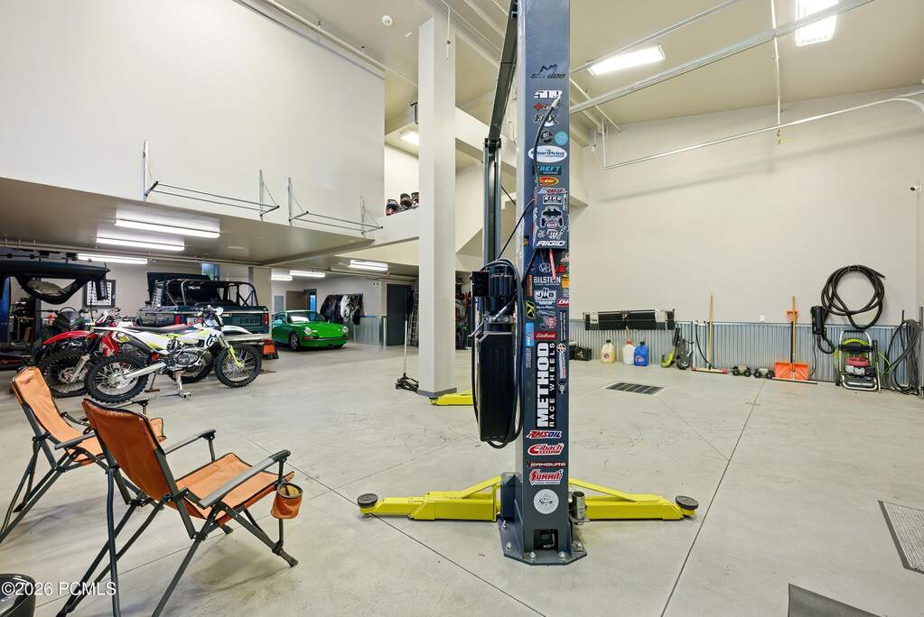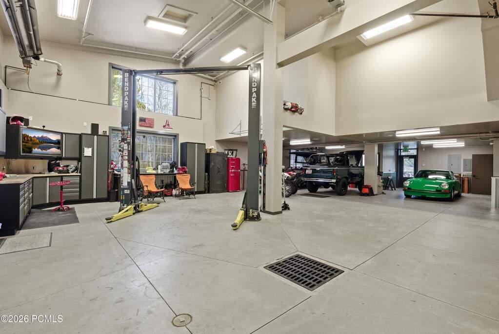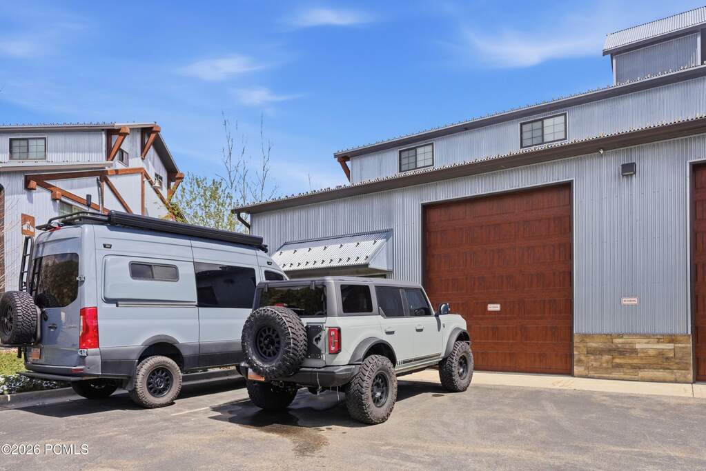 Rare opportunity to own a premier end-unit mixed-use flex space in the highly sought-after Park East 1 development in Kamas, Utah, ideally located right on the Park City/Kamas border. Offering 3,773 square feet and over 40 permitted residential and commercial uses, this property is perfectly suited for entrepreneurs, investors, or anyone seeking the ultimate live-work lifestyle. The main level is a highly functional and versatile space, featuring an expansive shop or warehouse with a 14-foot oversized garage door, ideal for RVs, boats, or large equipment. Outfitted with premium Baldhead cabinetry from Bend, Oregon, and a commercial-grade auto lift, this level is turnkey for hobbyists or business operations. It also offers excellent potential to be converted into professional office space, providing even greater flexibility for a variety of uses. The second level showcases a bright, open-concept layout complete with a full bath, kitchen, and custom cabinetry, making it perfect for a showroom, office, or guest quarters. A cleverly integrated Murphy bed is seamlessly built into the luxury cabinetry, offering added flexibility without compromising aesthetics. Lock-off potential creates an excellent opportunity for supplemental rental income. The third level serves as a private residential retreat, featuring a spacious kitchen with a high-end appliance package, a generous bedroom, full bath, and a comfortable living area. Whether used as a full-time residence or a lock-and-leave second home, this space delivers both comfort and convenience. Additional highlights include 3-4 dedicated owner-reserved parking spaces and a premium end-unit location offering added privacy and accessibility. Ideally situated less than 10 minutes from Deer Valley parking and Jordanelle Reservoir access, this property offers unmatched versatility, lifestyle appeal, and strong income potential in one of the most desirable locations in the Wasatch Back.