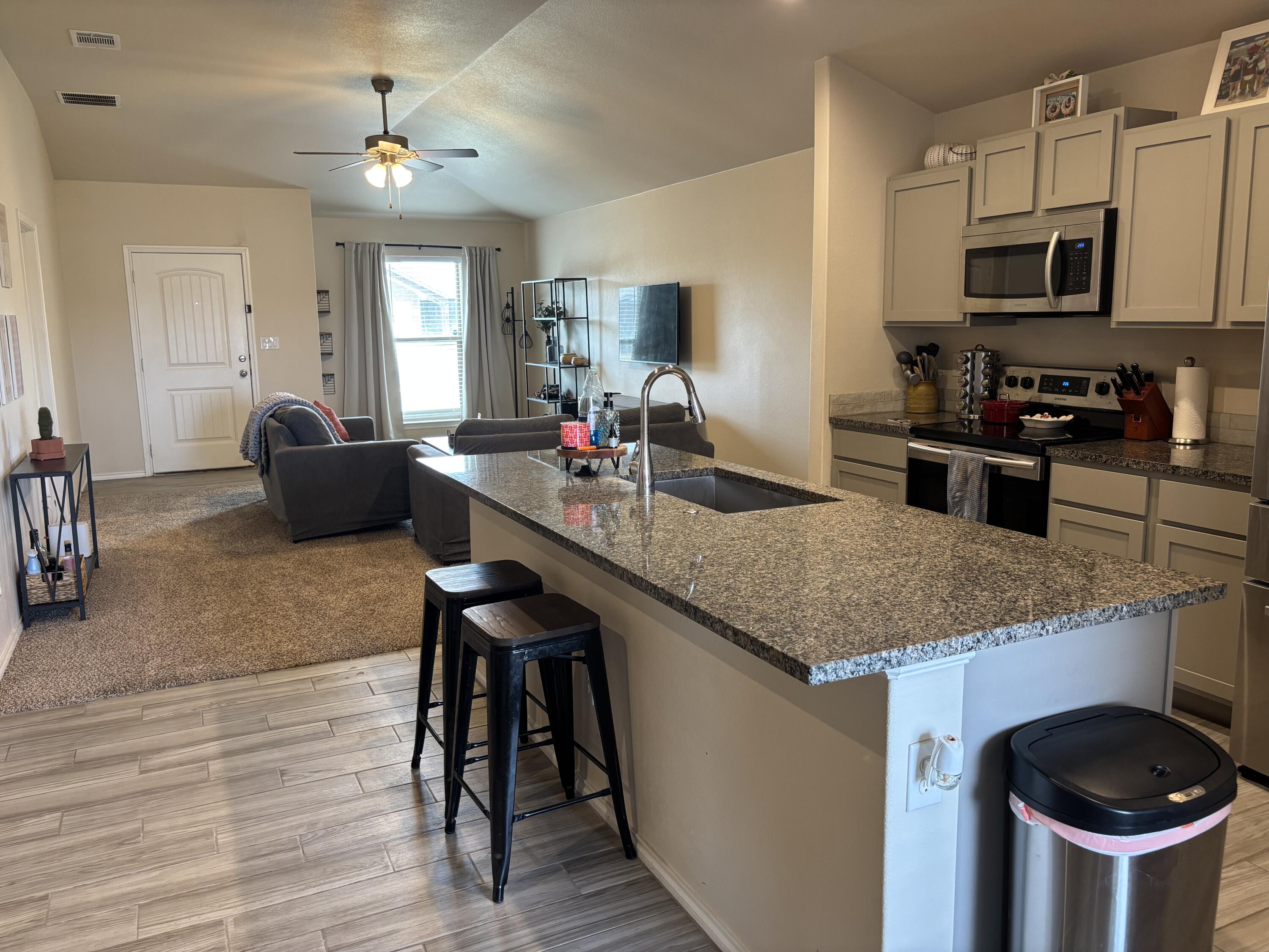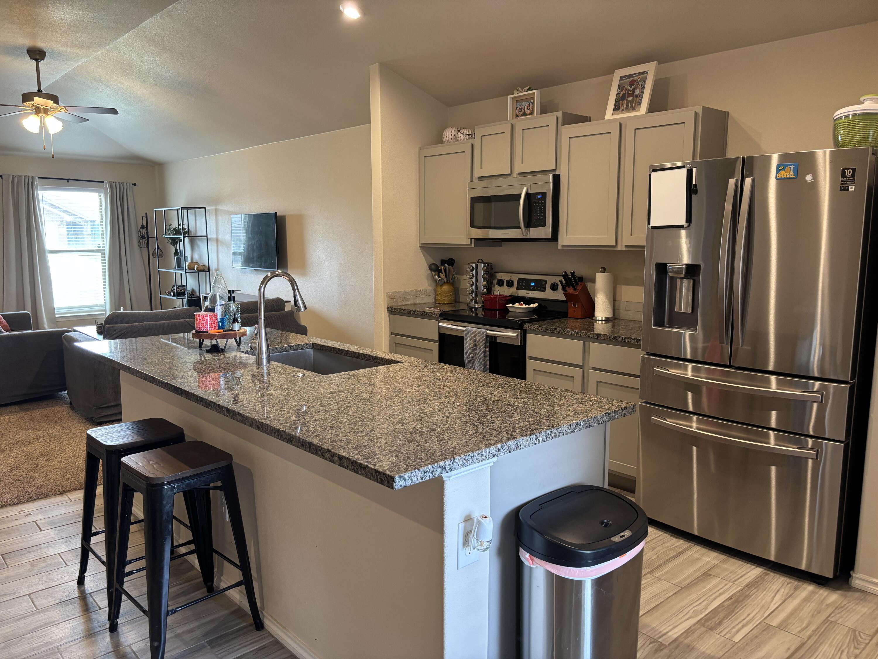 Adorable and affordable is this 3 bedroom 2 bath 2 car garage in Milwaukee Ridge! This home is move-in ready and will be vacant the end of May. Open floor plan with* beautiful wood-like tile floors,*granite counter tops throughout, *isolated master suite with large walk-in closet,*Kitchen has a large breakfast bar/island and stainless steel appliances*separate dining area*spacious guest bedrooms. The oversized backyard with a sprinkler system will host many backyard barbeques and family get togethers. Located on a quiet cul-de-sac but minutes away from shopping and restaurants. All of this and in the award winning Frenship School district. This is a great home in a family oriented community with lots of amenities. Don't miss it!