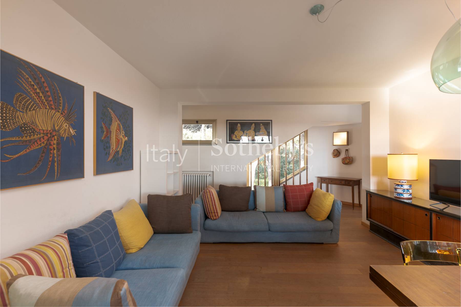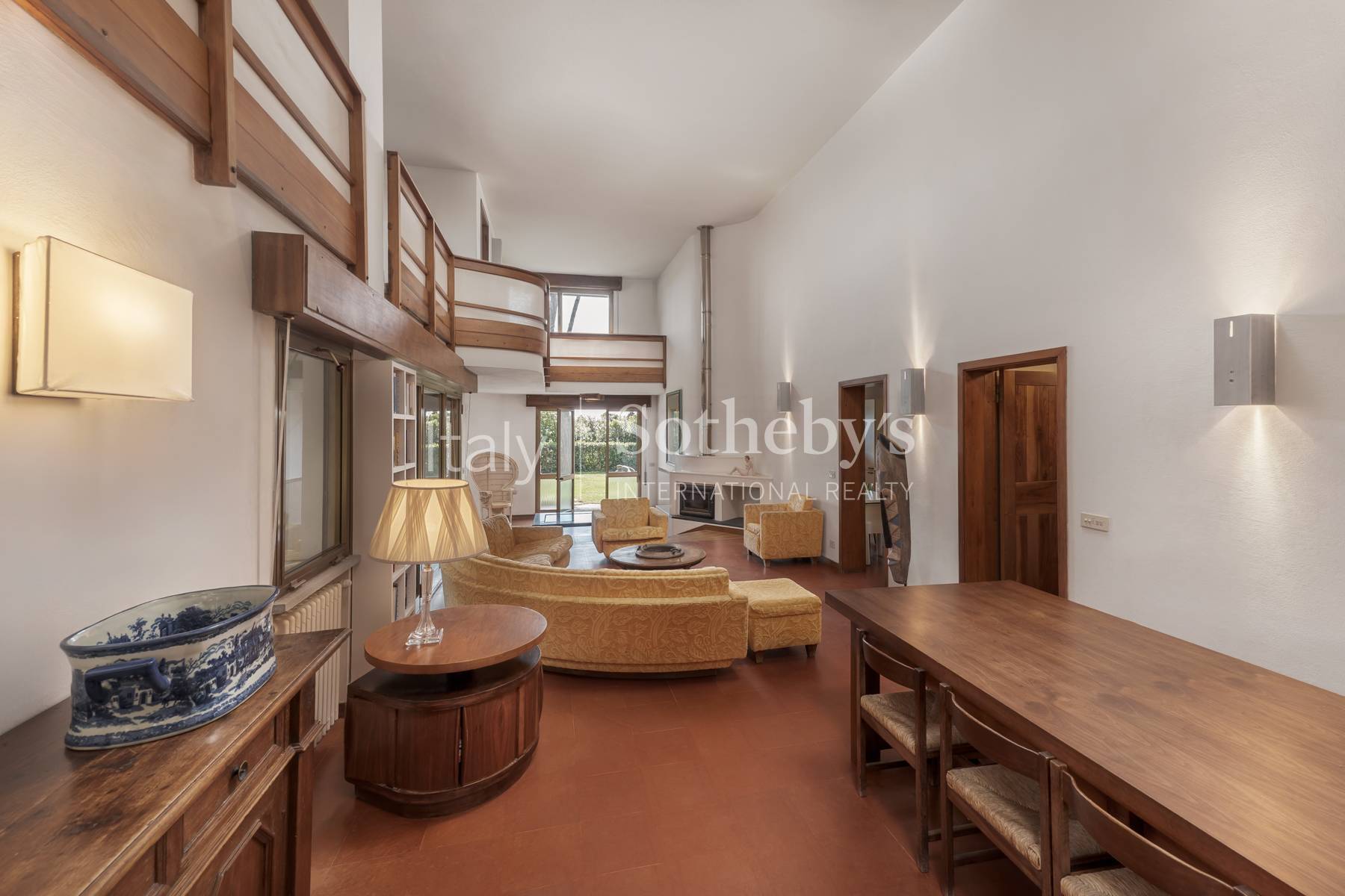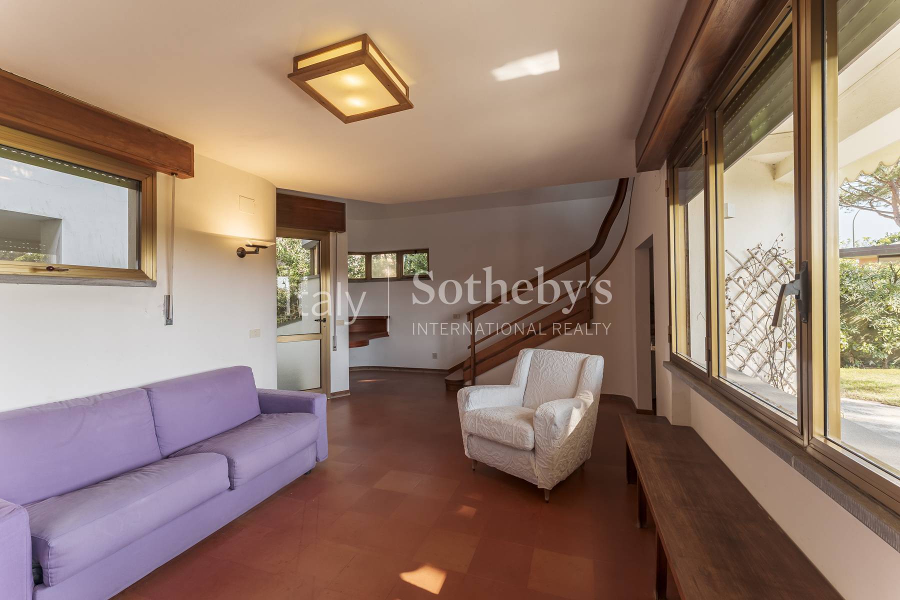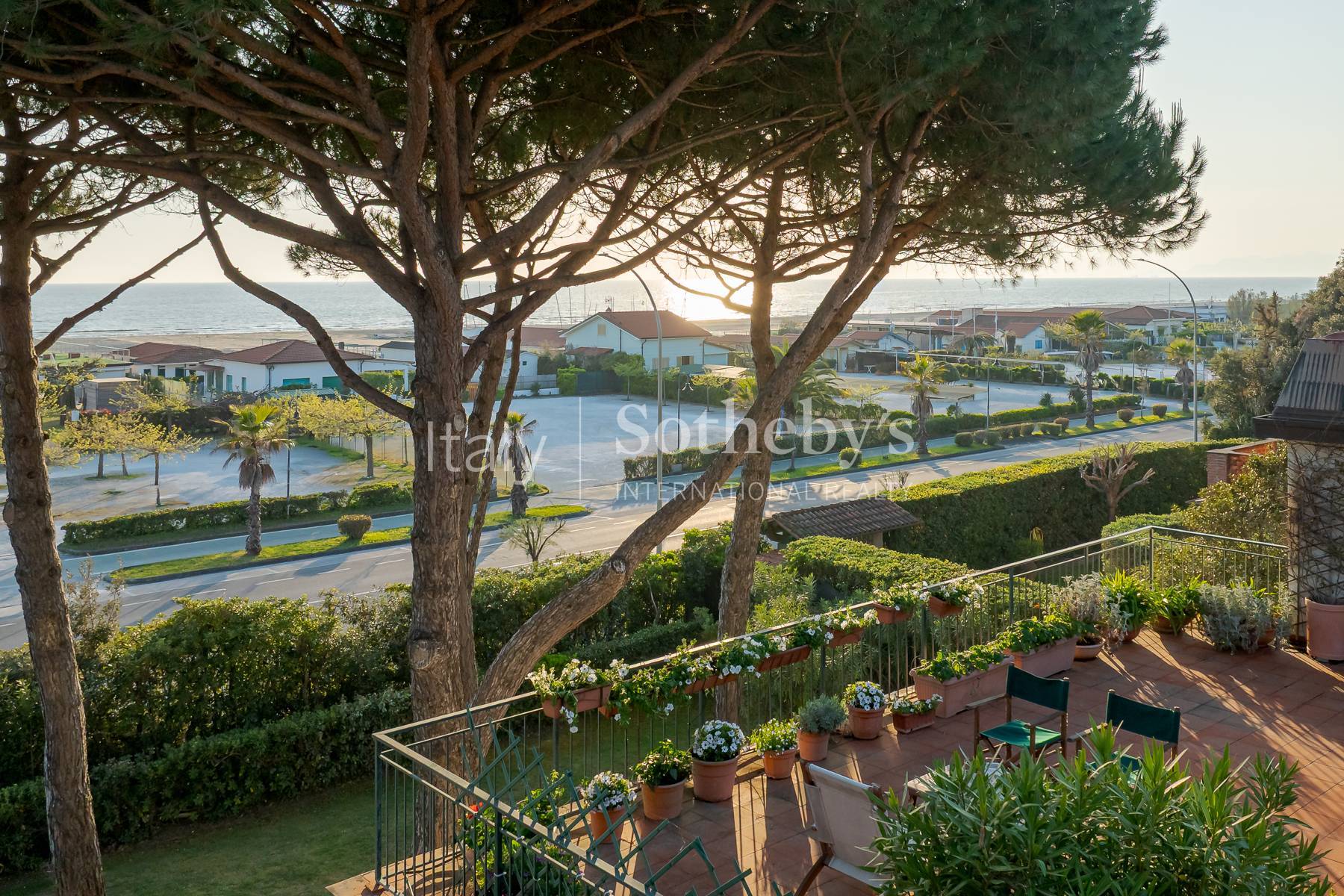 This seafront villa, set in a rare and highly sought-after location on the border between Forte dei Marmi and Marina di Pietrasanta, was designed by Giovanni Michelucci. It stands out for its architectural language of extraordinary refinement, where form and function merge into a harmonious and deeply human balance. The property's defining feature is the striking double-height dining and living area, the true heart of domestic life, along with the distinctive organization of the interior spaces.The architect moves beyond conventional layouts through a fluid and dynamic sequence of rooms, designed around family living and enhancing the quality of everyday life within a setting of exceptional natural beauty.The villa offers a total gross surface area of 511 sqm, divided into 21 rooms, while the garden extends over 1,200 sqm, allowing for the construction of a swimming pool.