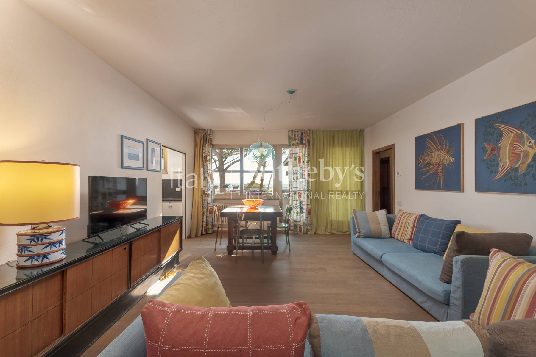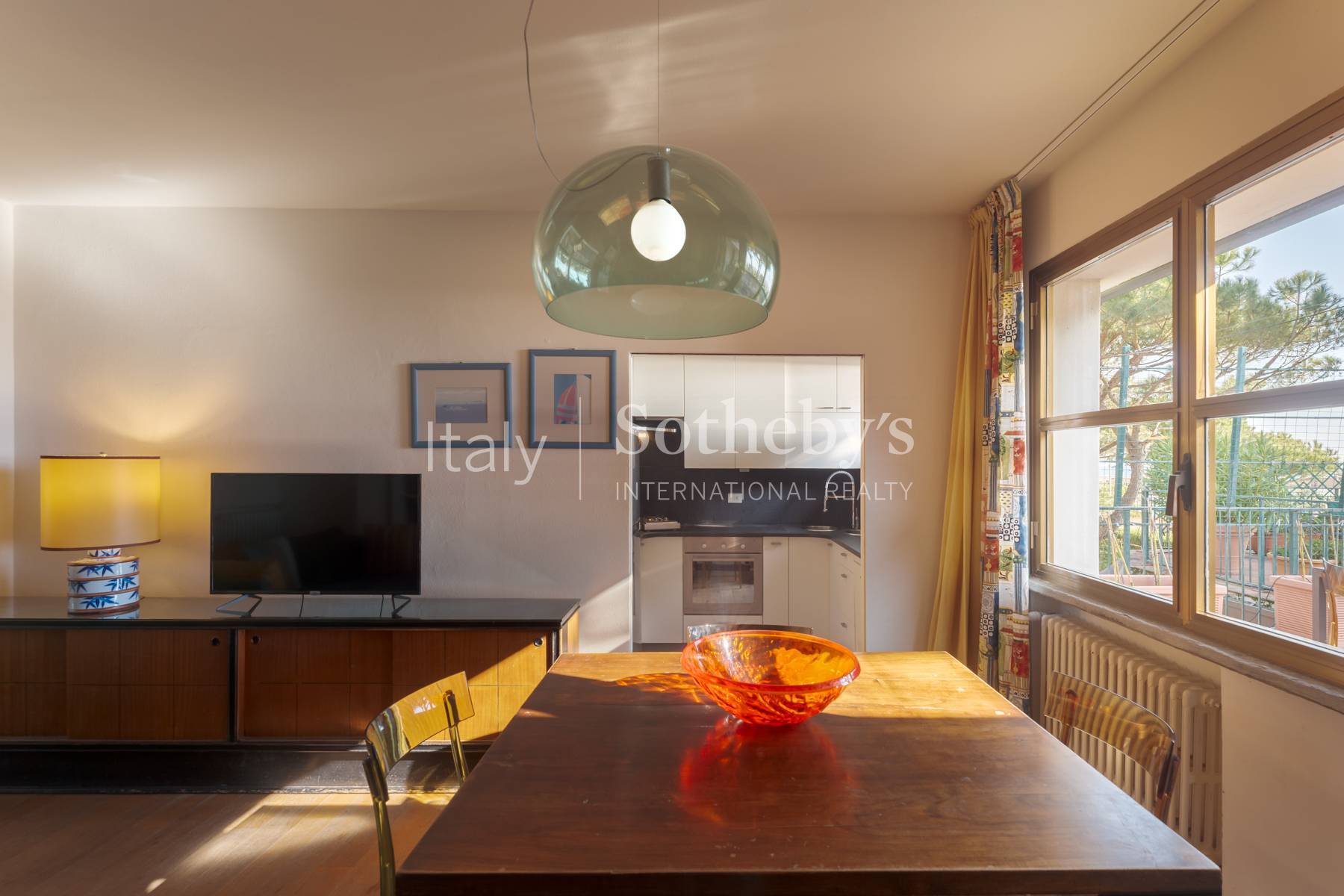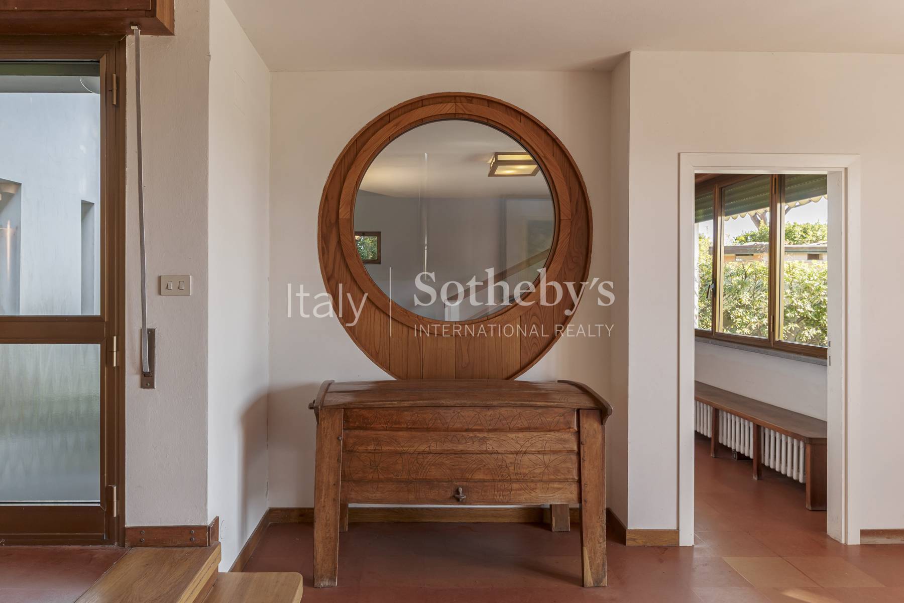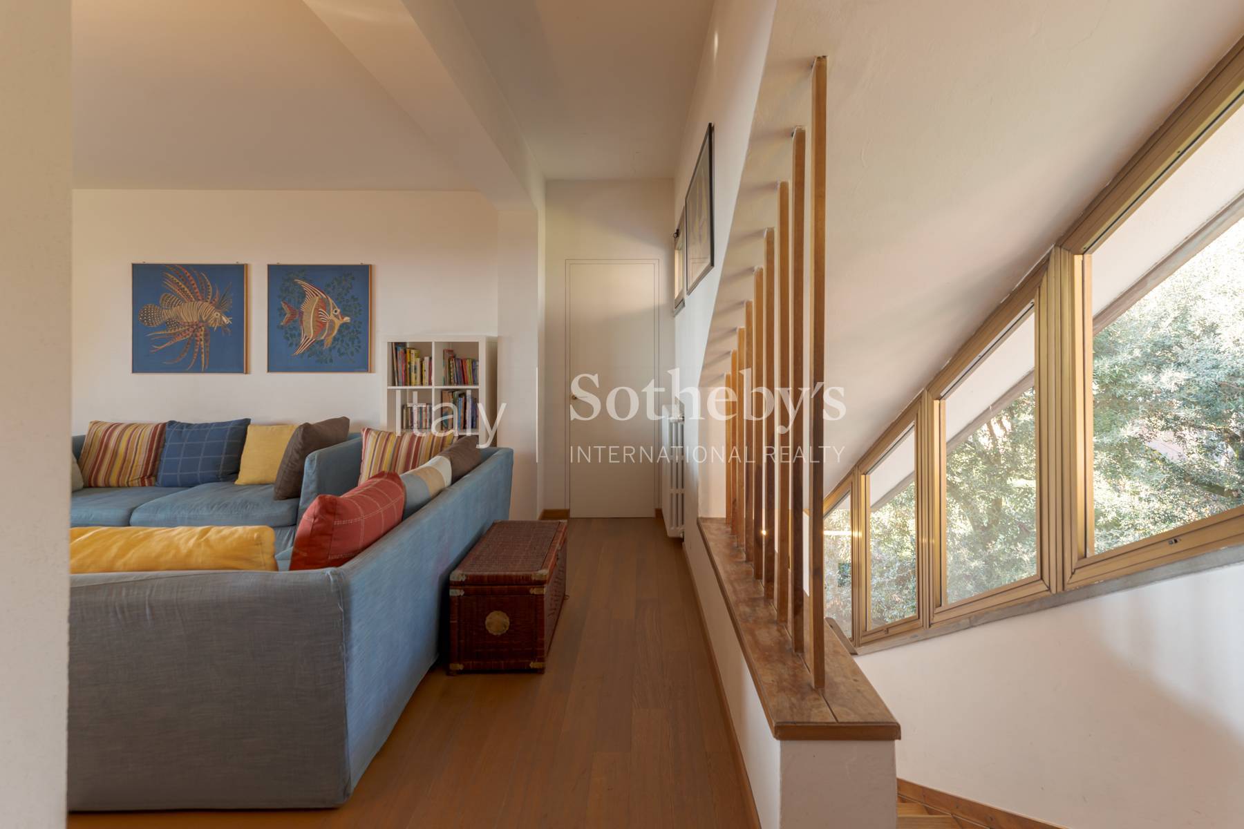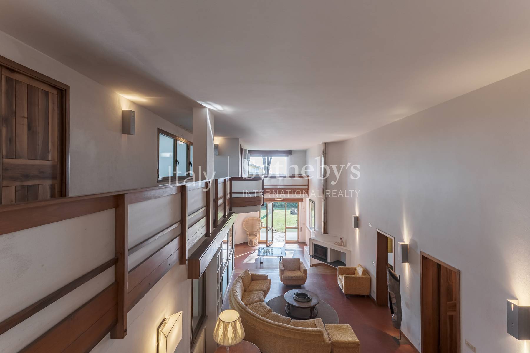 This seafront villa, set in a rare and highly sought-after location on the border between Forte dei Marmi and Marina di Pietrasanta, was designed by Giovanni Michelucci. It stands out for its architectural language of extraordinary refinement, where form and function merge into a harmonious and deeply human balance. The property's defining feature is the striking double-height dining and living area, the true heart of domestic life, along with the distinctive organization of the interior spaces.The architect moves beyond conventional layouts through a fluid and dynamic sequence of rooms, designed around family living and enhancing the quality of everyday life within a setting of exceptional natural beauty.The villa offers a total gross surface area of 511 sqm, divided into 21 rooms, while the garden extends over 1,200 sqm, allowing for the construction of a swimming pool.