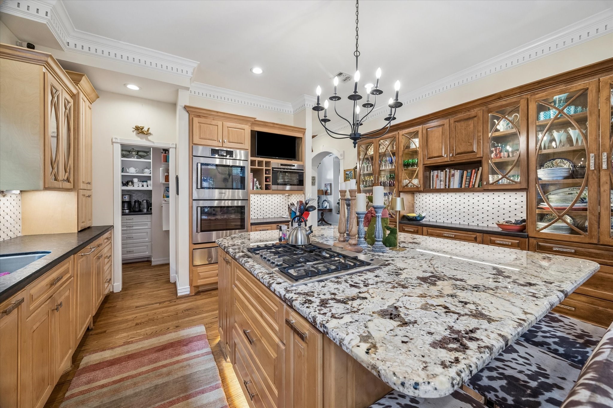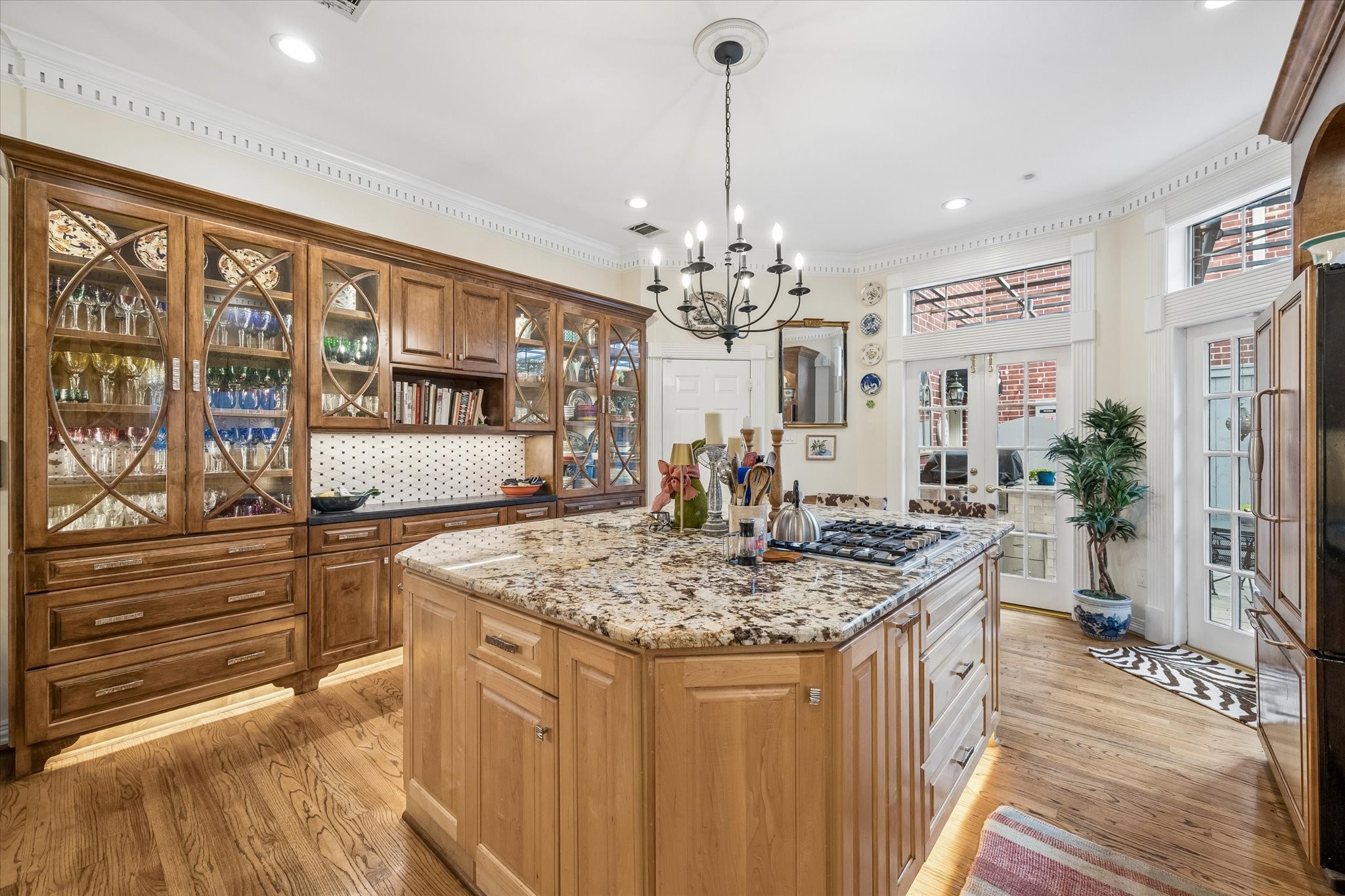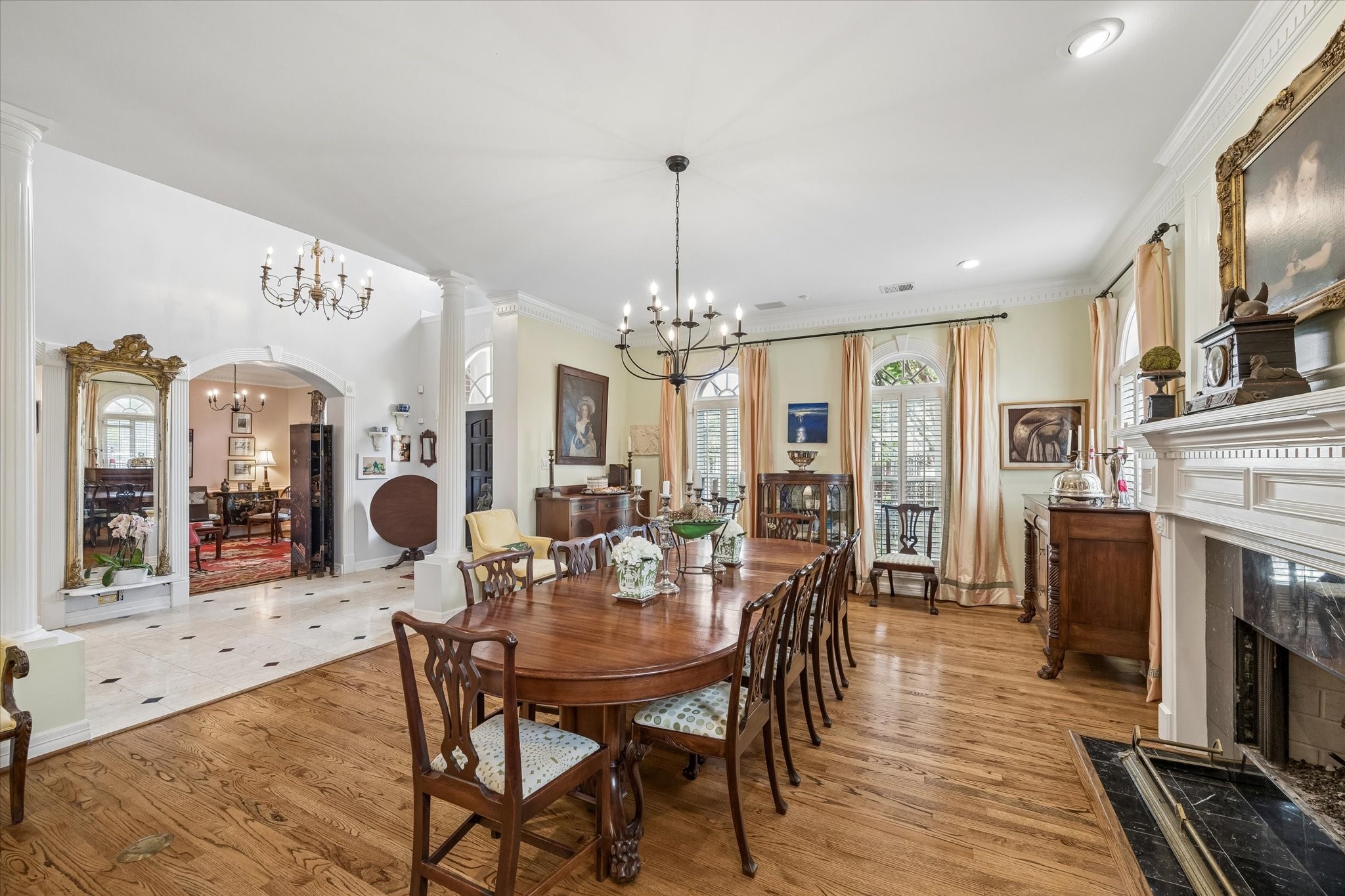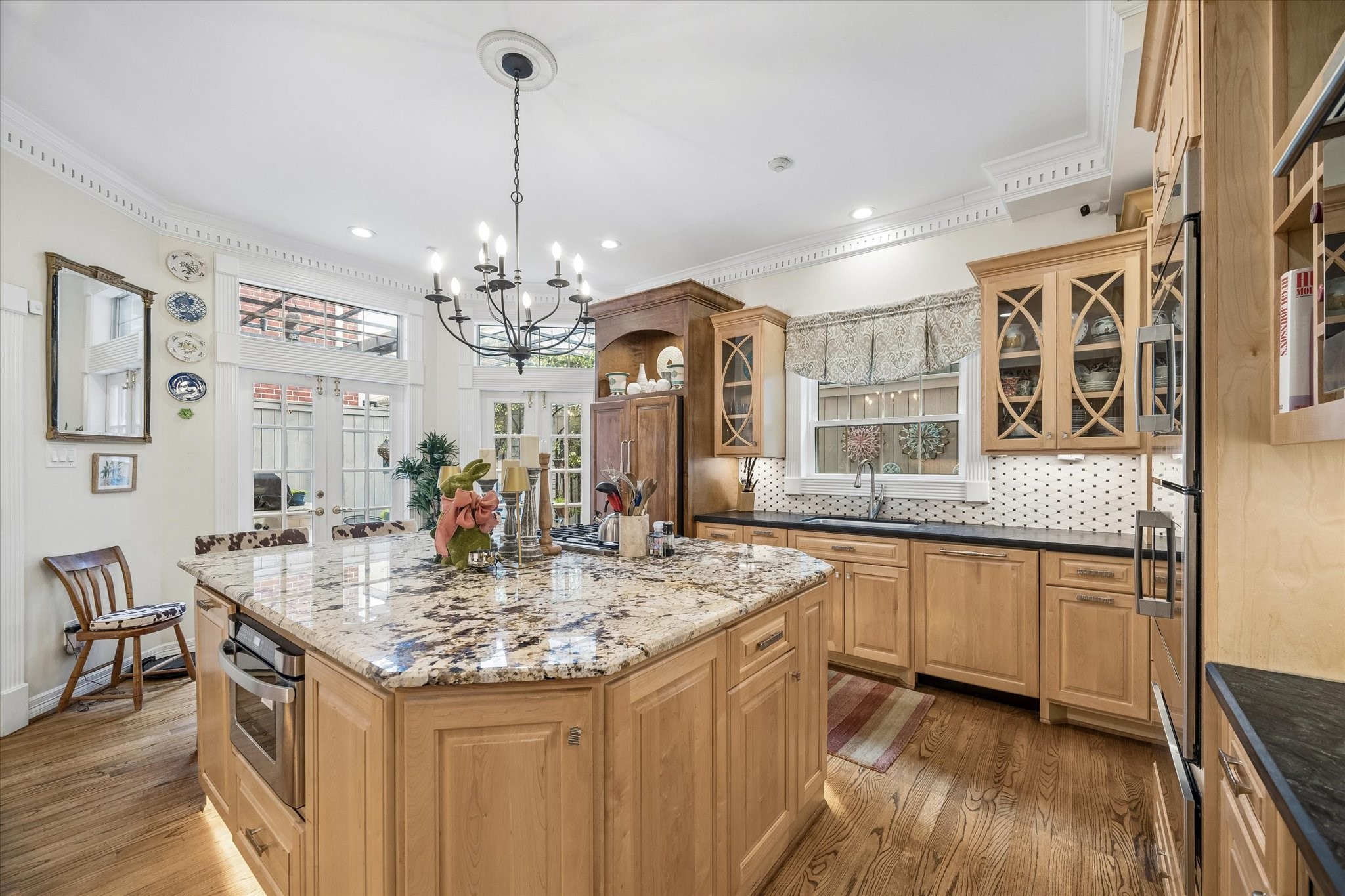 Stunning 4/5 bed 4.5 bath w/ private front oasis featuring sparkling pool/spa, courtyard, and lush landscaping! The dramatic two-story entry sets the tone for the elegant interiors, featuring a formal living room, large formal dining room with fireplace, and a cozy den. The chef's kitchen impresses with a massive island, gas cooktop, high end Stainless Steel appliances, and abundant storage space, complemented by a stylish dry bar—perfect for entertaining. Additional back patio offers outdoor grilling and entertaining space. The oversized primary suite is a peaceful escape featuring hardwood floors, a fireplace, and plenty of natural light. The primary bathroom features dual sinks, soaking tub, separate shower, and walk in closets. 3 additional bedrooms on 2nd floor+laundry room. 3rd floor private suite with office/living space, bathroom, and tons of storage! Attached 2 car garage built in cabinets. Great location and close to shopping, grocery stores, and plenty of restaurants!