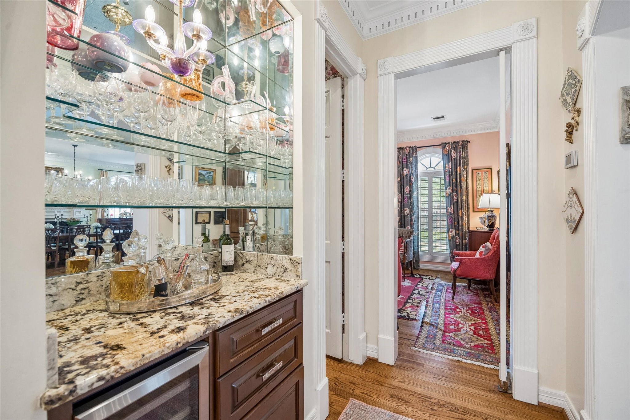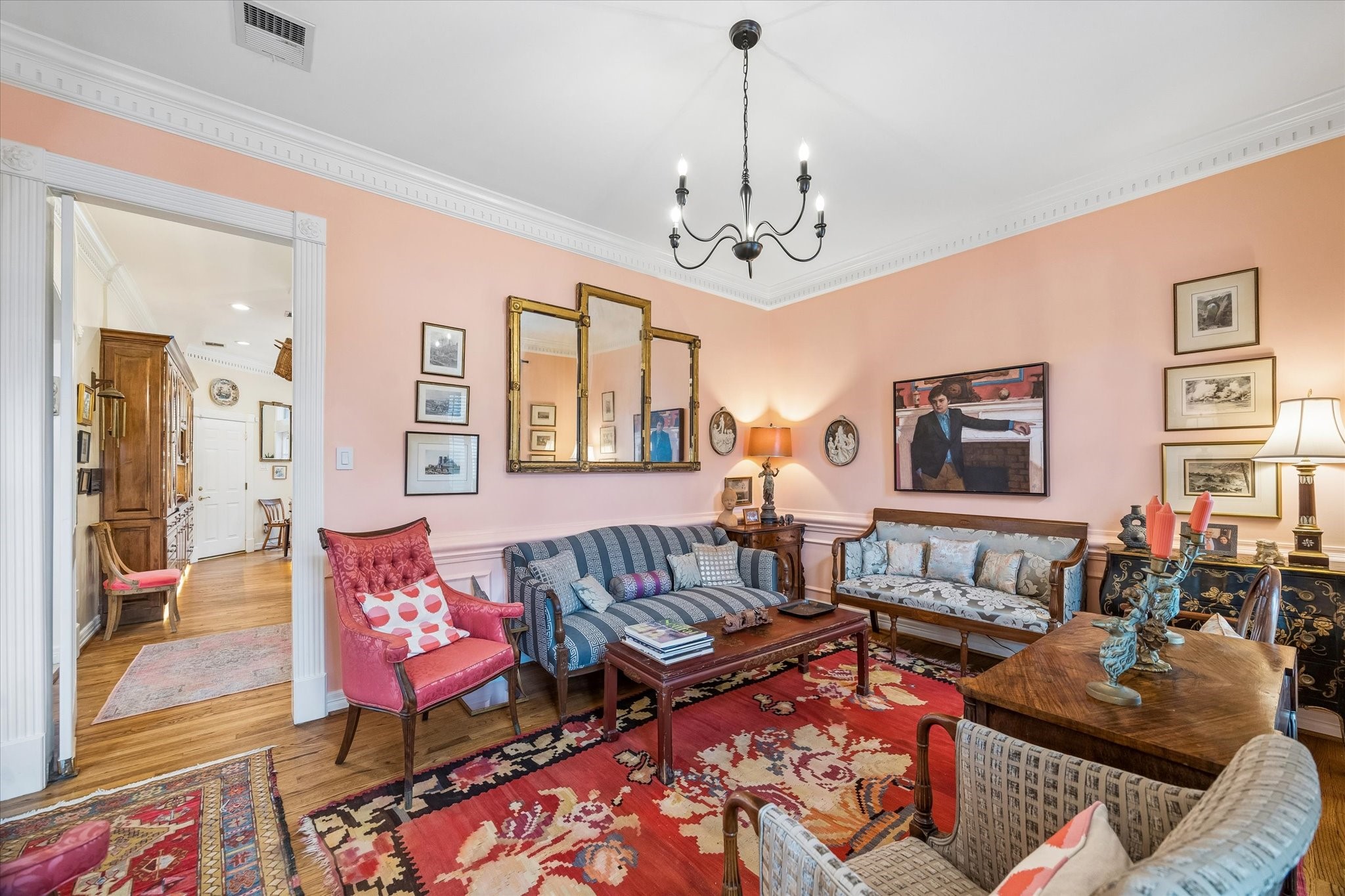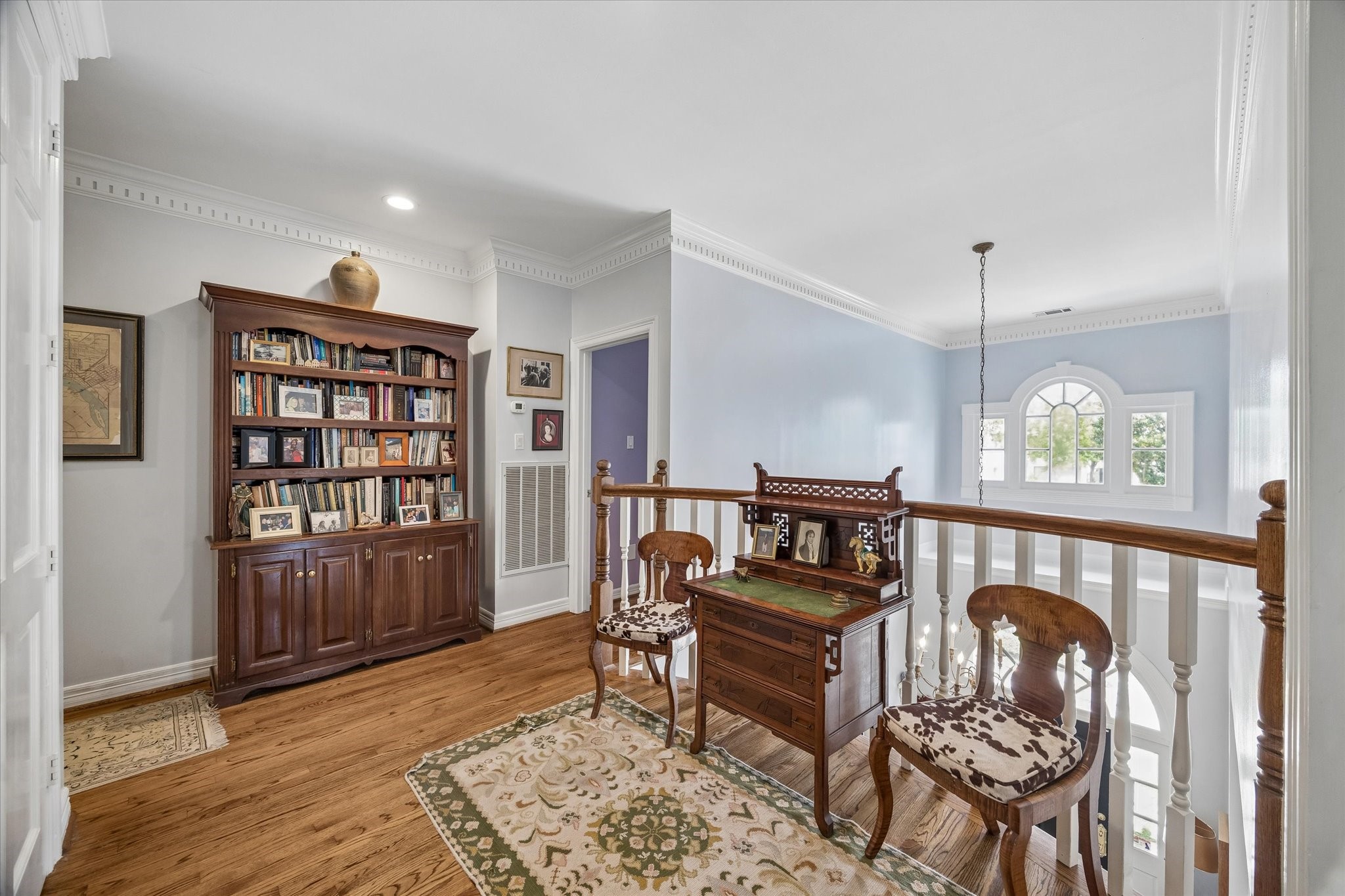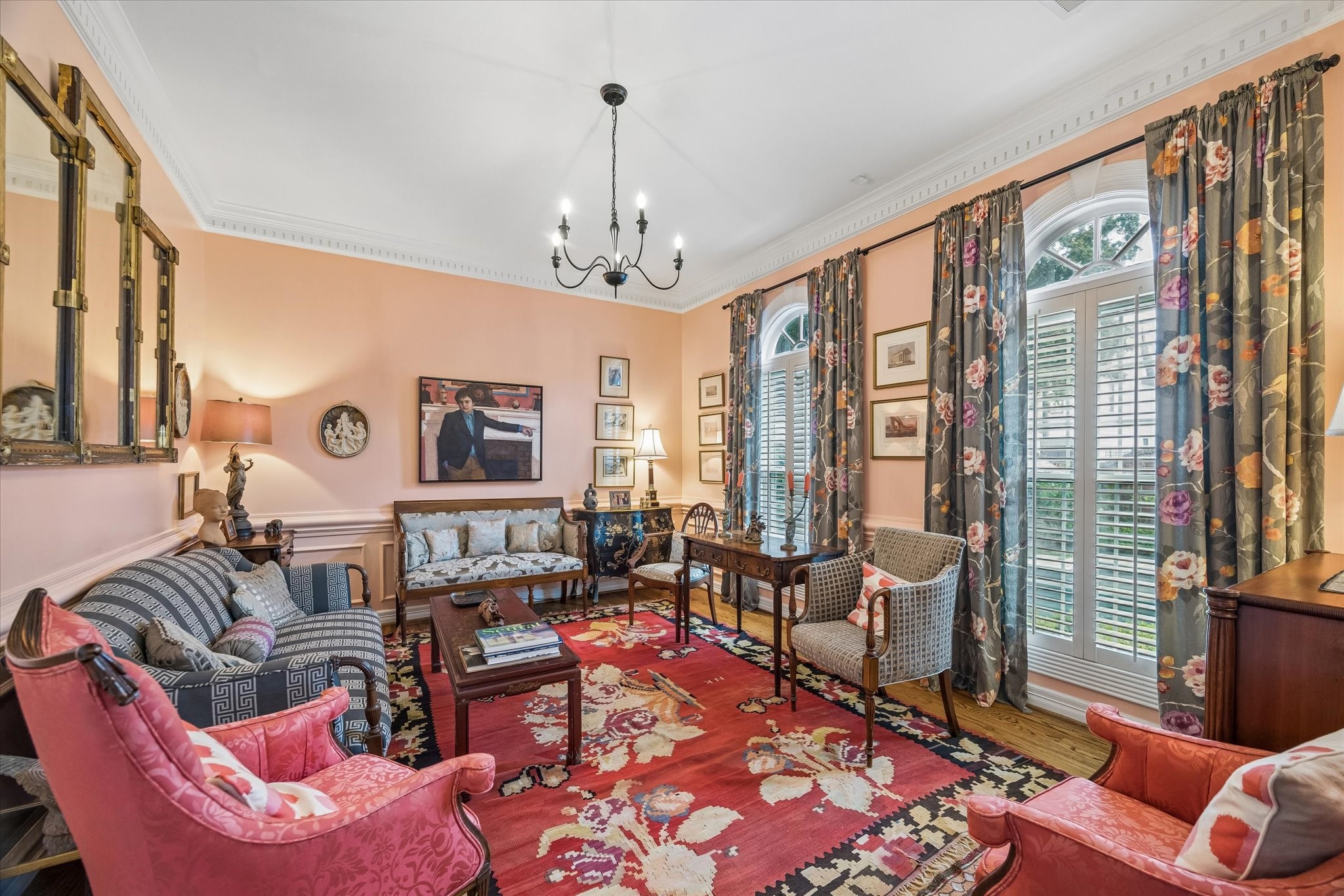 Stunning 4/5 bed 4.5 bath w/ private front oasis featuring sparkling pool/spa, courtyard, and lush landscaping! The dramatic two-story entry sets the tone for the elegant interiors, featuring a formal living room, large formal dining room with fireplace, and a cozy den. The chef's kitchen impresses with a massive island, gas cooktop, high end Stainless Steel appliances, and abundant storage space, complemented by a stylish dry bar—perfect for entertaining. Additional back patio offers outdoor grilling and entertaining space. The oversized primary suite is a peaceful escape featuring hardwood floors, a fireplace, and plenty of natural light. The primary bathroom features dual sinks, soaking tub, separate shower, and walk in closets. 3 additional bedrooms on 2nd floor+laundry room. 3rd floor private suite with office/living space, bathroom, and tons of storage! Attached 2 car garage built in cabinets. Great location and close to shopping, grocery stores, and plenty of restaurants!