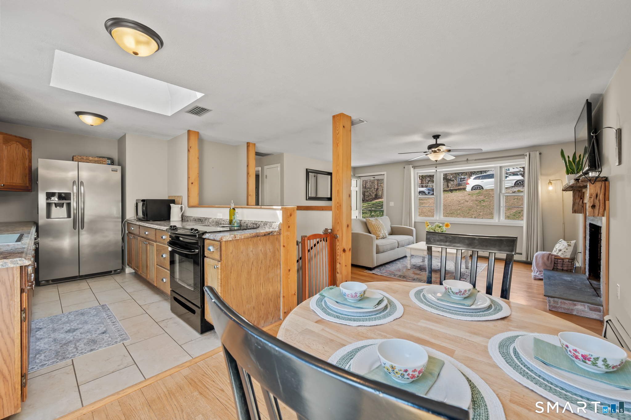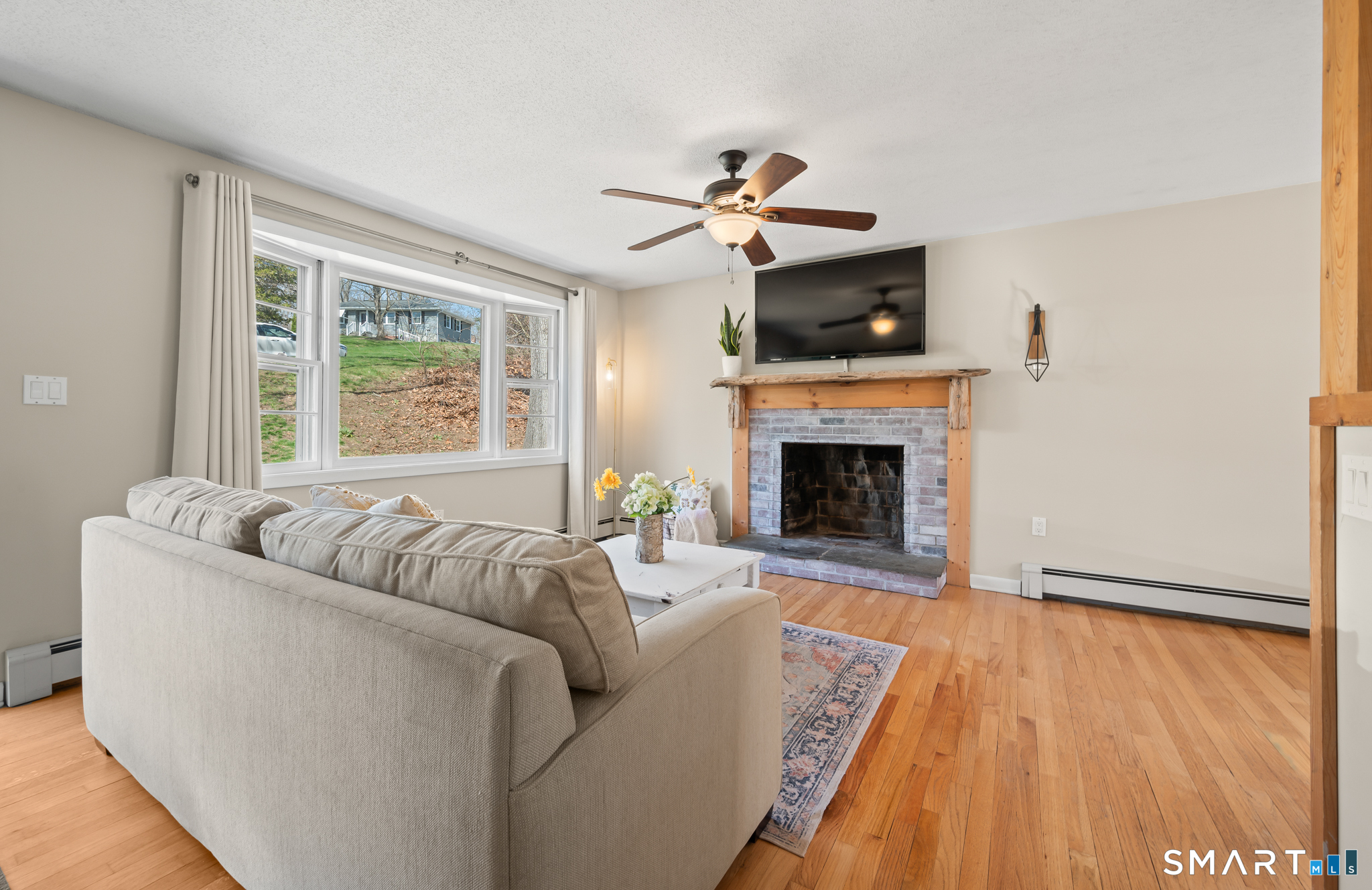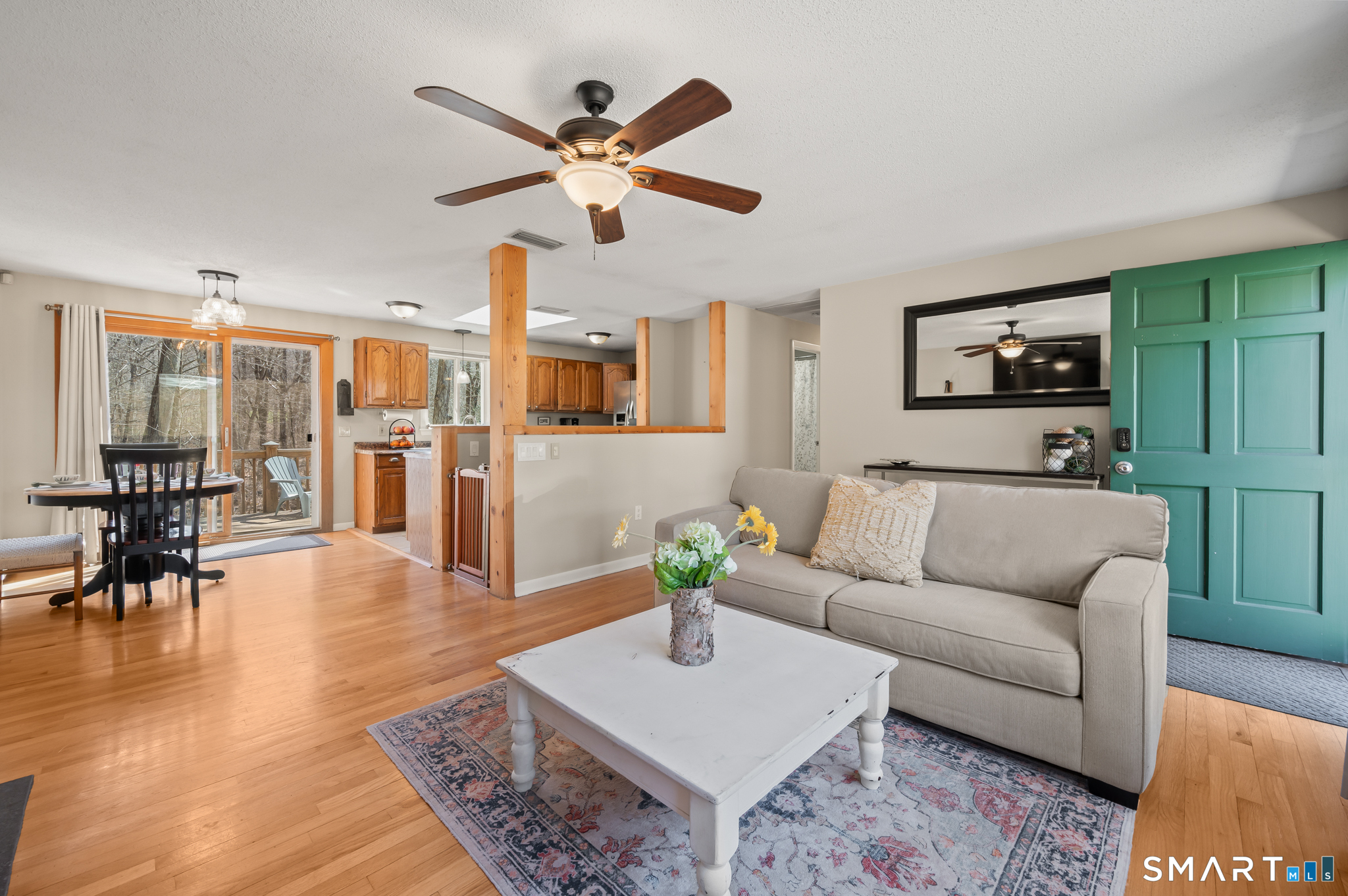 Some homes are just well kept; this one was truly cared for. Welcome to this lovingly maintained 3-bedroom ranch in the Moodus section of East Haddam, offering one-level living with a layout that just makes every day life easy. Hardwood floors run throughout, and the home feels warm, connected, and inviting from the moment you walk in. The living room centers around a classic wood-burning fireplace, adding charm and comfort. The kitchen features timeless wood cabinetry and flows naturally with the rest of the home, making both everyday living and entertaining feel effortless. Downstairs, the fully finished lower level adds a ton of heated, usable space, a dedicated laundry area, and plenty of storage. Whether you need a second living area, home office, gym, or a mix of everything, there's room to make it work. Outside, a large deck overlooks a private yard, with a patio and fire pit that make it easy to enjoy time outdoors. The oversized, level driveway offers plenty of space for multiple vehicles, recreational equipment, or future expansion. Major systems have been thoughtfully maintained, including a newer roof and septic (both approximately 10 years old), along with oil heat and central air for year-round comfort.
